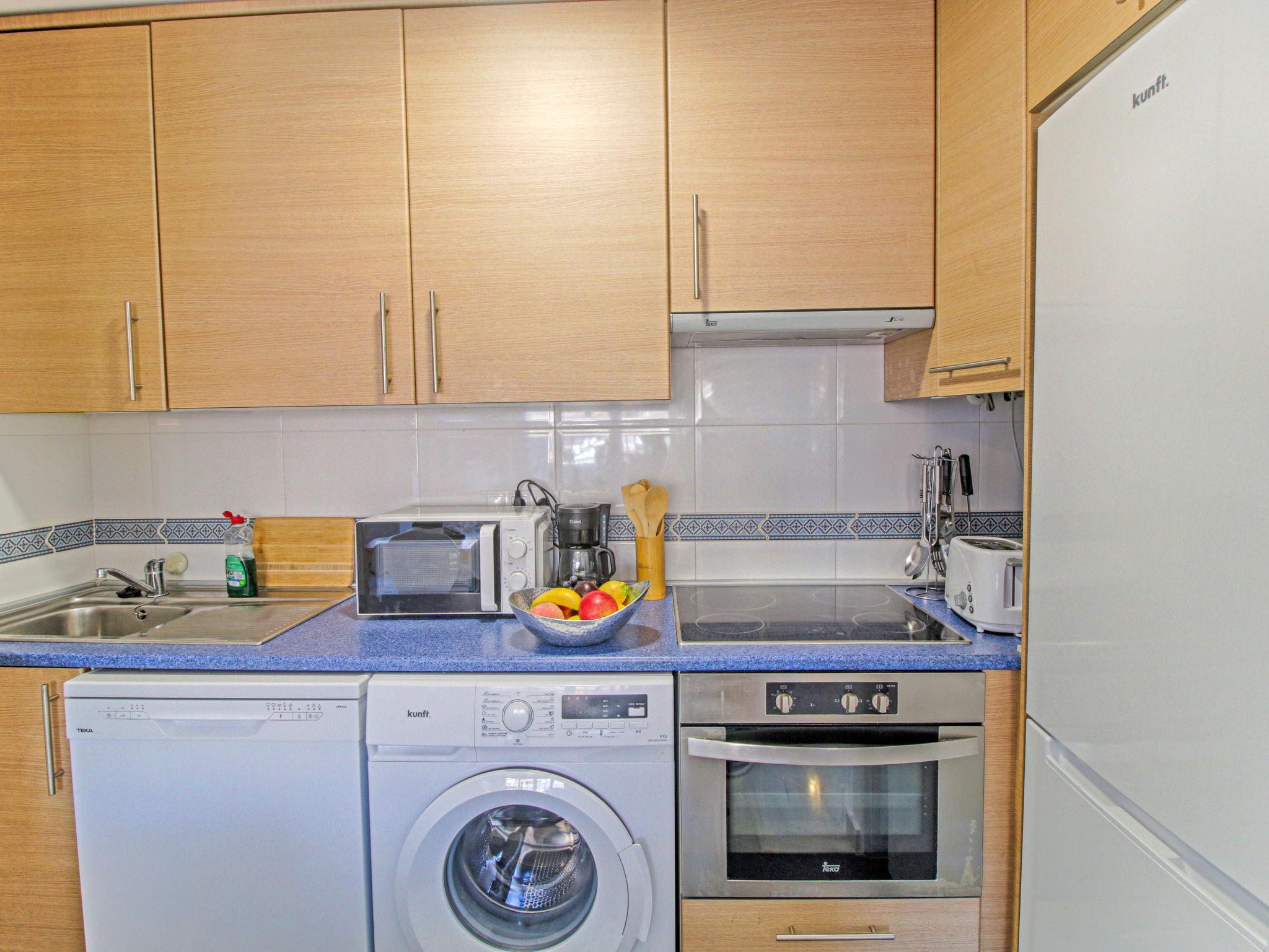 "Calpe Bay", 3-room apartment 80 m2 on 2nd floor. Spacious, comfortable and cosy furnishings: living/dining room with electric heating and air conditioning. Exit to the terrace. 1 room with 1 french bed (150 cm, length 190 cm), air conditioning and forced-air heating. 1 room with 1 bed (90 cm, length 190 cm), 1 x 2 bunk beds (90 cm, length 190 cm), air conditioning and forced-air heating. Kitchen (oven, dishwasher, 4 ceramic glass hob hotplates, toaster, kettle, freezer, electric coffee machine). Bath/WC. Small terrace. Terrace furniture. Distant view of the resort and the ocean. Facilities: washing machine, iron. Parking space n 154 (1 car). Suitable for families. VT-491359-A