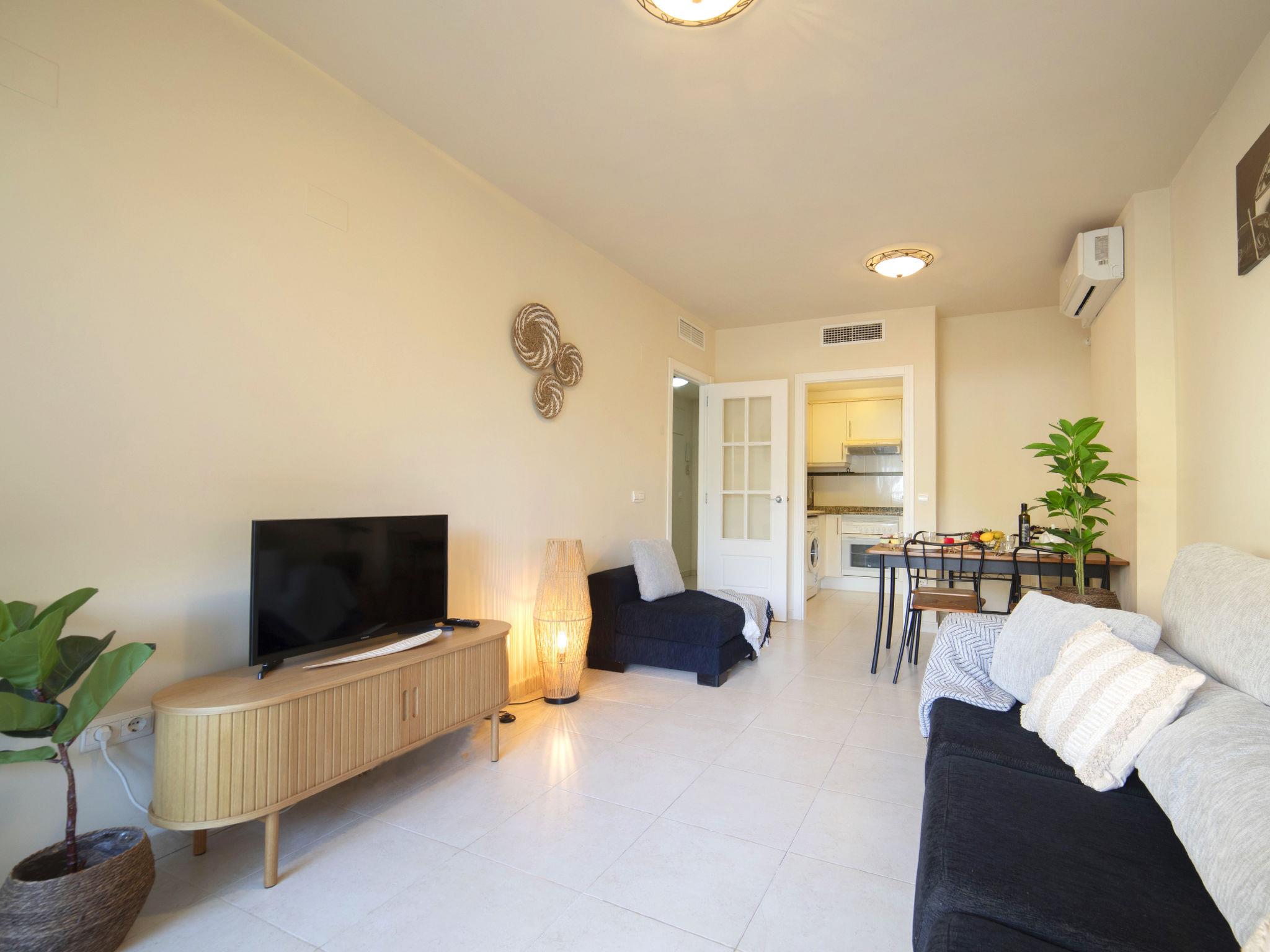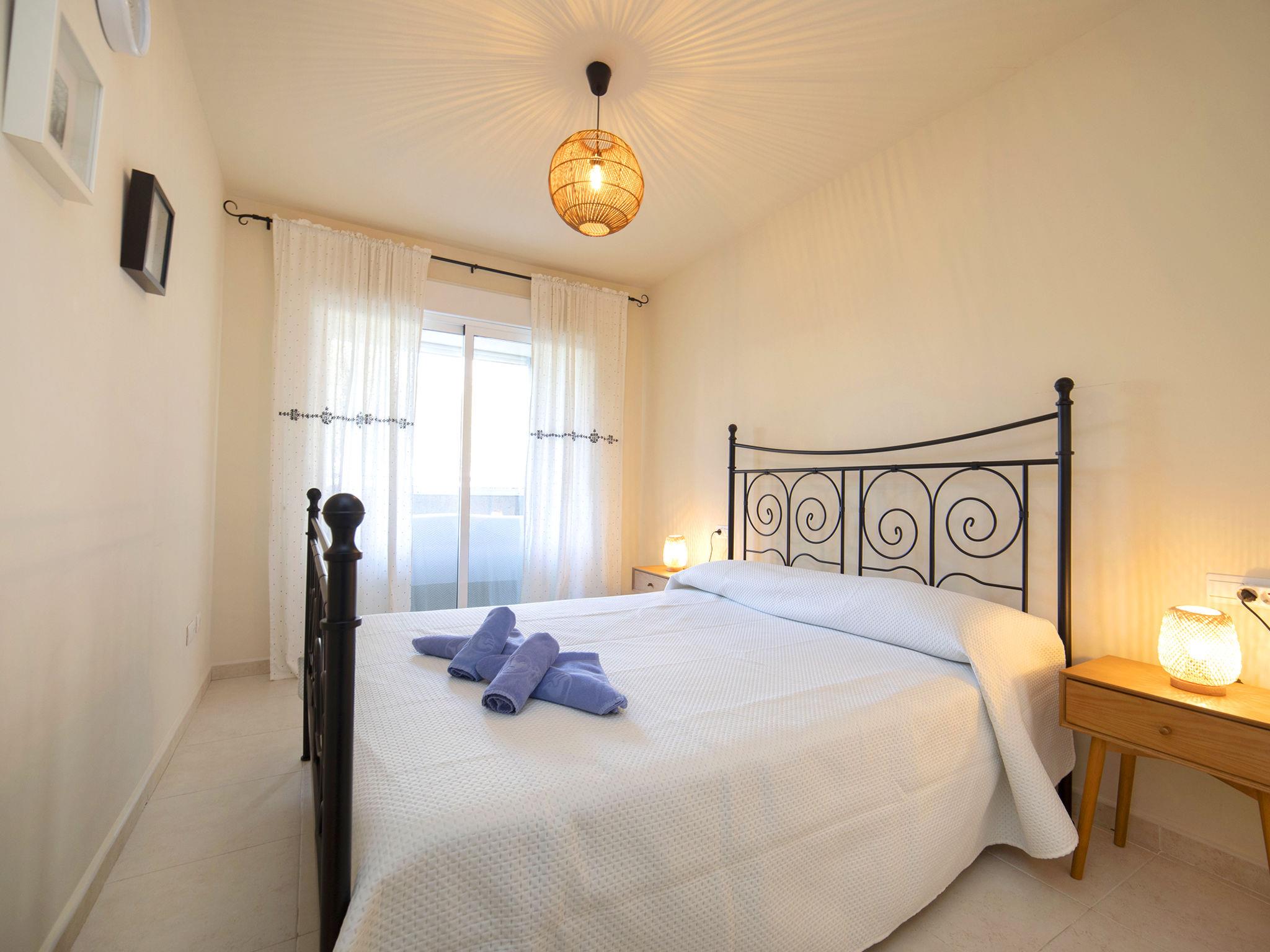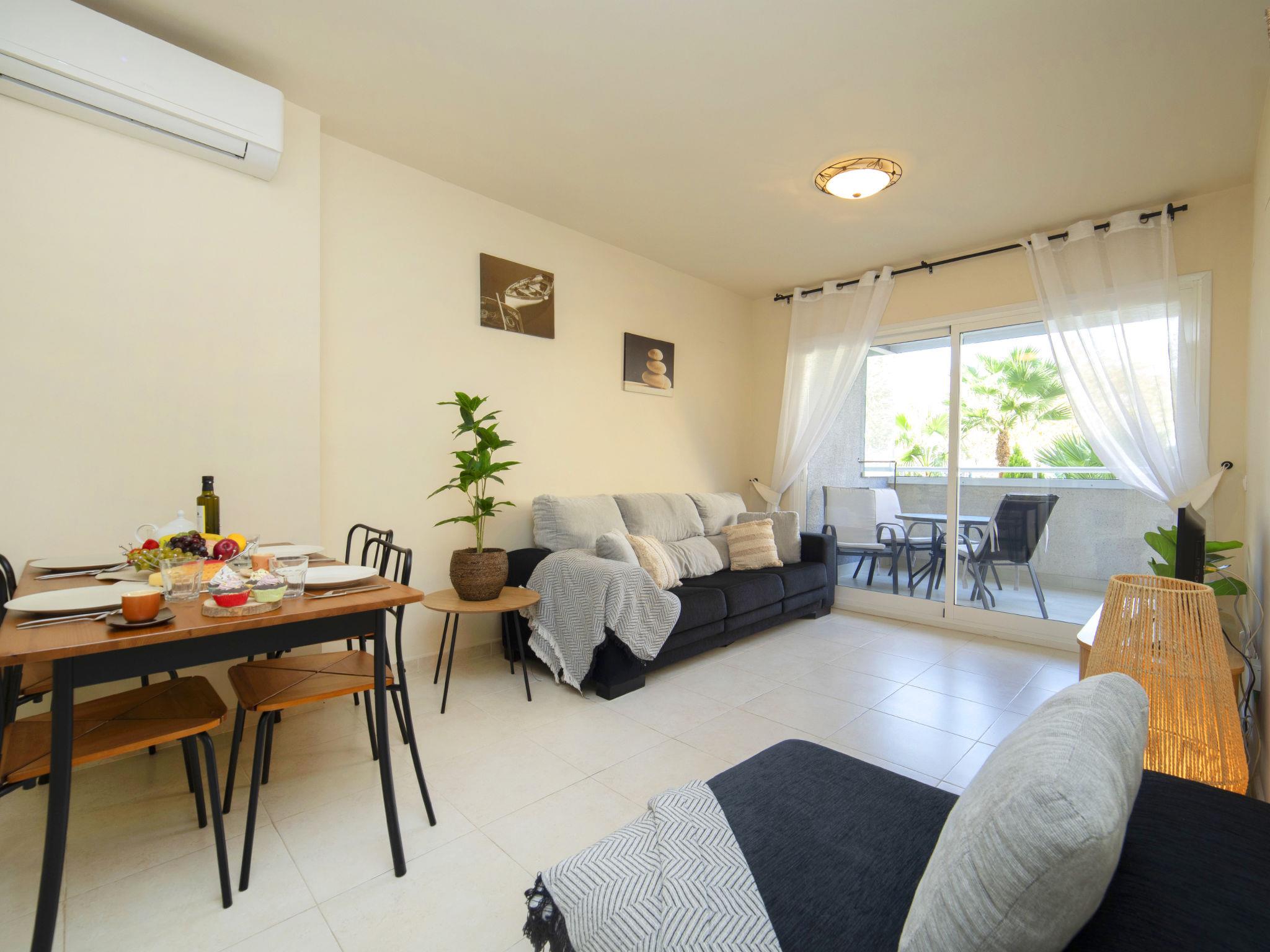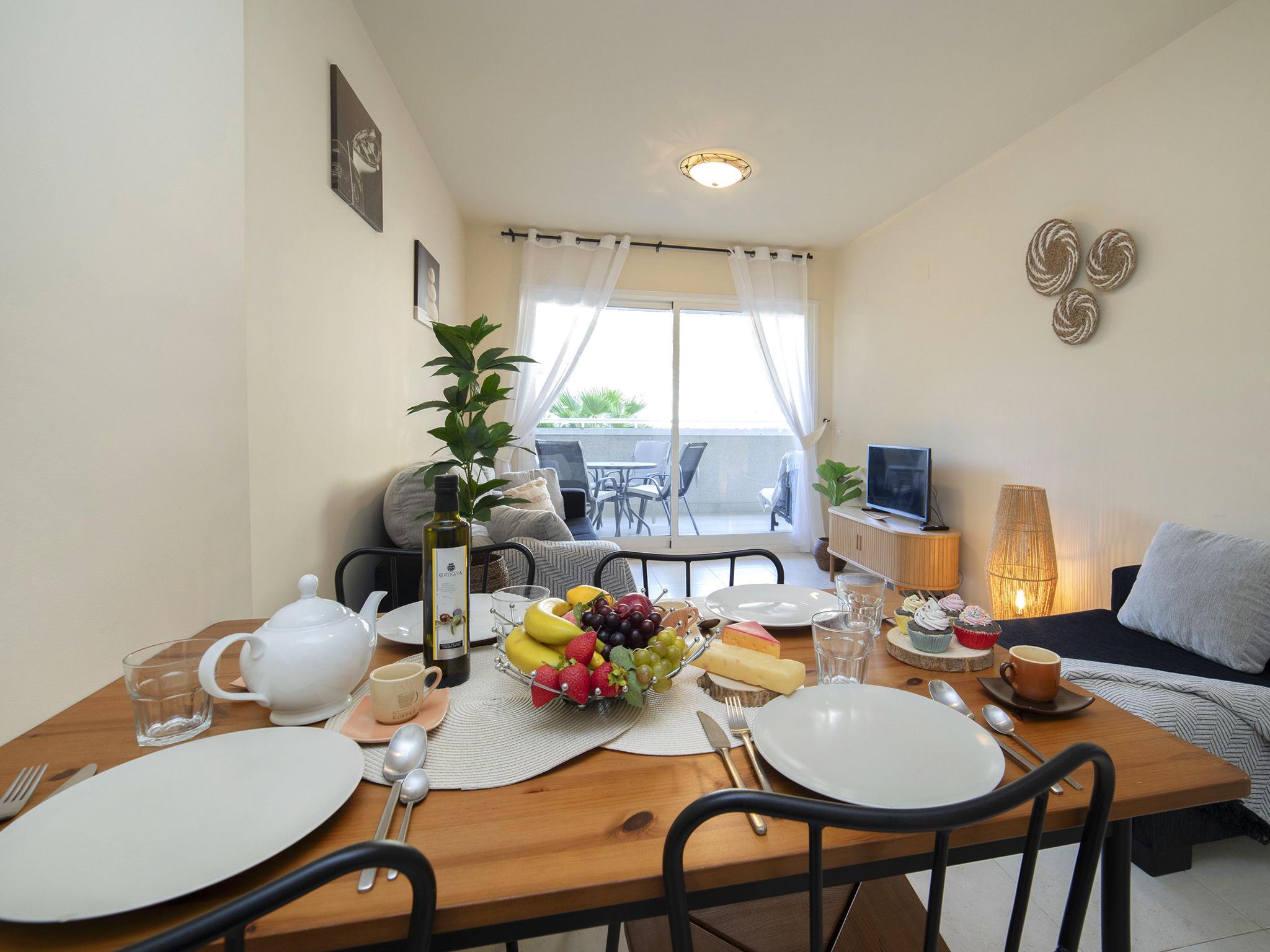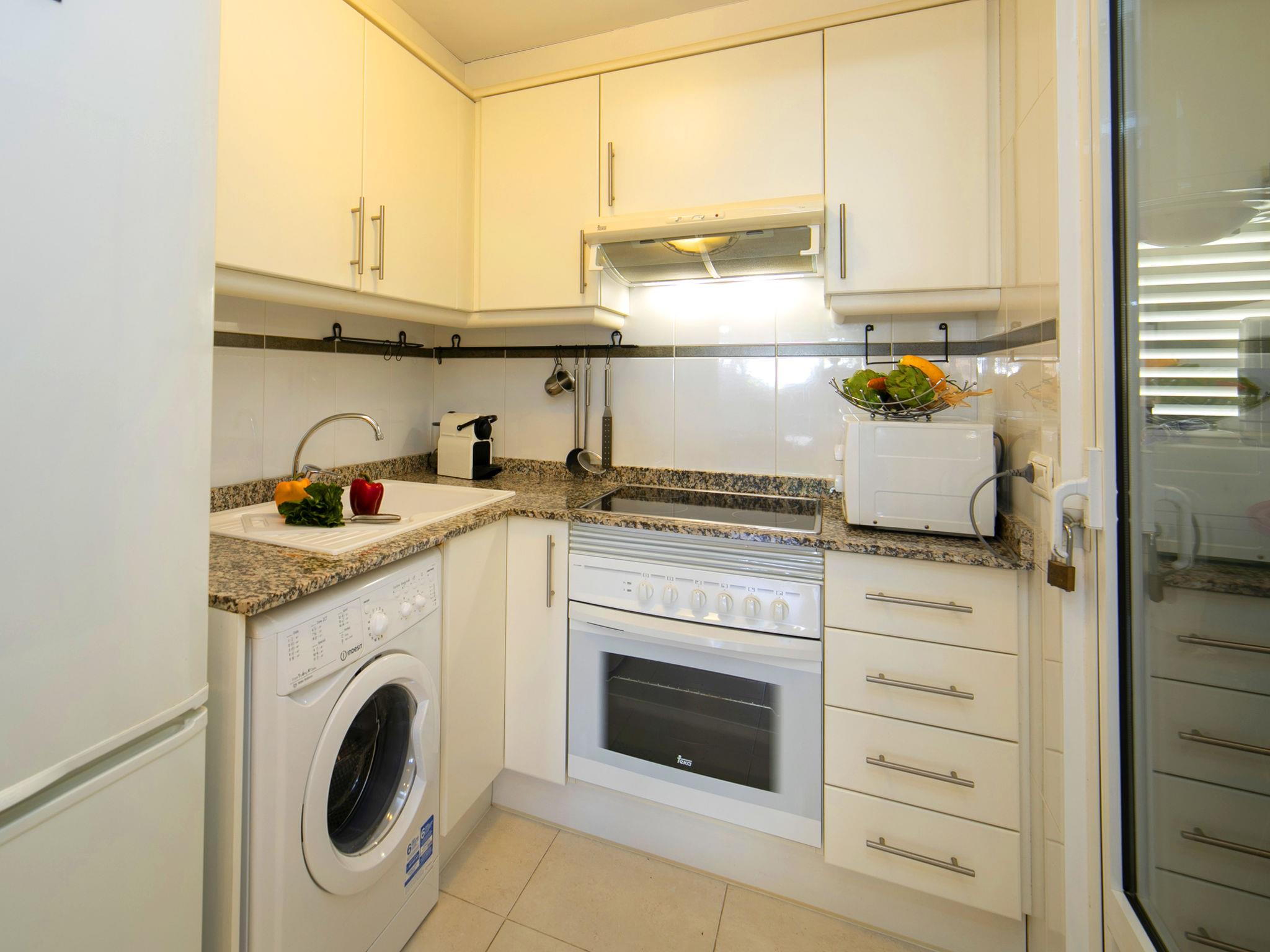 "Apolo XVIII", 2-room apartment 83 m2 on 1st floor. Object suitable for 2 adults + 1 child. Spacious, comfortable and beautiful furnishings: living/dining room with 1 sofabed, digital TV, air conditioning and forced-air heating. Exit to the terrace. 1 room with 1 french bed (1 x 160 cm, length 200 cm), air conditioning and forced-air heating. Exit to the terrace. Kitchen (oven, 2 ceramic glass hob hotplates, 2 gas rings, toaster, kettle, microwave, electric coffee machine). Bath/bidet/WC. Forced-air heating. Large terrace. Balcony furniture. View of the swimming pool and the garden. Facilities: washing machine, iron, hair dryer. Internet (WiFi, free). Please note: non-smoking house. VT-499992-A // Reg. Nr.: ESFCTU00000302900059204600000000000000000VT-499992-A1