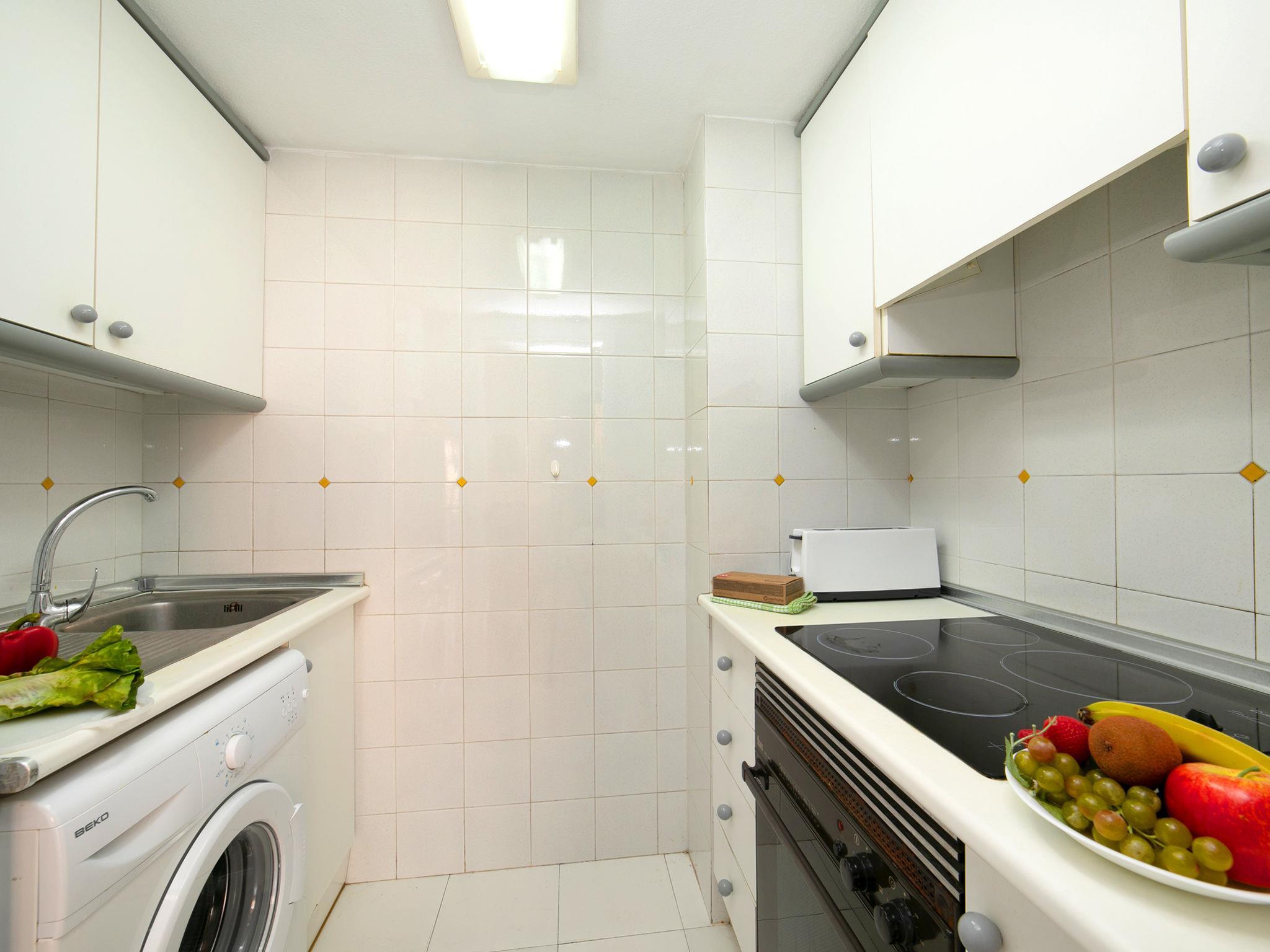 "Apolo VII", 3-room apartment 60 m2. Practical and comfortable furnishings: living/dining room with digital TV, air conditioning and forced-air heating. Exit to the terrace. 1 room with 1 french bed and bath/WC. 1 room with 2 beds. Small kitchen (oven, 4 ceramic glass hob hotplates, toaster, kettle, microwave, electric coffee machine). Shower/WC. Terrace. Terrace furniture. View of the swimming pool and the town. Facilities: washing machine, iron, children's high chair, baby cot for up to 2 year olds. Internet (WiFi, free). Parking space n 72 (roofed, 1 car). 1 small pet/ dog allowed. AT-438393-A // Reg. Nr.: ESFCTU00000302900044681300000000000000000AT-438393-A8