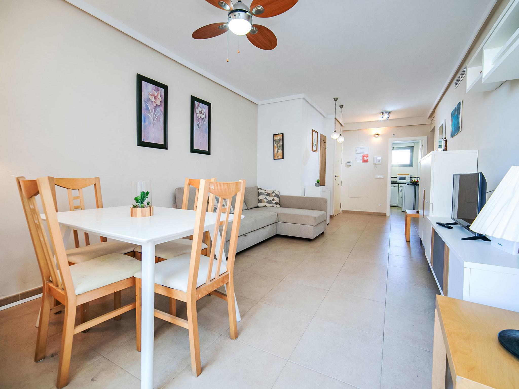 "Plaza Mayor", 3-room apartment 91 m2 on 3rd floor. Spacious and bright, comfortable and beautiful furnishings: living/dining room with digital TV, air conditioning and forced-air heating. Exit to the terrace. 2 rooms, each room with 1 french bed (150 cm, length 190 cm), air conditioning and forced-air heating. Kitchen (oven, dishwasher, 3 ceramic glass hob hotplates, toaster, kettle, microwave, electric coffee machine). 2 showers/WC. Terrace. View of the sea and the swimming pool. Facilities: washing machine, iron, hair dryer. Internet (WiFi, free). Parking space n 26 (roofed). VT-491664-A // Reg. Nr.: ESFCTU00000302900070273500000000000000000VT-491664-A3