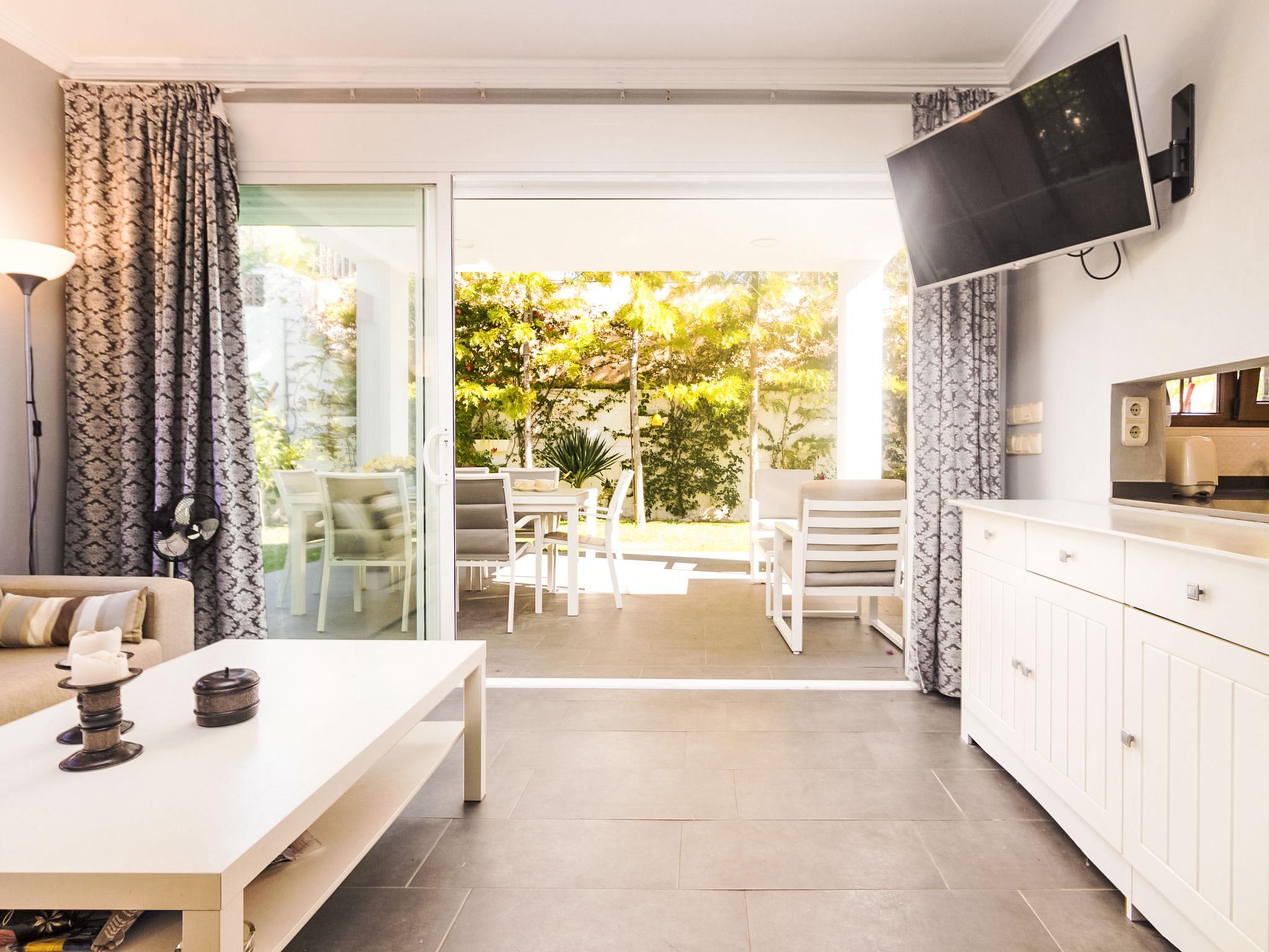 "El Dorado Playa - Villa La Roca", 6-room house 170 m2. Object suitable for 8 adults. Spacious, comfortable and tasteful furnishings: living/dining room with digital TV. Exit to the patio. 2 rooms, each room with 2 beds. 1 room with 1 french bed. Lounge. Exit to the patio. Kitchen (oven, dishwasher, 3 ceramic glass hob hotplates, toaster, kettle, microwave, electric coffee machine). Bath/WC, shower/WC. No heating option. Upper floor: 1 room with 2 beds. Patio. Terrace furniture, barbecue, deck chairs (4). Beautiful view of the garden. Facilities: washing machine, iron, children's high chair, baby cot, hair dryer. Internet (WiFi). Please note: suitable for families. Non-smoking house. HUTT-003333 // Reg. Nr.: ESFCTU00004303100000472400000000000000000HUTT-0033338