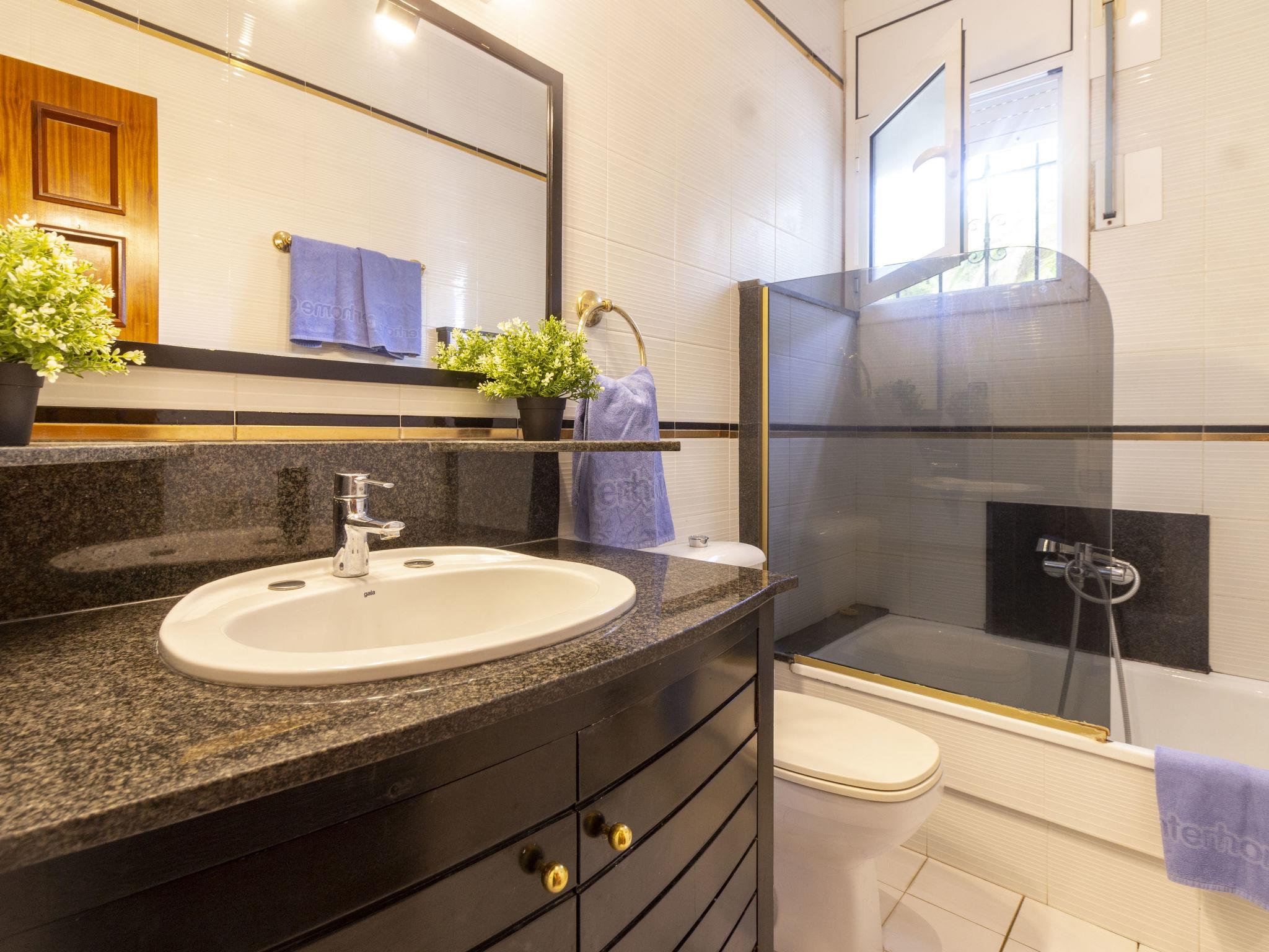 "Villa Esplai", 7-room house 149 m2. Object suitable for 8 adults + 4 children. Spacious, comfortable and cosy furnishings: living/dining room with digital TV and flat screen. 1 room with 1 french bed (180 cm, length 200 cm). 1 room with 1 french bed (140 cm, length 190 cm), bath/WC. 1 room with 1 french bed (135 cm, length 190 cm). 1 room with 2 pull-out beds (4 pers. 2 x 90 cm, length 180 cm). 1 room with 1 french bed (135 cm, length 190 cm). Kitchen (oven, dishwasher, 4 ceramic glass hob hotplates, microwave, electric coffee machine, Capsules for coffee machine (Nespresso)). 2 showers/WC. No heating option. Large terrace. Terrace furniture, barbecue, deck chairs (6). View of the garden. Facilities: washing machine, dryer, iron, children's high chair, baby cot, hair dryer. Internet (WiFi). Please note: suitable for families. Non-smoking house. HUTT-048154 // Reg. Nr.: ESFCTU00004303100004386000000000000000000HUTT-0481546