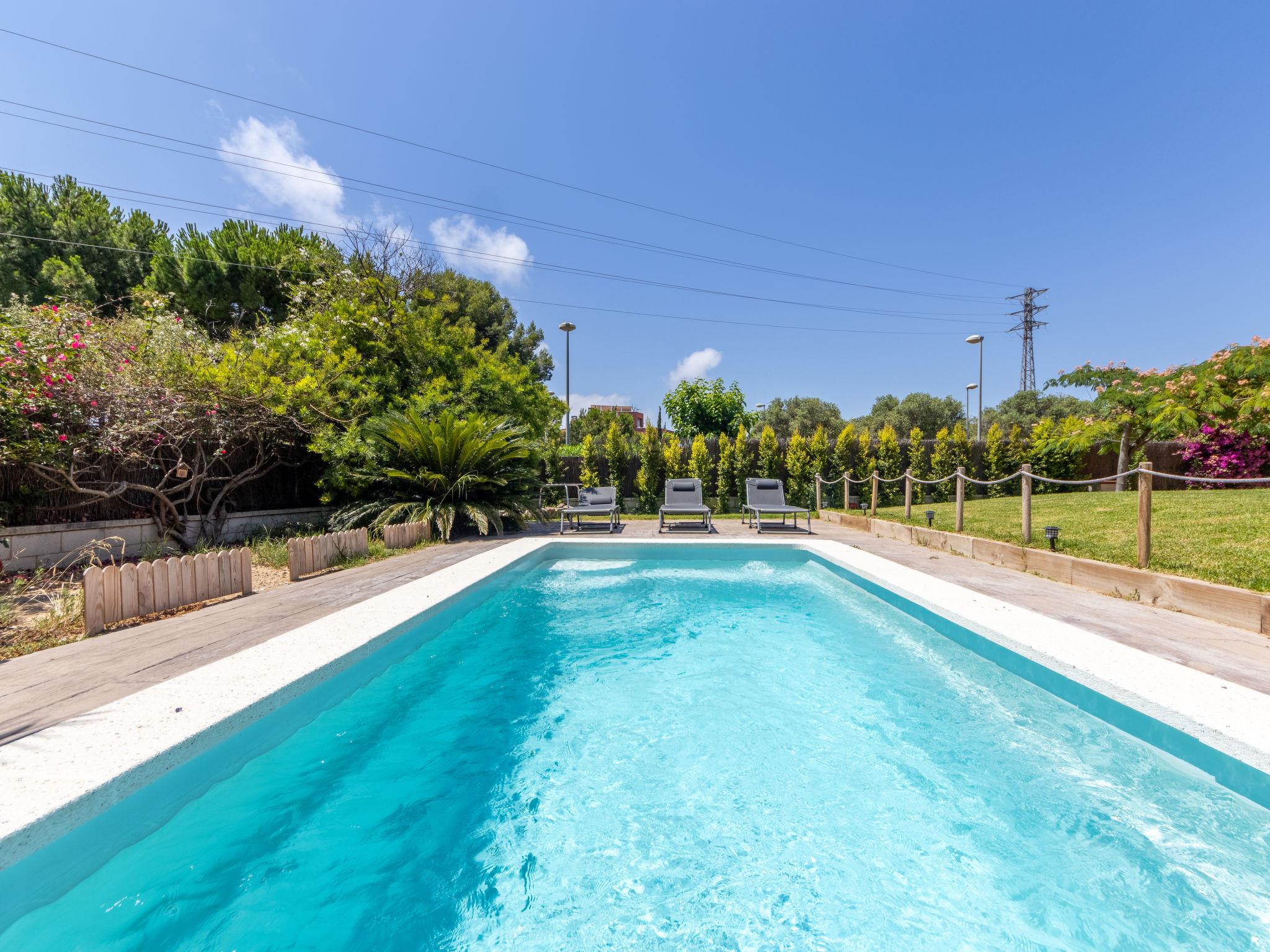 Vilafortuny 5 km from Cambrils Centro: Beautiful, rustic single-family house "Alexandra", 2 storeys, built in 2004. In a quiet position residential area (villas), 1 km from the sea, 1 km from the beach. Private: beautiful garden to relax, swimming pool angular (6 x 3 m, seasonal availability: 01.Jan. - 31.Dec.). Terrace, garden furniture, barbecue, parking at the house, public parking on the road. Shop, grocery, supermarket 700 m, shopping centre 2 km, restaurant, bakery, café 700 m, bus stop "montemar" 200 m. Sports harbour 5 km, marina 5 km, golf course (18 hole) 8 km, surf school 5 km, sailing school 5 km, riding stable 8 km. Nearby attractions: Port Aventura 6 km, Aquopolis 6 km, Aquum Spa 6 km, Electric Carting Salou 6 km, Jumpland Ecologic Adventure 3 km. Hiking paths: La Mussara 45 km. Please note: car recommended. Suitable for families. The owner does not accept any youth groups. Loading and unloading of baggage is possible at the holiday house. Neighbourhood highly sensitive to noise. Quietness and good behaviour expected.
