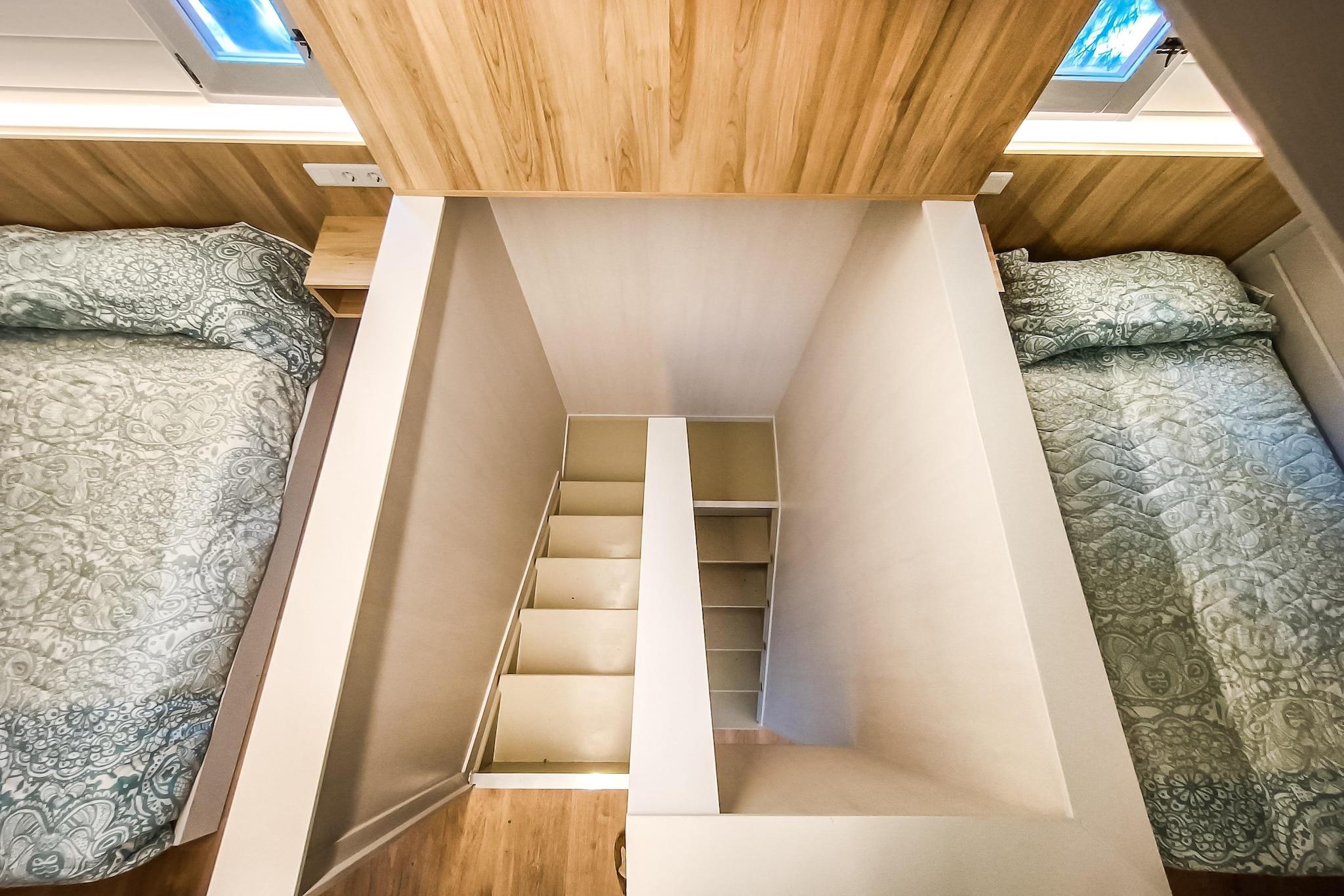 Charmerende Bungalow Under Pines Gemt væk på en fredelig, familievenlig campingplads tilbyder denne hyggelige bungalow et afslappende tilflugtssted under den plettede skygge af tårnhøje træer. Perfekt til familier eller små grupper, det har et soveværelse med dobbeltseng i stueetagen og en charmerende hems med ekstra sovepladser. Den åbne stue og fuldt udstyret køkken (med keramisk komfur, kaffemaskine, mikroovn og køleskab) gør det nemt at nyde hjemmelavede måltider. Træd udenfor på din private terrasse med havemøbler og slap af under middelhavssolen. Beachside Bliss & kæledyrsvenlige eventyr Beliggende kun en kort gåtur fra de gyldne strande i Cambrils, vil du og din lodne ledsager finde masser af plads til at strejfe omkring. Kæledyr er velkomne, og det nærliggende Platja de l'Esquirol er kendt for sin kæledyrsvenlige atmosfære. Udforsk kyststier, nyd picnics ved havet, eller besøg nærliggende parker med agility-zoner for kæledyr. Den fælles swimmingpool på stedet (åben fra den 17. april) er perfekt til at køle af efter en dag med solbeskinnet sjov. Udforsk Cambrils og lokale smagsoplevelser Cambrils travle centrum ligger kun en kilometer væk, hvor du finder tapasbarer ved vandet, fiskerestauranter og charmerende butikker. Gå en tur i marinaen, prøv lokale vine, eller tag en kæledyrsvenlig bådtur langs Costa Dorada. Uanset om du er her for at slappe af, udforske eller blot dele en ferie med din firbenede ven, er denne bungalow den perfekte hjemmebase.