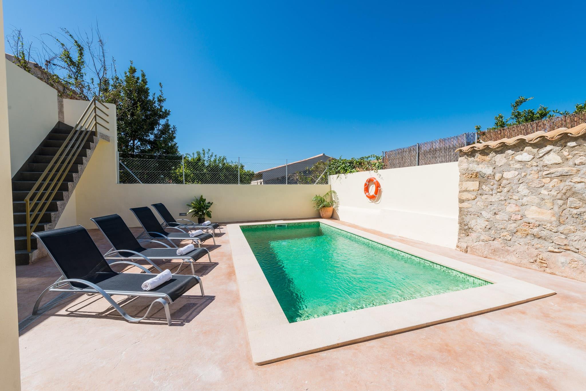 Start din dag med en svømmetur i den private 6 x 3 m klorpool med en dybde fra 1,40 m til 1,70 m. Swimmingpoolen er omgivet af en terrasse med otte liggestole og en grill. Denne smukke ejendom har en vinterhave med et gammelt springvand, hvor du kan spise middag med venner. Ovenpå er der en lille, ikke-møbleret terrasse med udsigt over landsbyen. Grunden er indhegnet. I stuen kan du se TV (med satellit og Smart-TV). Spisestuen har adgang til fuldt udstyret køkken med gaskomfur. Derudover har denne ejendom et vaskeri med en vaskemaskine, et strygejern og et strygebræt. Desuden er der et pengeskab. Der er fire komfortable dobbeltværelser med ventilatorer; tre af dem i stueetagen og et på første sal. Vi kan levere en barneseng og en høj stol, hvis du kommer med en baby. Der er et brusebadeværelse inde i huset og et udendørs brusebadeværelse ved siden af poolen. Denne villa er centralt beliggende i Campanet, så du nemt kan gå til hovedtorvet med en købmand, restauranter, barer, et apotek og en bank. Det ligger nær Tramuntana-bjergene i det vestlige Mallorca og tilbyder adgang til naturskønne vandre- og cykelruter. Det nærliggende Lluc-kloster er et udgangspunkt for mange stier, herunder den historiske Camí Vell de Lluc a Pollensa. Campanet er også kendt for sine huler og kapel, alle inden for gåafstand. I bil kan du udforske charmerende landsbyer som Valldemossa, Fornalutx og Sóller. Turistlicens: ETV/7109 Som reaktion på Coronavirus (COVID-19) er yderligere sikkerheds- og sanitære foranstaltninger i kraft på denne ejendom.