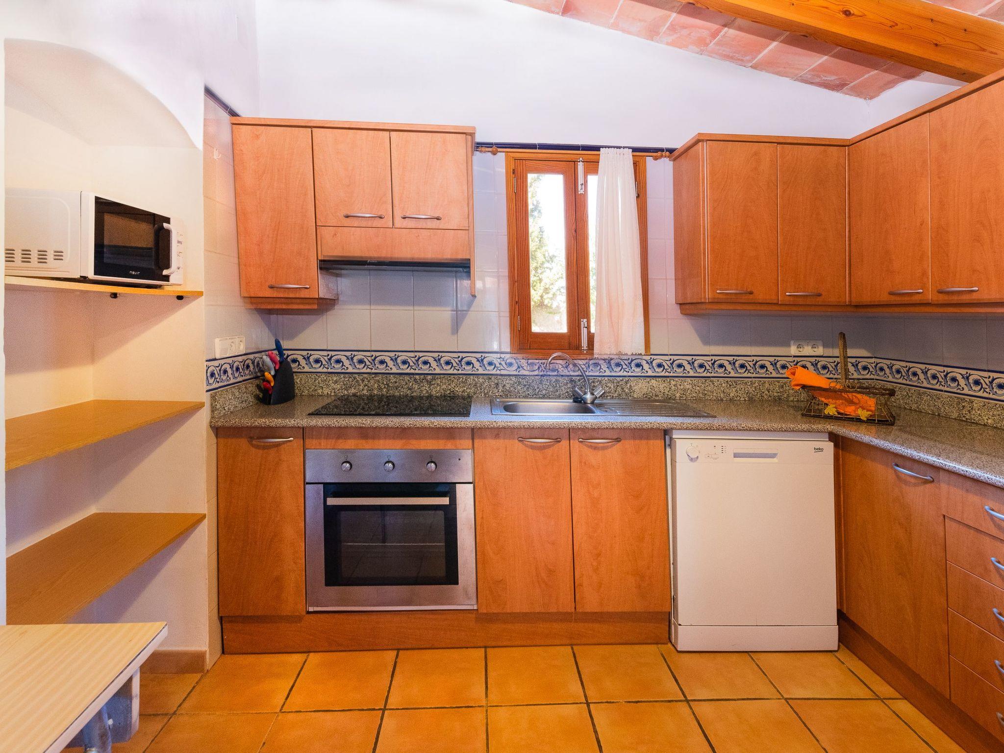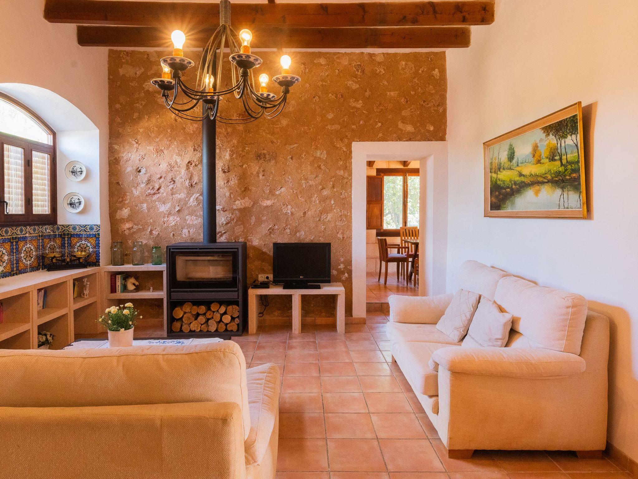 The house is partly furnished in a romantic Mallorcan style, while more recent styles, such as natural walls, create a cosy atmosphere and the bathrooms are of course modern. On the ground floor there is a living room with a seating area and open fireplace, which can be used on cooler evenings. A step leads to the fully equipped kitchen. There is also a dining room and three bedrooms, two of which have double beds and the third has two single beds. There is also a full bathroom and a shower room. One of the bedrooms has access to the beautiful garden. The upper floor of the house is not in use.