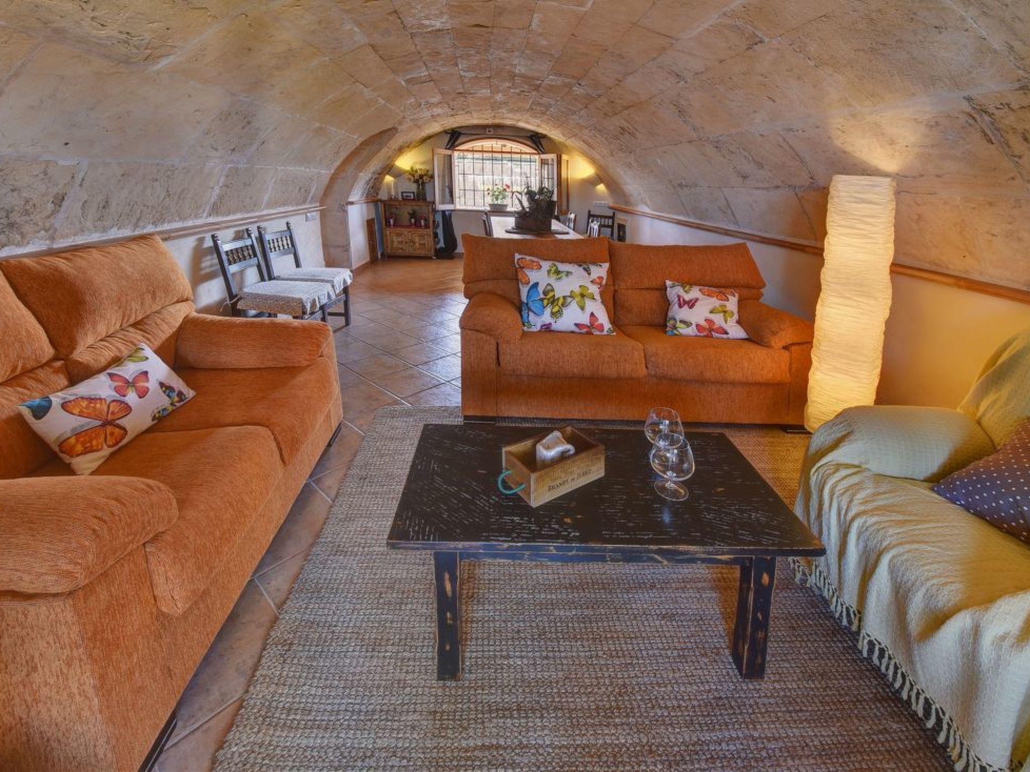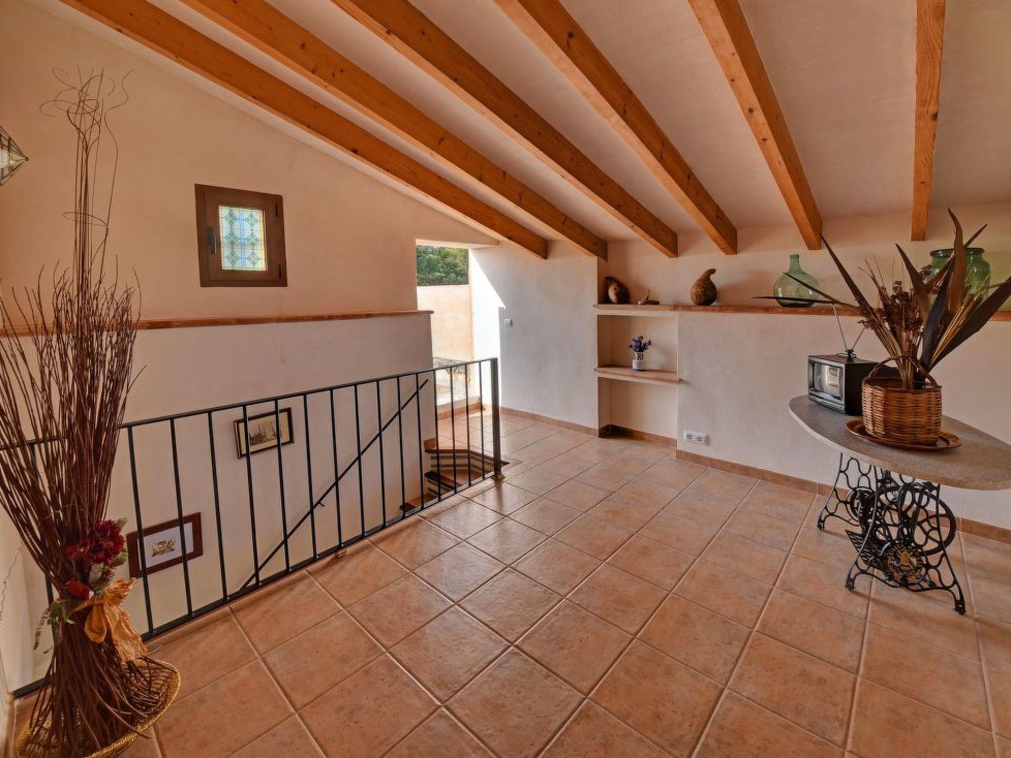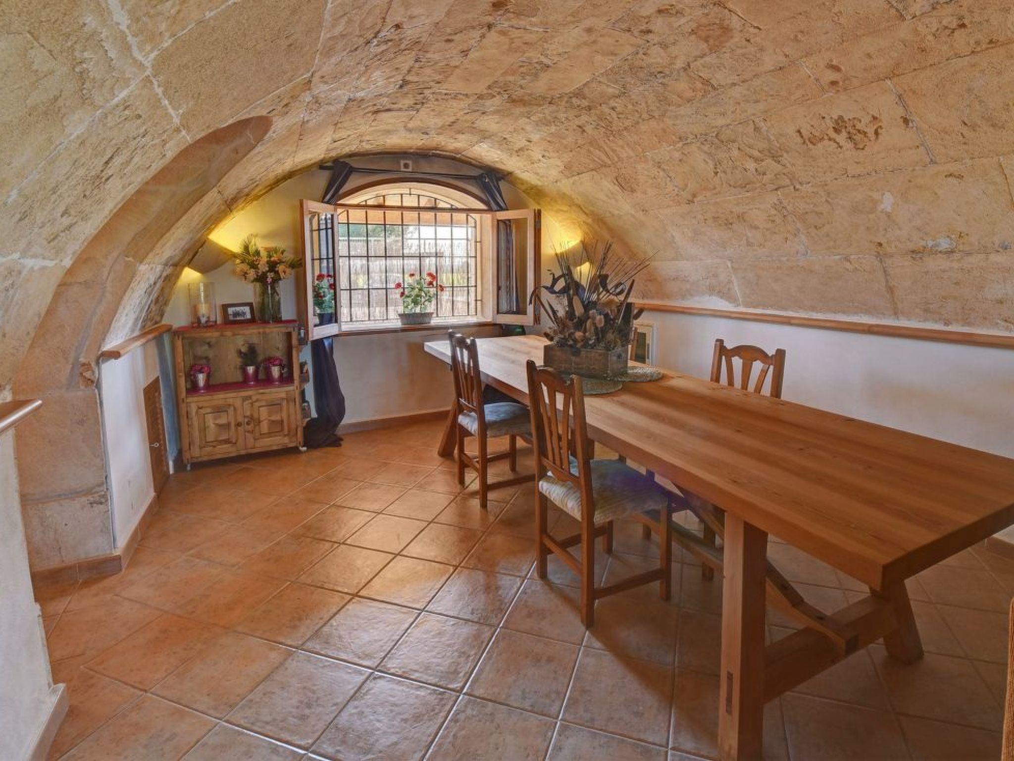 Two-storey finca. The living/dining area impresses with its beautiful arched stone ceiling. From here you have direct access to the covered terrace with BBQ and the pool area. The kitchen also offers access to the covered terrace. There is also a single bedroom with en suite shower room on the ground floor. The upper floor has a double and a twin bedroom. These bedrooms share a separate shower room.