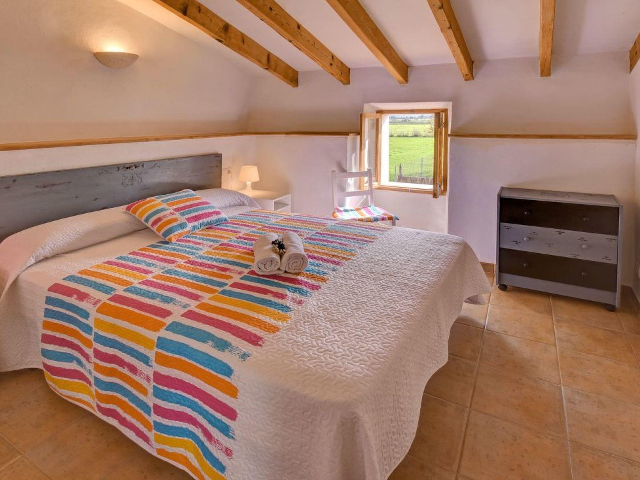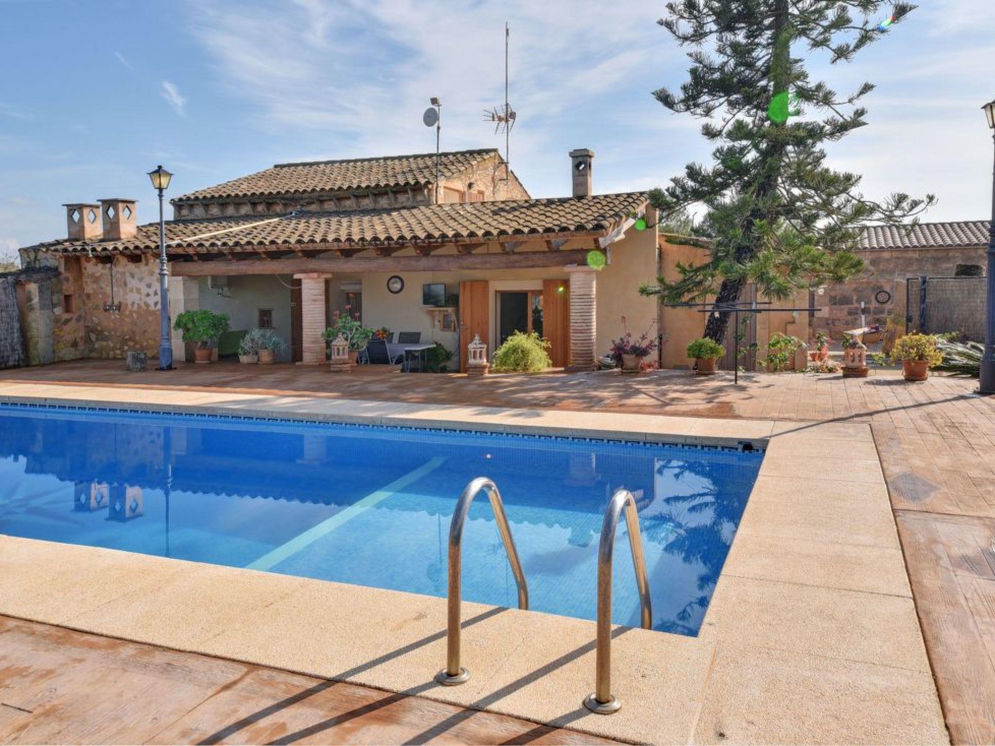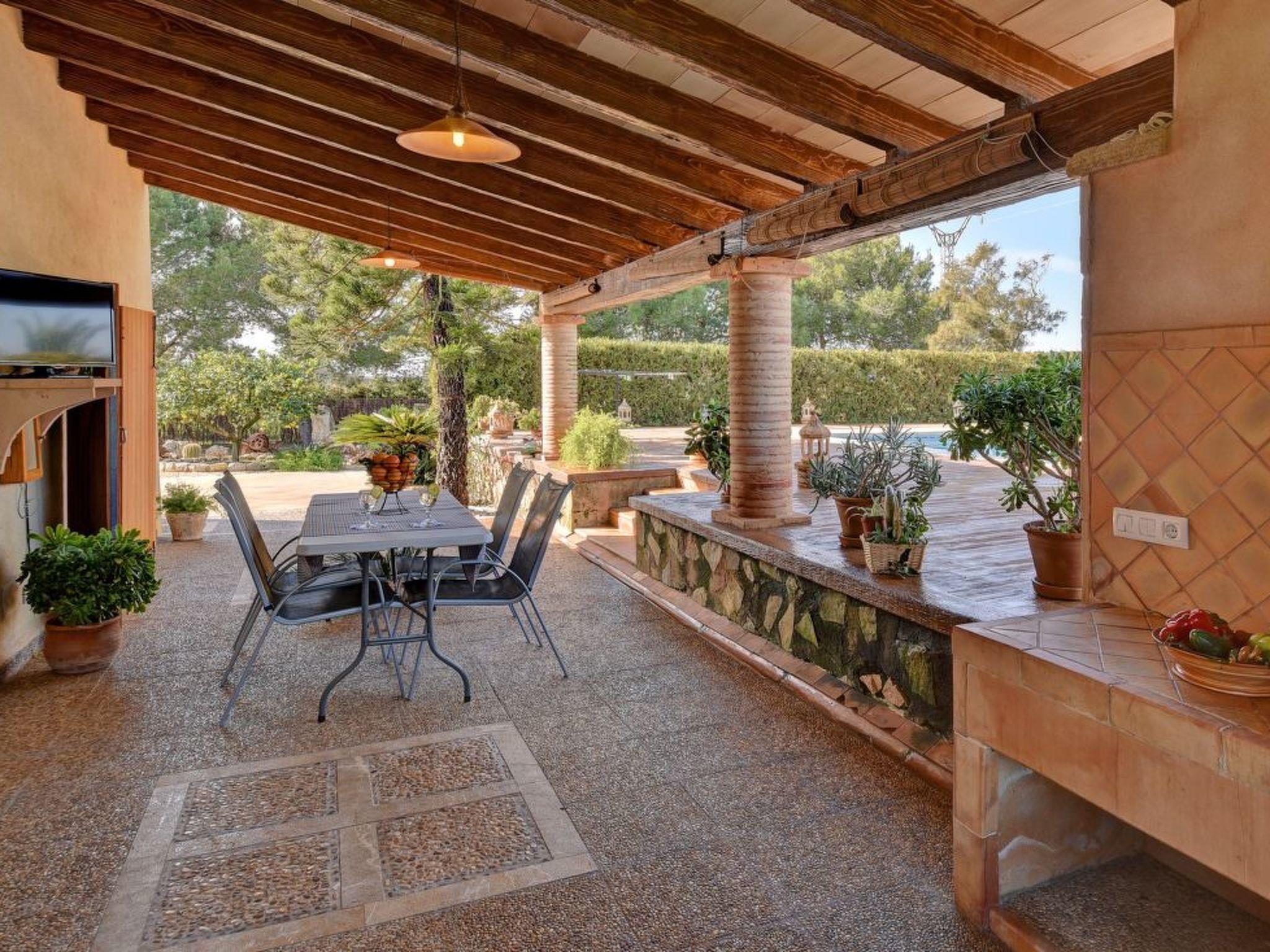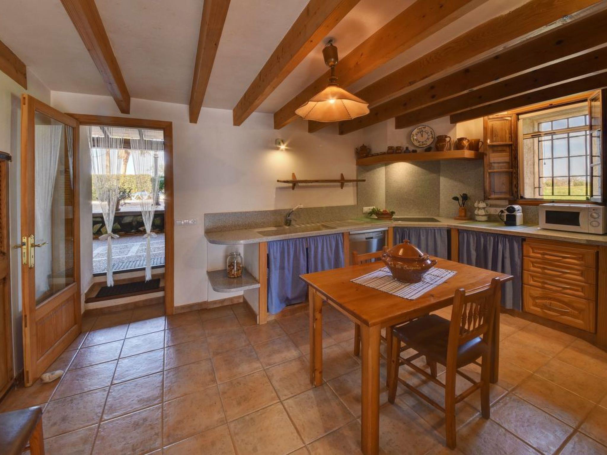 Two-storey finca. The living/dining area impresses with its beautiful arched stone ceiling. From here you have direct access to the covered terrace with BBQ and the pool area. The kitchen also offers access to the covered terrace. There is also a single bedroom with en suite shower room on the ground floor. The upper floor has a double and a twin bedroom. These bedrooms share a separate shower room.