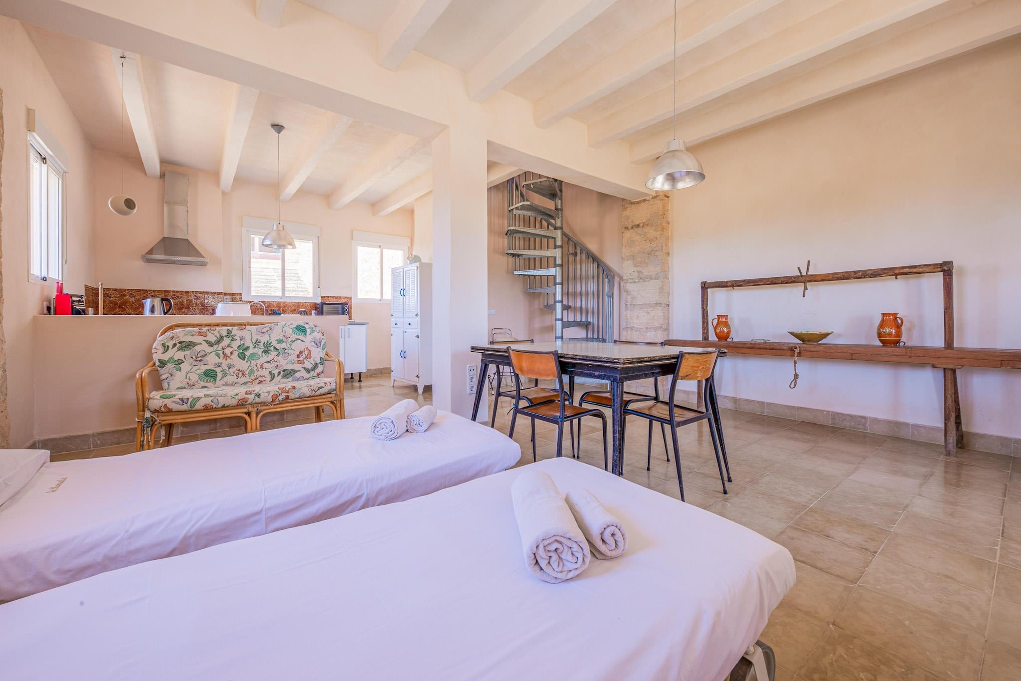 Gemt inde i ejendommen Possessió de Sa Barrala fra det 13. århundrede tilbyder denne hyggelige duplex for to en sjælden blanding af arv, natur og ro ved stranden. Beliggende i naturparken Es Trenc-Salobrar, har gæsterne privat adgang til Es Trenc-stranden via en naturskøn vej gennem marker og skov. Den fælles swimmingpool og hytte ved stranden med bruser, badeværelse og minibar tilføjer komfort til din ferie ved kysten. Indvendigt har duplex 1 soveværelse med dobbeltseng med aircondition, 2 badeværelser og et fuldt udstyret køkken. Den udendørs spiseplads er perfekt til grill og solnedgangsmiddage. Med fem gæstehuse på ejendommen forbliver det fredeligt og intimt - ideelt til at koble af fra hverdagens travlhed. Kun 10 minutter fra Campos og 40 minutter fra Palma Lufthavn balancerer beliggenheden afsondrethed med bekvemmelighed. Rygning er strengt forbudt indendørs, hvilket sikrer et frisk og roligt ophold.