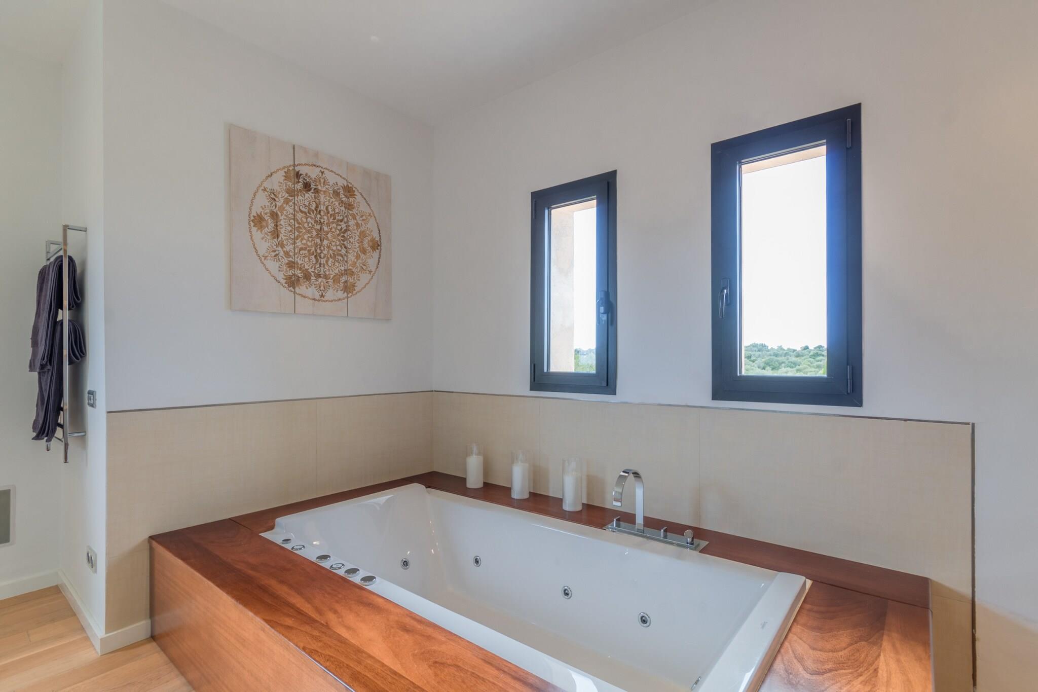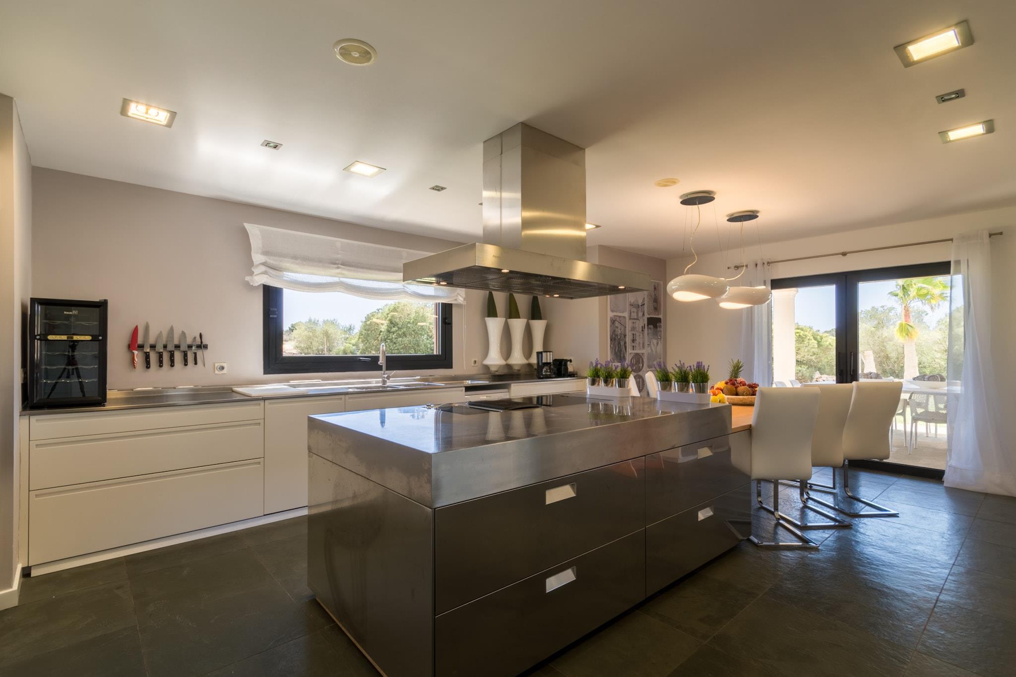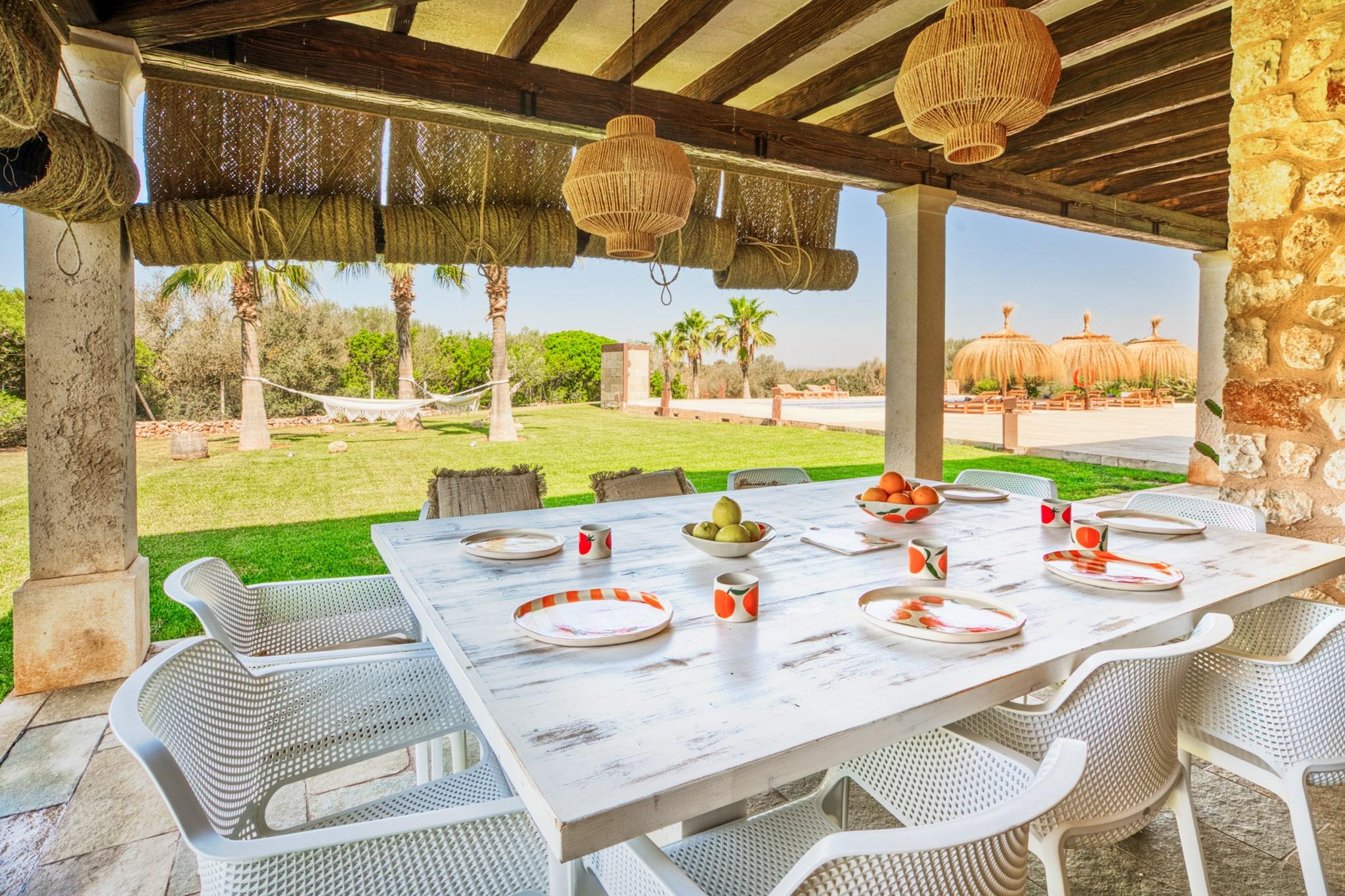 Denne fantastiske villa, Flor de Sal a Sa Canoveta, tilbyder et luksuriøst og rummeligt tilflugtssted, perfekt til en afslappende ferie på Mallorca. Med kapacitet til at rumme op til 10 gæster kan ejendommen prale af 5 smukt designede soveværelser, herunder en blanding af konge-, dronning- og enkeltsenge. Der er 3 badeværelser, hvoraf to er en suite, hvilket sikrer ultimativ komfort og privatliv. Villaen er udstyret med aircondition og varme samt gratis Wi-Fi, hvilket gør den ideel til ophold året rundt. Nyd de ekspansive opholdsområder, som omfatter en stor stue med en komfortabel sofa og satellit-tv, samt en rummelig spisestue med udsigt over haven. Villaen ligger kun 5 km fra den berømte naturlige strand Es Trenc og tilbyder en betagende udsigt over øen Cabrera. Denne uberørte strand, berømt for sit krystalklare vand og hvide sand, er et must-besøg. For mere variation tilbyder de nærliggende byer Sa Rapita og Colonia de Sant Jordi masser af caféer, supermarkeder og restauranter. Udover stranden er der masser af aktiviteter at nyde i området, herunder et bordtennisbord og en smuk have at slappe af i. Indvendigt har villaen et luksuriøst designerkøkken udstyret med moderne apparater, perfekt til at tilberede måltider. Hvert af de 5 soveværelser har sit unikke design og byder på rigelig plads med et stort familiebadeværelse på øverste etage. Terrassen er ideel til udendørs spisning med et stort bord til familiemåltider, en moderne gasgrill og en indbygget grill. Lejelicensnummeret er ETV/6266.