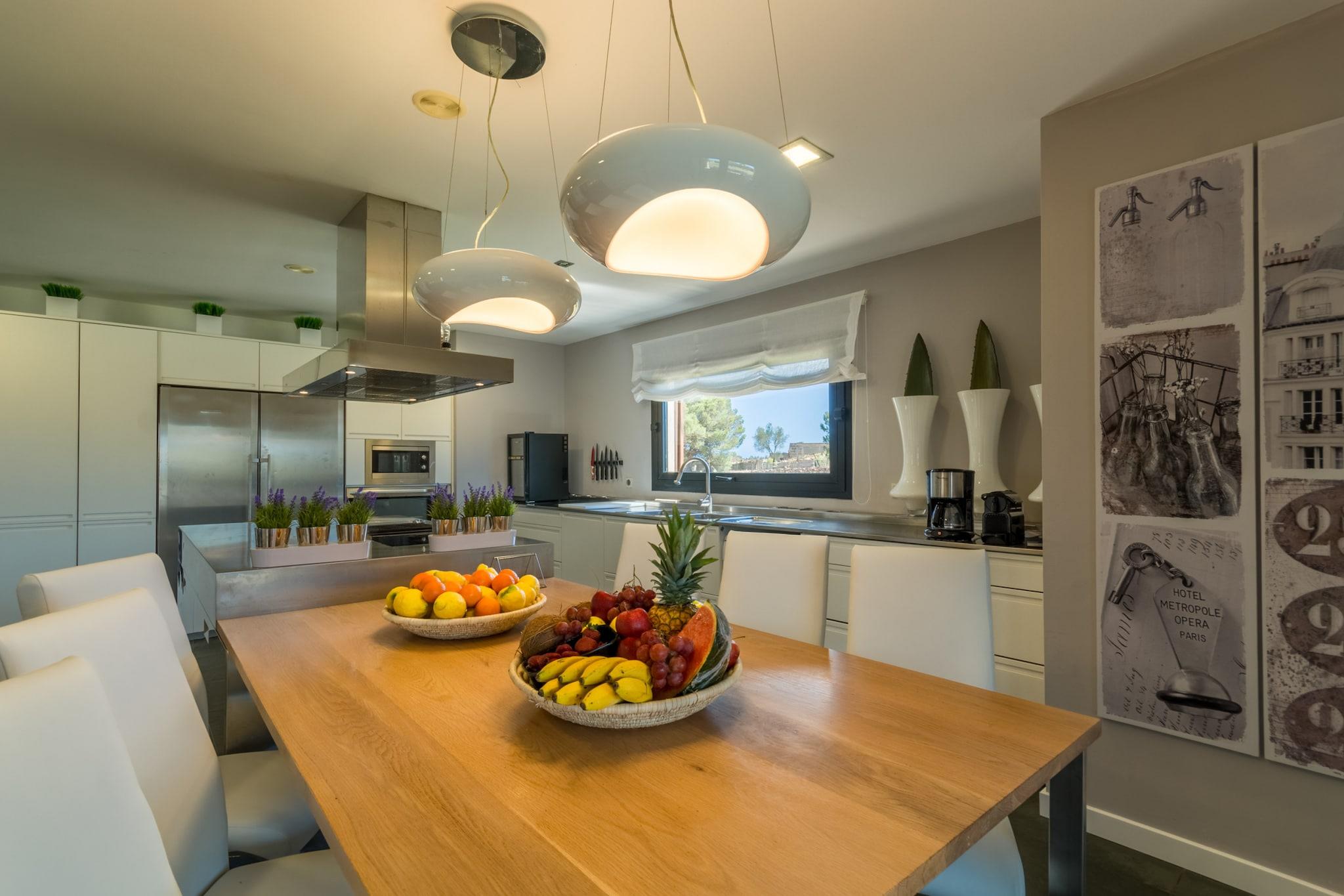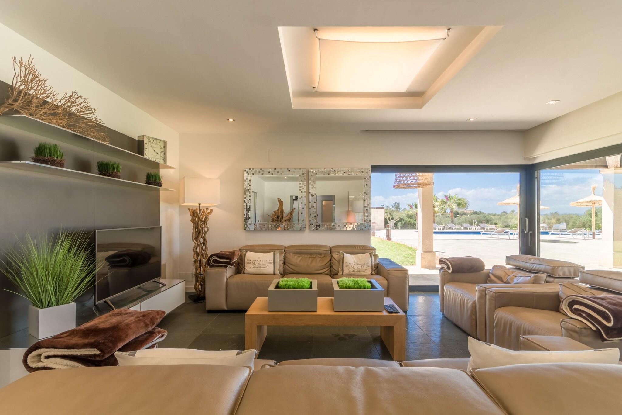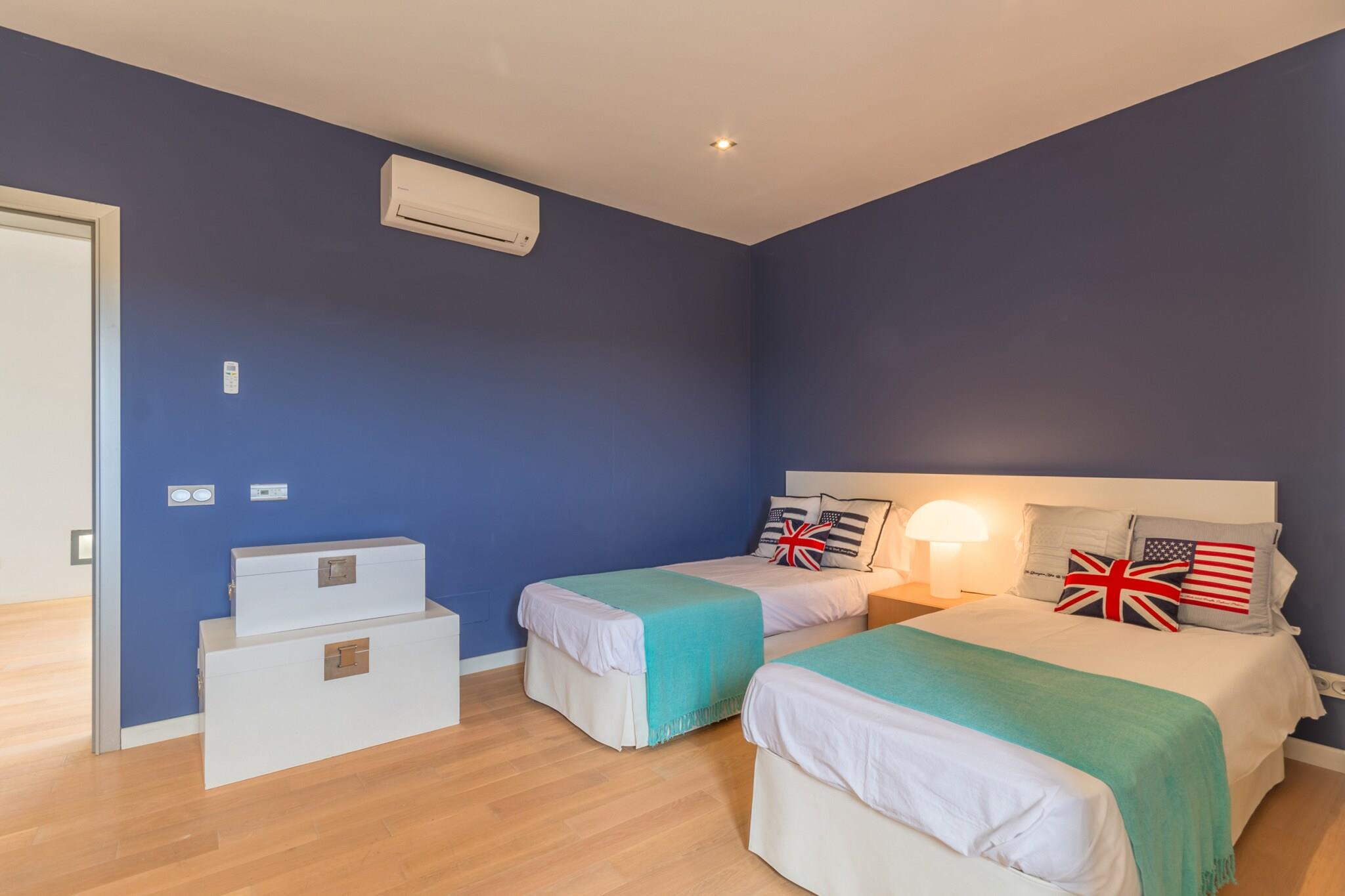 Denne fantastiske villa, Flor de Sal a Sa Canoveta, tilbyder et luksuriøst og rummeligt tilflugtssted, perfekt til en afslappende ferie på Mallorca. Med kapacitet til at rumme op til 10 gæster kan ejendommen prale af 5 smukt designede soveværelser, herunder en blanding af konge-, dronning- og enkeltsenge. Der er 3 badeværelser, hvoraf to er en suite, hvilket sikrer ultimativ komfort og privatliv. Villaen er udstyret med aircondition og varme samt gratis Wi-Fi, hvilket gør den ideel til ophold året rundt. Nyd de ekspansive opholdsområder, som omfatter en stor stue med en komfortabel sofa og satellit-tv, samt en rummelig spisestue med udsigt over haven. Villaen ligger kun 5 km fra den berømte naturlige strand Es Trenc og tilbyder en betagende udsigt over øen Cabrera. Denne uberørte strand, berømt for sit krystalklare vand og hvide sand, er et must-besøg. For mere variation tilbyder de nærliggende byer Sa Rapita og Colonia de Sant Jordi masser af caféer, supermarkeder og restauranter. Udover stranden er der masser af aktiviteter at nyde i området, herunder et bordtennisbord og en smuk have at slappe af i. Indvendigt har villaen et luksuriøst designerkøkken udstyret med moderne apparater, perfekt til at tilberede måltider. Hvert af de 5 soveværelser har sit unikke design og byder på rigelig plads med et stort familiebadeværelse på øverste etage. Terrassen er ideel til udendørs spisning med et stort bord til familiemåltider, en moderne gasgrill og en indbygget grill. Lejelicensnummeret er ETV/6266.