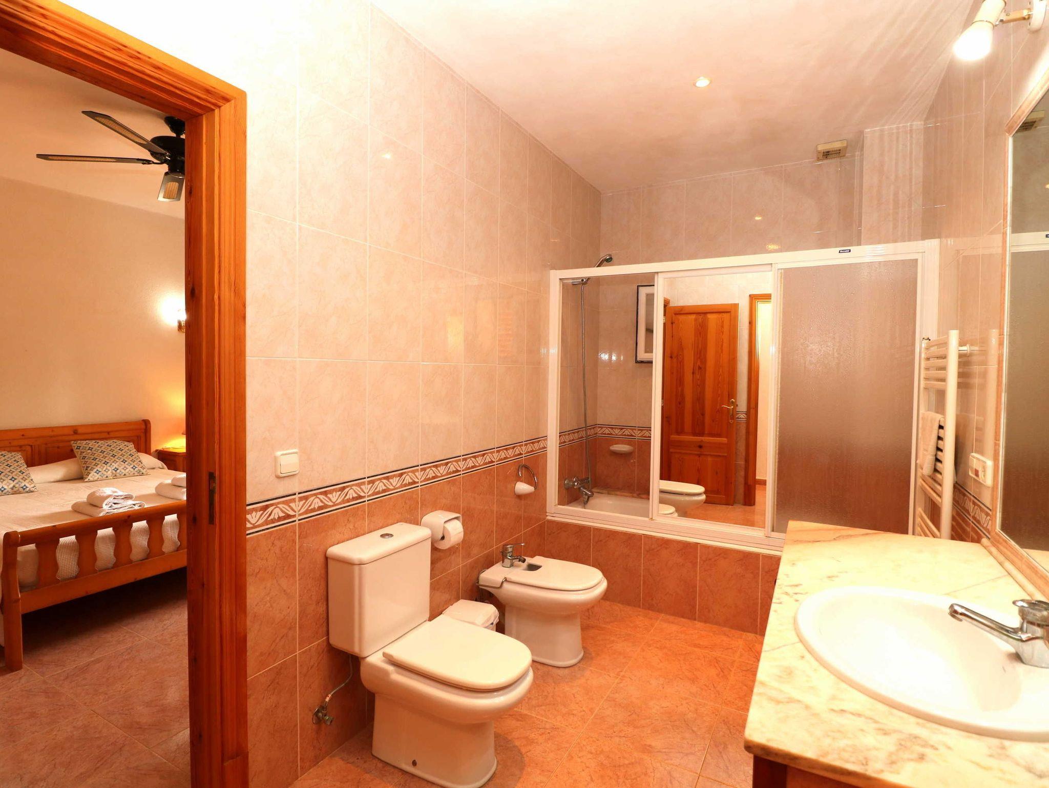 Unsere schöne Finca Son Mas ist sehr ruhig in der Nähe von Campos gelegen. Ein besonderes Merkmal dieser Finca ist das Sie eine Elektroauto Ladestation im Aussenbereich hat, was Sie zu einem besonderen Urlaubserlebnis macht. Die Finca verfügt über 3 Schlafzimmer und 2 Badezimmer, bietet aber ideal Platz für bis zu 6 Personen plus Baby. Das ganze Haus ist klimatisiert. Zwei der Schlafzimmer haben jeweils ein Doppelbett das dritte hat ein Doppelbett und 4 Einzelbetten. Im Haus gibt es 2 Badezimmer jeweils mit Badewanne. Son Mas bei Campos ist im typischen mallorquinischem Stil eingerichtet. Die Küche besteht aus rustikalen Küchenmöbeln aber ist mit neuwertigen Elektrogeräten ausgestattet. Hier finden Sie alles was Sie in Ihrem Urlaub brauchen wie z.B. Herd, Ofen, Toaster, Kühlschrank, Mikrowelle, Geschirr, Geschirrspüler, etc.