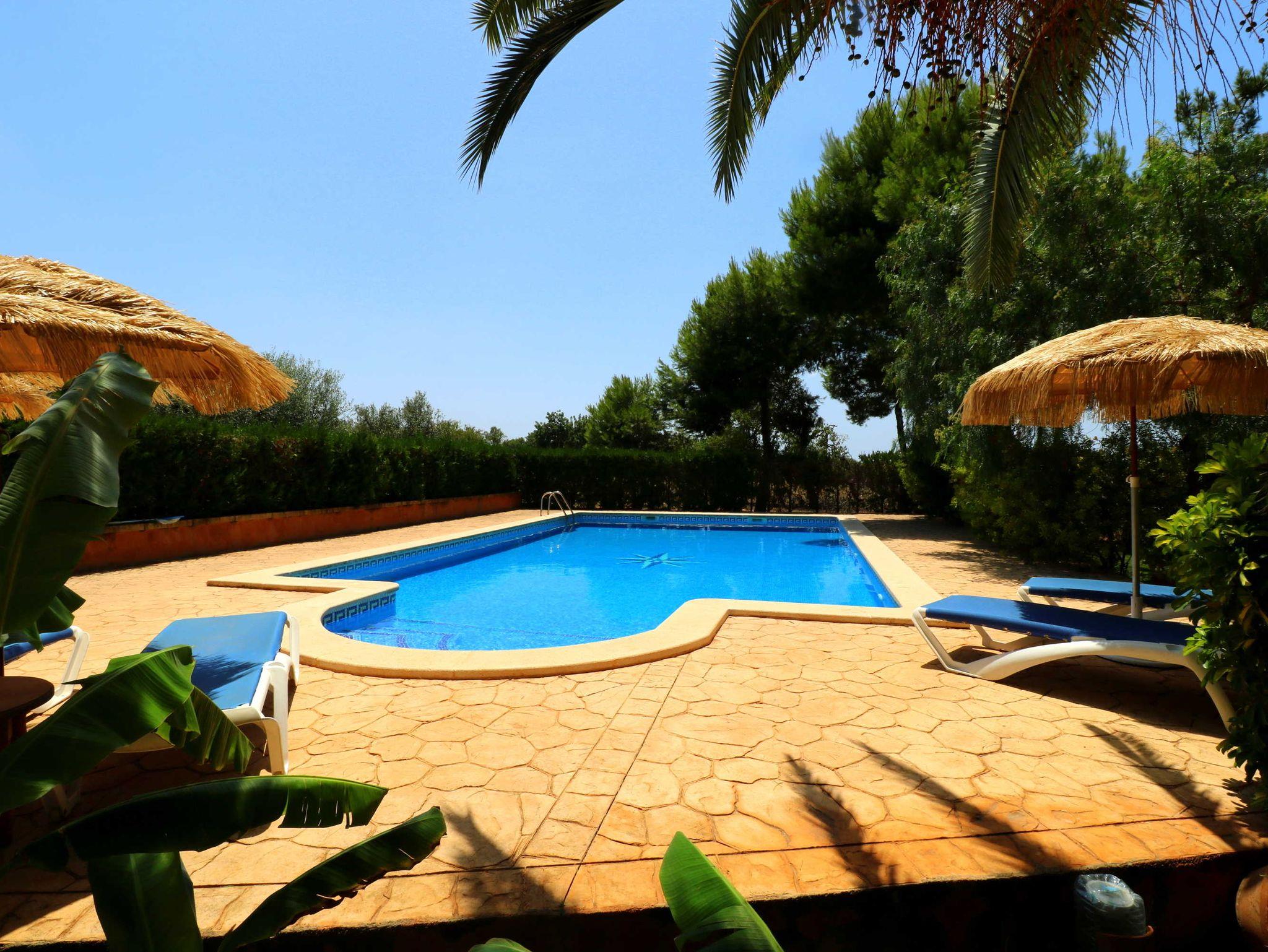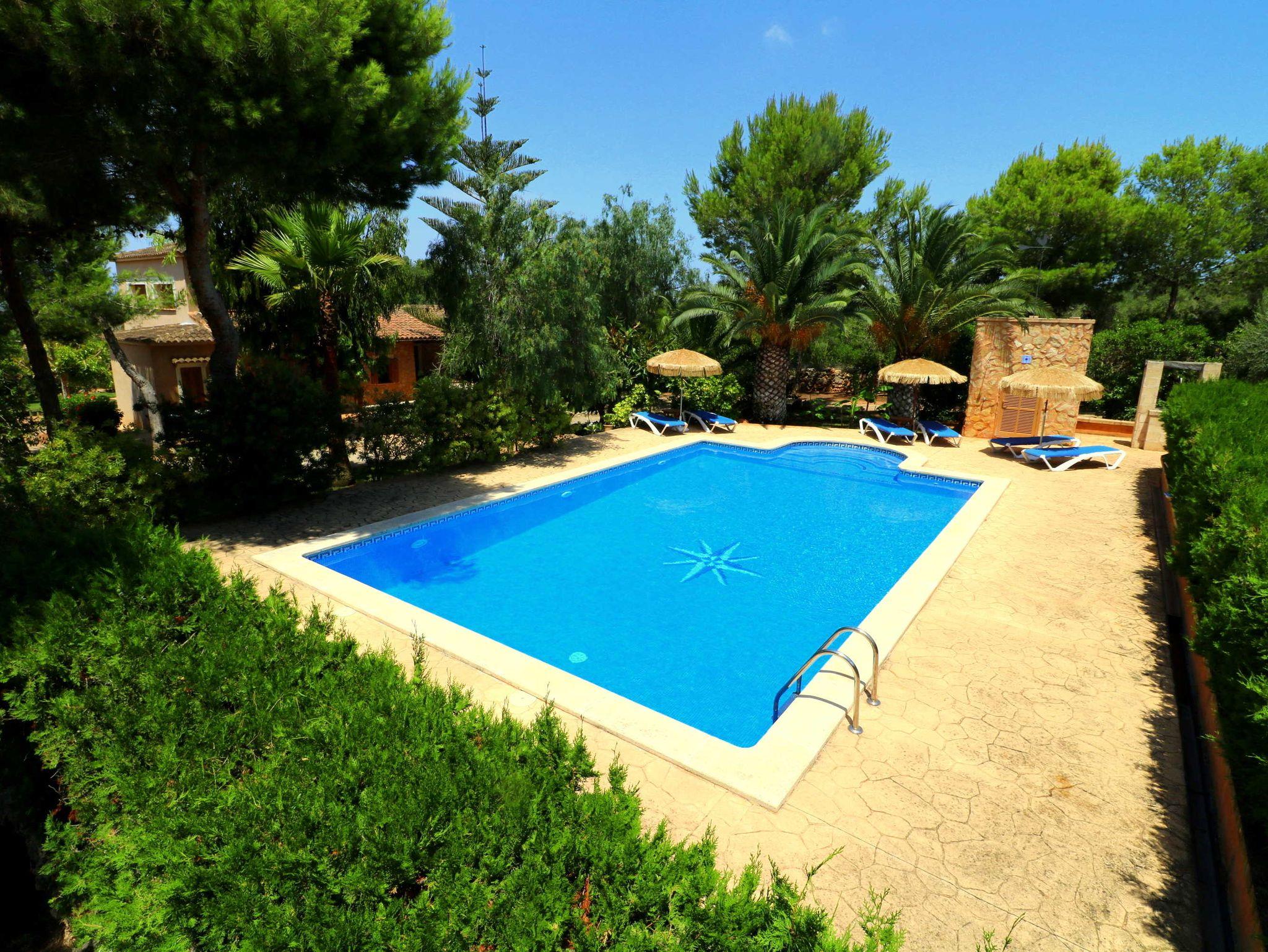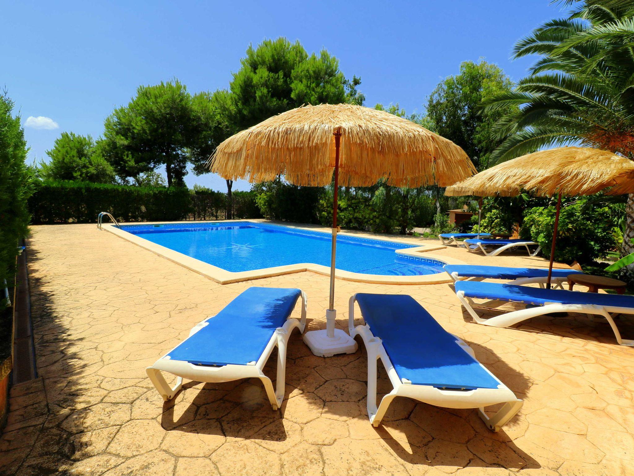 Im Aussenbereich finden Sie einen herlichen Garten mit überdachter Terrasse uns Sitzecke und einen grossen Pool in den Massen von 6mx10m. Ein Grill so wie auch Sonnenliegen sind rings um denn Pool herum. Hier gibt es sehr viel Schatten da der Garten sehr viele Pinienbäume hat und somit es immer schön frisch ist.