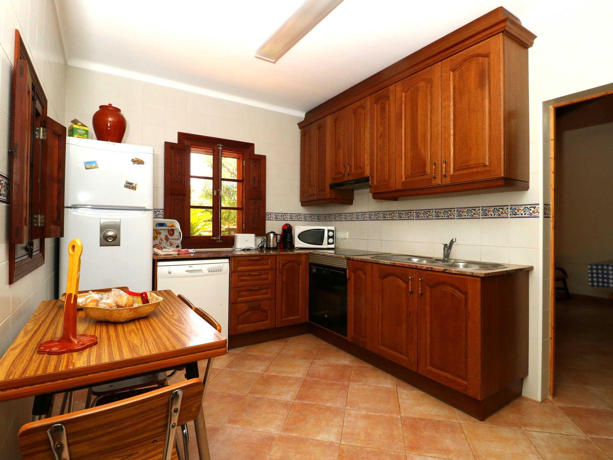 Der Wohnbereicht ist mit SAT-TV und WLAN ausgestattet. Die Finca verfügt über 3 Schlafzimmer. Zwei dieser haben jeweils zwei Einzelbetten, das andere hat ein Doppelbett. Es gibt 2 Badezimmer, eines mit Badewanne und das andere mit Dusche, beide haben Bidet. Die Küche ist funktional ausgestattet mit dem notwendigstem in Ihrem Urlaub wie, Spühlmaschine, Toaster, Mikrowelle, Geschirr, Herd, etc. hier gibt es auch einen kleinen Esstisch, der grosse Essbereich befindet sich aber mit im Wohnzimmer.