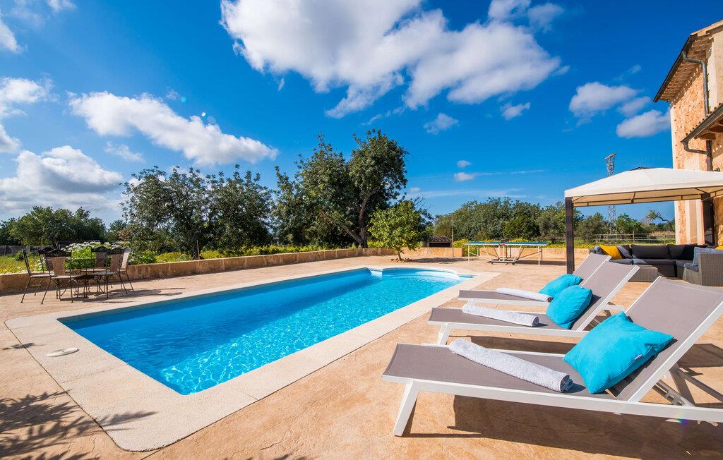 Masser af plads, fred og ro, natur, masser af muligheder for aktive familier og meget mere: Det er, hvad fincaen "Can Alba de Llucmajor" byder på for op til seks personer, et smukt feriehus på det sydlige Mallorca. Fincaen med pool er beliggende på en stor, grøn ejendom i en rolig beliggenhed uden direkte naboer. jeres finca har et meget velholdt, rummeligt og delvist overdækket terrasseområde: Her kan I enten nyde frisk grillet mad sammen ved spisebordet, sætte jer i den behagelige udendørs sofa med en god bog, nyde det lange og rigelige solskin på sol liggestole ved poolen takket være den sydvendte orientering eller spil et spil bordtennis ved husets bord. Fincaen byder velkommen i en klassisk middelhavsstil med et moderne islæt, venligt og lyst Mange vinduer, trælofter og en smagfuld indretning præger den meget velholdte, hyggelige atmosfære. Indretningen lader heller ikke tilbage at ønske: I stueetagen er der ikke kun en rummelig, åben stue og spisestue med pejs, som skaber en hyggelig atmosfære, men også et stort køkken med endnu et spisebord, hvor I kan sidde hyggeligt sammen. og få en vidunderlig morgenmad. De tre dobbeltværelser i huset lover afslappende nætter, et i stueetagen og to på øverste etage. Et moderne badeværelse nedenunder og ovenpå afrunder boligkomforten på jeres drømmefinca på Mallorca. Mallorcas landliv parret med masser af komfort inde og ude: Dette er fincaen "Can Alba de Llucmajor" i den solrige sydlige del af øen. På trods af den rolige beliggenhed på en kæmpe ejendom, ligger jeres feriehus kun 4 km fra Llucmajor. Den charmerende landsby med mange butikker, restauranter og caféer kan nemt nås via landevejen, som kan høres akustisk afhængig af vindretningen. Strande som S'Arenal eller Racó de S'Arena ligger henholdsvis kun 16 og 18 km væk. Bemærk venligst, at denne ejendom ikke accepterer ungdomsgrupper eller polterabender. En ungdomsgruppe på denne ejendom består af personer på 28 år eller derunder. Book ikke denne ejendom, hvis I er en ungdomsgruppe eller en polterabendgruppe, da jeres reservation vil blive afvist, når den er booket, hvilket også kan være tilfældet ved ankomst til ejendommen eller under jeres ophold, og I vil ikke modtage en refusion.