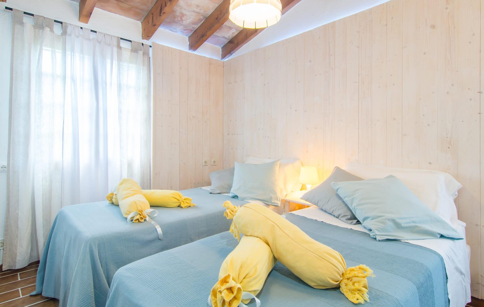 Familie eller venner? Bjerge eller hav? Aktiv ferie eller total afslapning? Takket være sin fremragende beliggenhed er den landlige villa "Can Bleio" et ideelt udgangspunkt for adskillige forskellige aktiviteter på Mallorca. Når I træder ind i huset, bliver I mødt af en åben stue med satellit-tv og spiseplads, et moderne fuldt udstyret køkken, fire airconditionerede soveværelser med dobbeltsenge og to badeværelser (et en suite). Talrige traditionelle elementer som synlige tagbjælker, mørke sprossede vinduesrammer, et rustikt spisebord og en rummelig hjørnesofa skaber en meget hyggelig atmosfære. En ting er sikkert: Uanset hvilken type ferie I ønsker at holde i sommerhuset “Can Bleio”, vil I kunne slukke fra hverdagen fra første minut af jeres ophold. Feriehuset, bygget i traditionel stil, er omgivet af en smuk havegrund med pool og en rummelig, velholdt græsplæne. Her finder I flere komfortable siddepladser, liggestole og en chill-out terrasse. Den lille træhytte gemmer på et lokkende spabad og en motionscykel. Det overdækkede udekøkken rummer en pejs og en stor spiseplads. I tilknytning til hovedhuset er endnu en overdækket terrasse med et smedejernssiddeområde og en behagelig sofa - det perfekte sted til hyggelige stearinlys og vinsessioner. Feriehuset "Can Bleio" ligger i et landligt område ca. 2 km øst for den smukke landsby Pollença. Den nærliggende Ma-2202 tager jer til de lange strande i Pollença på mindre end 10 minutter i bil. De familievenlige strande nær Alcúdia kan nås på cirka 15 minutter i bil.