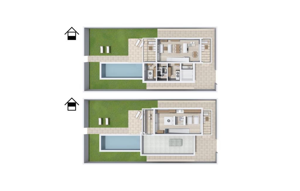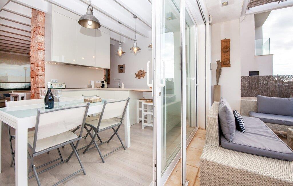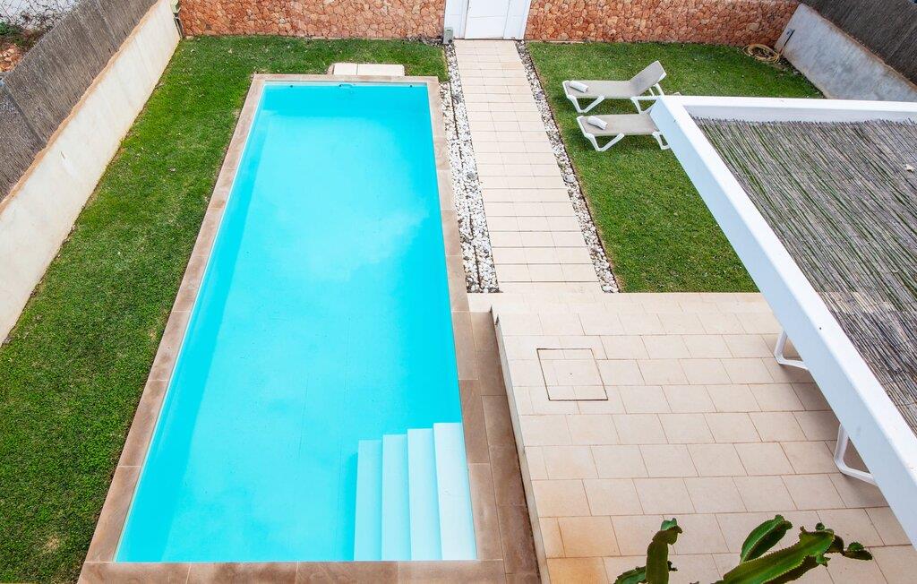 Denne kubeformede bondegård på Mallorca er et vidunderligt sted for ubekymrede ferier ved havet. Den umiddelbart iøjnefaldende tilbygning med naturstensfacade kendetegner det stilrene hjem, som sigter mod at være én ting frem for alt: Individuelt. Plæner og en væg med privatlivsskærme præger udendørsområdet, hvis centrum er den aflange pool. Det lover vidunderlig afkøling på varme dage og er meget let at nå via trapper. Komfortable liggestole fås til alle soldyrkere, som blot kan placeres på jeres yndlingssted, og hvorfra I kan nyde ferielivet i fulde drag. Den let hævede terrasse direkte ved huset har en indbydende chill-out lounge med udsigt til haven og poolen. På den anden side af huset byder en anden veranda på et tilsvarende hyggeligt sted, i dette tilfælde bekvemt placeret direkte foran køkkenet. Et originalt udtænkt og designet interiør byder jer velkommen, når I træder ind i den behageligt lyse villa "Can Bosquerro". Den solide, rødligt glitrende natursten fortsætter her og sætter både effektive og æstetiske accenter i rummenes vidunderlige maritime flair. Stue-spisestue og køkken smelter sammen i en halvåben planløsning, der skaber en flydende overgang mellem brugsområderne. Komfort og funktionalitet er lige vigtige. Alle mulige unikke detaljer forstærker denne individuelle, moderne atmosfære yderligere. To hyggelige soveværelser - et med dobbeltseng og et med køjeseng - samt et brusebad (installeret i det største af de to soveværelser) fuldender stueetagen. Den øverste etage er domineret af et rummeligt soveværelse med opholdsstue og privat badeværelse. Herfra har I udgang til den skønne altan, hvor jeres første kaffe om morgenen med sikkerhed smager lige så lækkert som en solnedgang. Denne villa på Mallorca er et sandt lykketræf for alle, der ønsker at tilbringe deres ferie tæt på stranden, æstetisk og af høj kvalitet. Dette æstetiske feriehus på Mallorca scorer med sin attraktive beliggenhed tæt ved havet - stranden og havnen ligger i gåafstand. Den originalt designede villa ligger desuden bekvemt direkte på en lille stille gade og er derfor ideelt forbundet med forskellige udflugtsmål. Sa Ràpita har en attraktiv infrastruktur med restauranter og indkøbsmuligheder. Nærheden til andre smukke strande, herunder Es Trenc eller Ses Covetes, afrunder beliggenhedsfordelene.