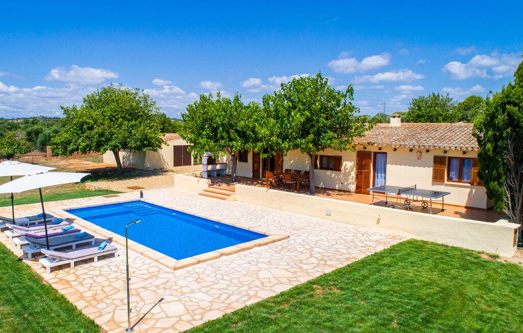 Et smukt, muntert, gult hus for op til fem personer på en grund på over 14.000 m² midt i den smukke natur på den østlige del af øen: dette er villaen "Can Crespinetlo Nou". Da der næsten ikke er nogen naboer her, kan I nyde panoramaudsigten over det omkringliggende landskab i fuldstændig fred og ro. Det dybblå middelhav skinner i det fjerne, men I behøver ikke at hoppe ind i bilen for at køle jer ned i vandet: lige ved siden af huset er der en let skrånende pool med udendørs bruser, hvor I enten kan svømme længder eller bare slappe af på en lilo - mest med en masse sol takket være den sydvendte beliggenhed. Hele det rummelige terrasseområde nyder også godt af masser af sol. Poolen tiltrækker med komfortable liggestole og et par skyggefulde parasoller og ved huset kan I sætte jer ned for at spise ved siden af to smukt integrerede træer, grillen venter allerede på jer. Hvis I foretrækker noget mere aktivt, kan I slippe dampen med et spil bordtennis. Interiøret i "Can Crespinetlo Nou" er behageligt og behageligt reserveret. Hvide vægge og brune trædetaljer som vinduesrammer, loftsbjælker og møbler supplerer hinanden perfekt; Overdreven dekoration blev bevidst undgået. Alle værelser kan findes komfortabelt på ét niveau. Det åbne køkken af høj kvalitet med smukke fliser fører til spisepladsen med et stort bord og tilhørende stole. Efter jeres måltid kan I sidde i en af de komfortable sofaer lige ved siden af spisebordet og nyde knitren fra den brændende pejs eller en spændende aften med fjernsyn med et glas vin. Er I træt, kan I trække jer tilbage til et af de fire soveværelser, hvoraf to er dobbeltværelser og et enkeltværelse. To moderne badeværelser med brusere fra gulv til loft, hvoraf det ene har eget bad, fuldender boligkomforten. Hvis I sætter pris på smukke landskaber og nyder at tilbringe tid i naturen, så har I fundet det perfekte feriehus: I kan tage en skøn tur rundt i villaen eller tage på cykelture. Og bedst af alt: shopping og alle bekvemmeligheder i en by kan findes mindre end 5 km væk. Efter en kort køretur i en lejebil langs vejen, som kan høres afhængigt af vindretningen, når I den smukke lille havneby Porto Cristo. Der er ingen spor af masseturisme: traditionelle stenhuse og imponerende hvide villaer præger stedet. Middelaldercentret tiltrækker med romantiske, smalle gader og mange historiske bygninger. På den største shoppinggade Passeig de la Sirena finder I hyggelige butikker, gode restauranter og indbydende caféer. I kan også bruge en dag på Porto Cristo-stranden, som byder på en velholdt strand med lavvandet indsejling i vandet og en livlig strandpromenade, ideel for familier med børn og også meget populær blandt lokalbefolkningen. Et smukt hus på en kæmpe grund, vendt mod syd, med pool og solterrasse lige foran døren og havet så tæt på, at man endda kan se det fra terrassen: en-etagers villaen "Can Crespinetlo Nou" er omgivet af natur, men alligevel kun 4,4 km fra Porto Cristo på den østlige del af Mallorca. Den lille, men ekstraordinære bystrand ligger kun 4,7 km væk med lejebil. Vi anser denne bolig for tilgængelig for vores gæster med nedsat mobilitet, men vi opfordrer alle gæster til at overveje boligens egnethed baseret på deres egne krav.