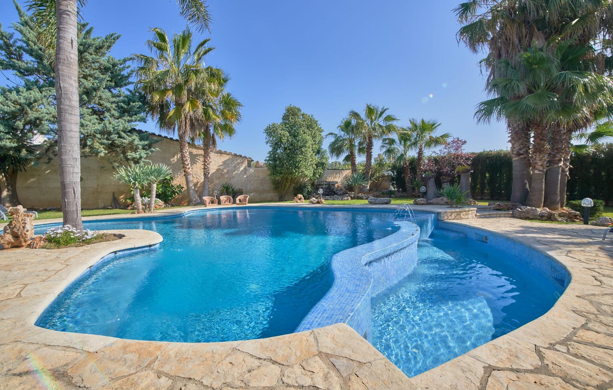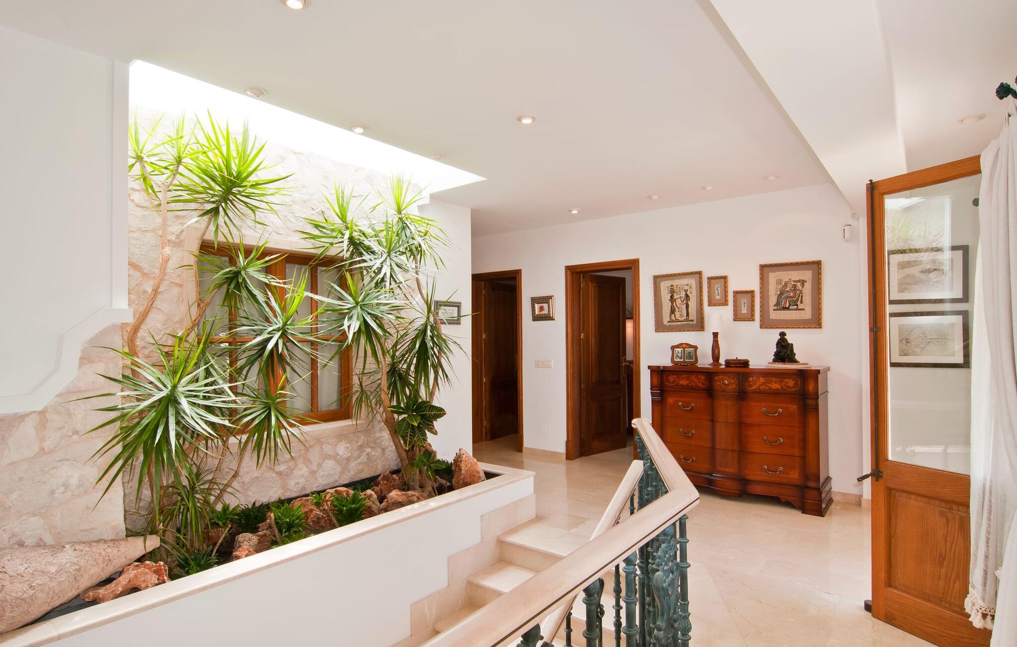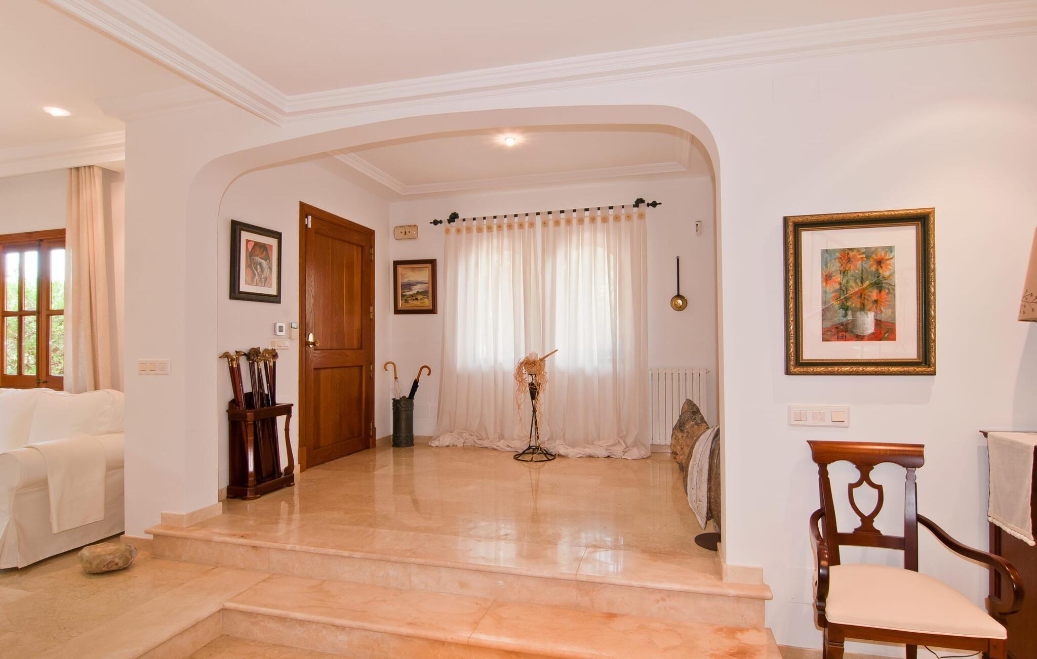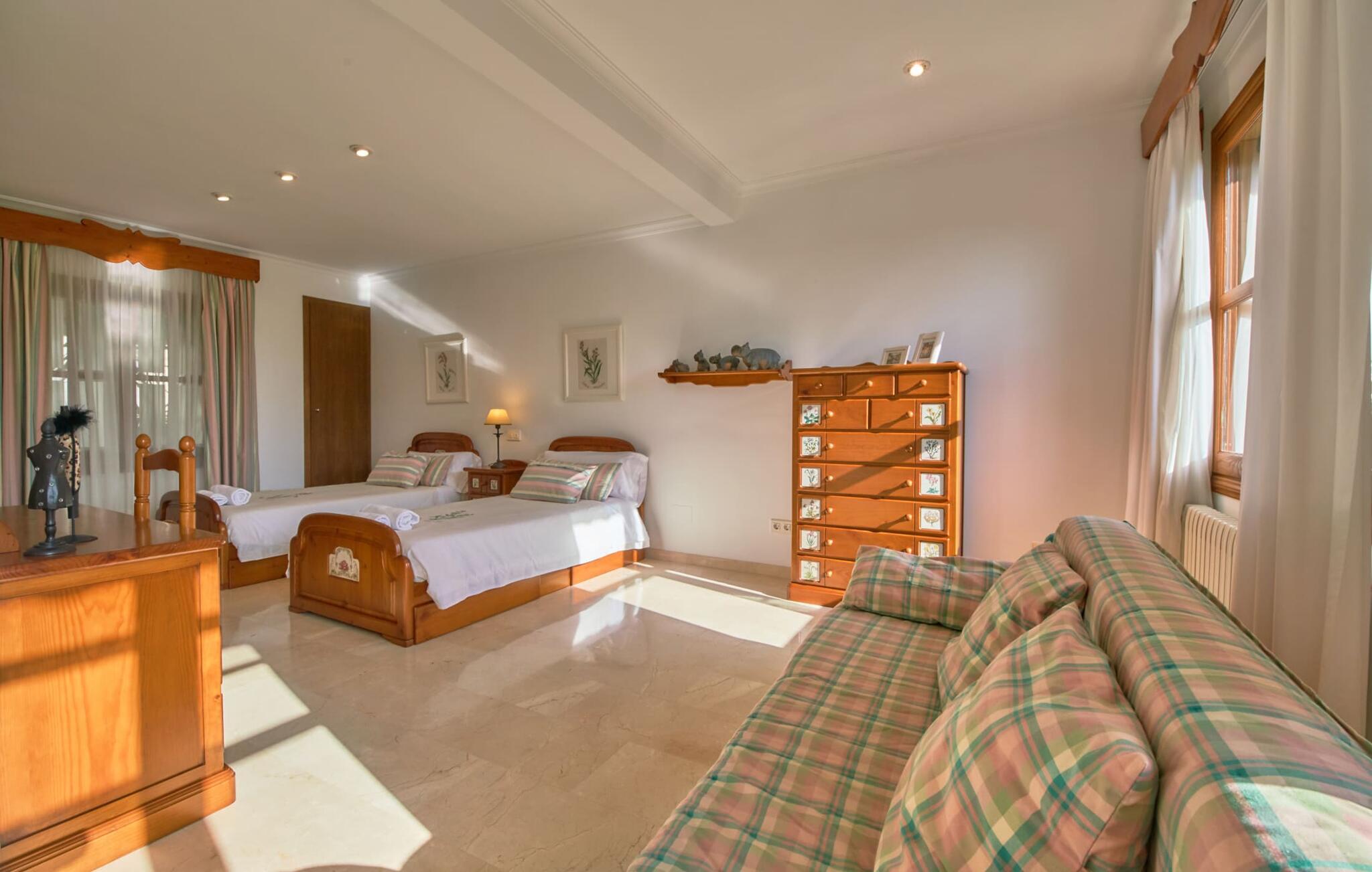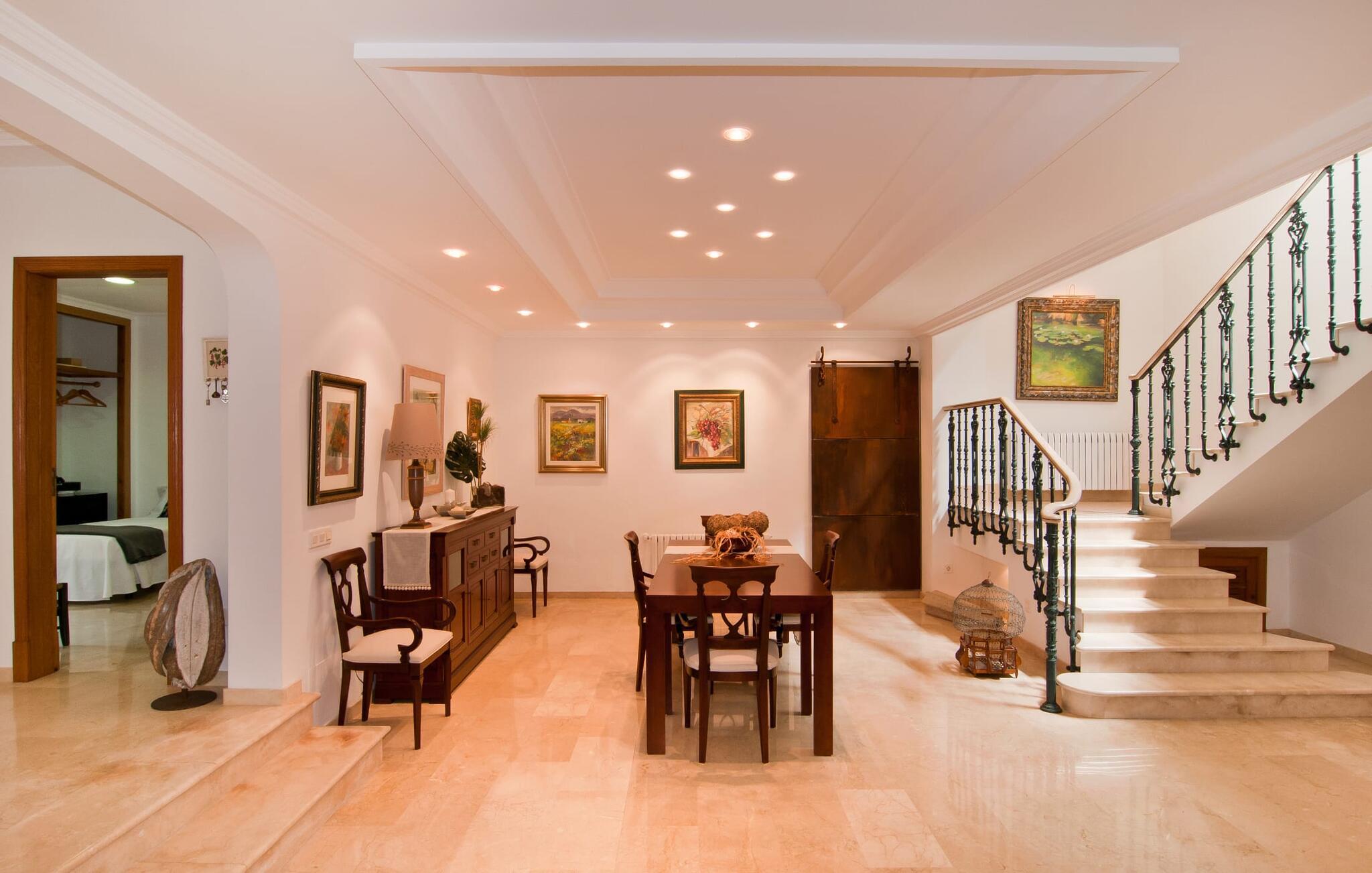Den smukke finca "Can Gual", på kanten af Inca, kombinerer problemfrit urban flair med natur. Den fantastiske pool med separat børneområde og frodige haver skaber en privat oase. Indenfor byder den moderne og stilfulde villa på en stor stue med højglans sandstensfliser, hvide vægge og hyggelige antikke møbler, der skaber en varm stemning. Det veludstyrede køkken og spiseplads er perfekte til selvforplejning og tilbyder moderne bekvemmeligheder til et behageligt ophold. Villaen byder på fire rummelige soveværelser, hver harmonisk designet og udstyret med ekstra møbler. En lys trappe fører til en øvre balkon med udsigt over den rolige have, hvilket sikrer et roligt tilflugtssted i hjertet af byen. Nyd aftenen med at grille friske råvarer fra lokale markeder i disse idylliske omgivelser. Der er kun 1000 m til det berømte ugentlige marked, der finder sted om torsdagen i Inca. Den centrale beliggenhed betyder, at I meget hurtigt kan nå de andre byer og seværdigheder på øen. De smukke strande, herunder i Alcúdia-bugten, ligger ca. 20 km væk - det er afstande, der kan tilbagelægges med lejebil. Den valgfri brug af varmen skal betales kontant på stedet. Bemærk venligst, at denne ejendom ikke accepterer ungdomsgrupper eller polterabender. En ungdomsgruppe på denne ejendom består af personer under 30 år. Book ikke denne ejendom, hvis I er en ungdomsgruppe eller polterabend, da jeres reservation vil blive afvist, når den er booket, hvilket kan være ved ankomsten til ejendommen eller under jeres ophold, og I vil ikke modtage en refusion.