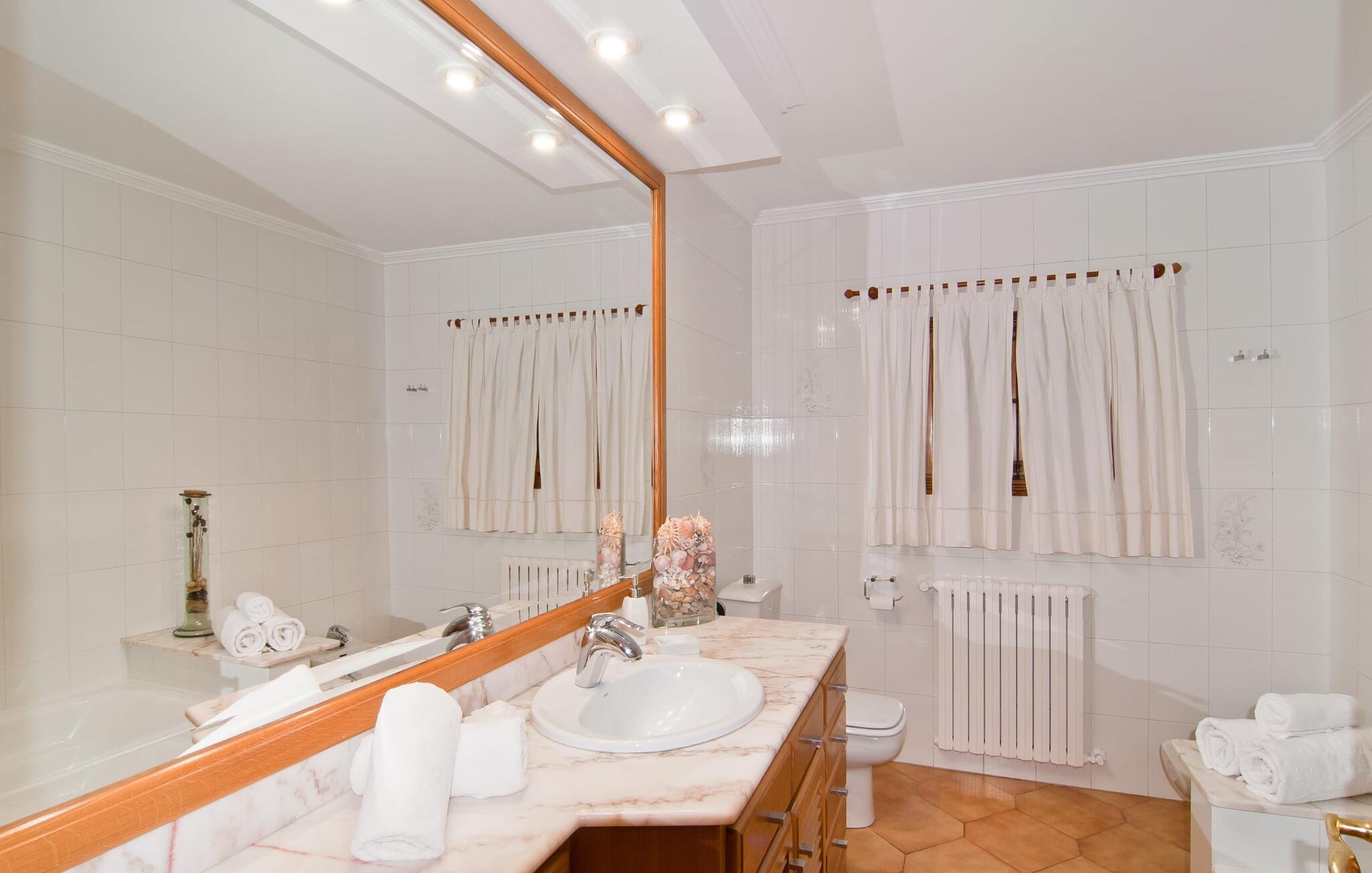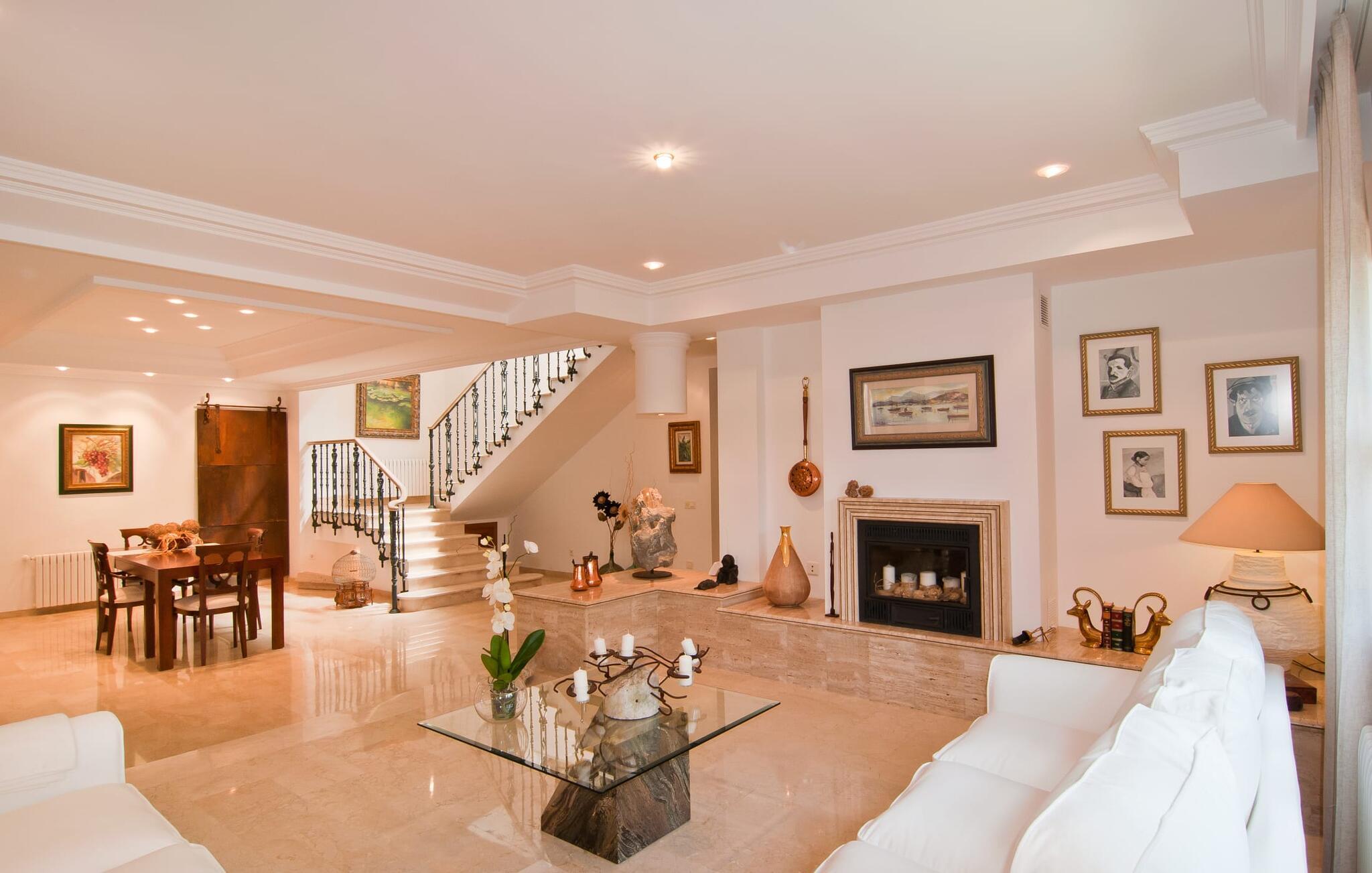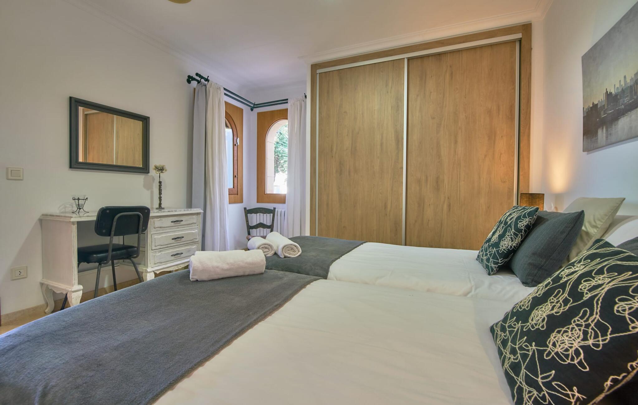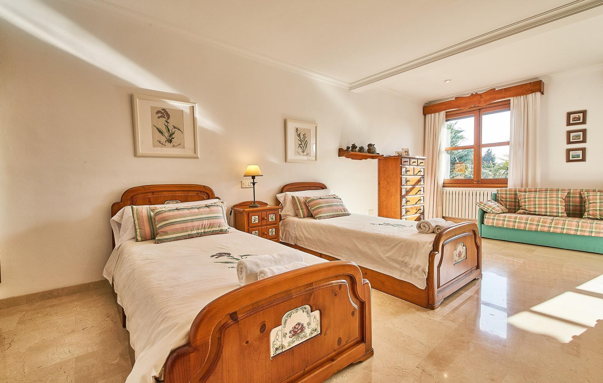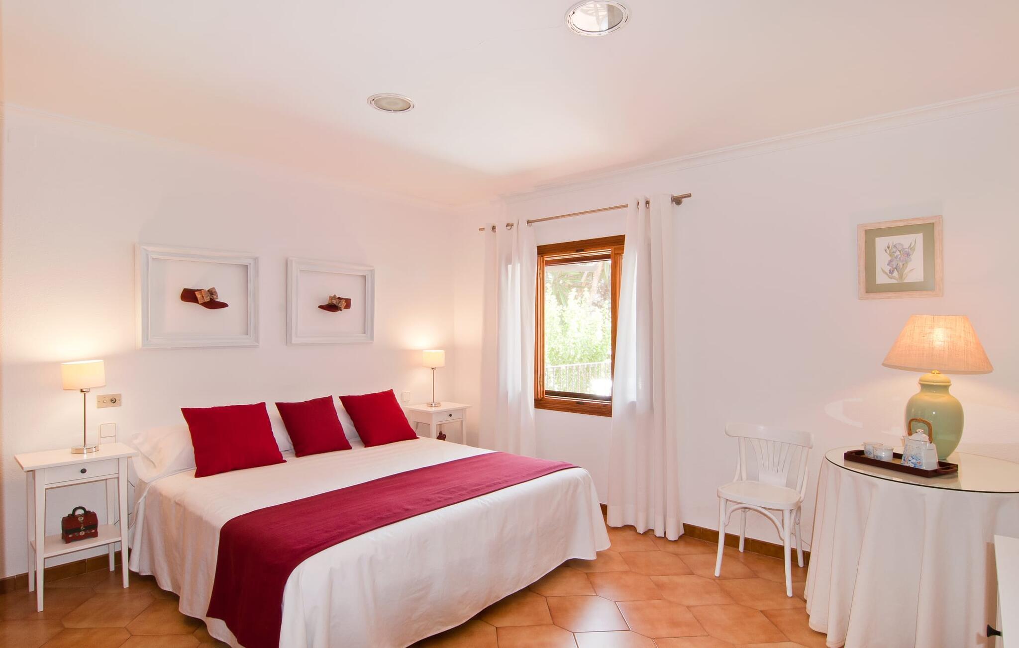 Den smukke finca "Can Gual", på kanten af Inca, kombinerer problemfrit urban flair med natur. Den fantastiske pool med separat børneområde og frodige haver skaber en privat oase. Indenfor byder den moderne og stilfulde villa på en stor stue med højglans sandstensfliser, hvide vægge og hyggelige antikke møbler, der skaber en varm stemning. Det veludstyrede køkken og spiseplads er perfekte til selvforplejning og tilbyder moderne bekvemmeligheder til et behageligt ophold. Villaen byder på fire rummelige soveværelser, hver harmonisk designet og udstyret med ekstra møbler. En lys trappe fører til en øvre balkon med udsigt over den rolige have, hvilket sikrer et roligt tilflugtssted i hjertet af byen. Nyd aftenen med at grille friske råvarer fra lokale markeder i disse idylliske omgivelser. Der er kun 1000 m til det berømte ugentlige marked, der finder sted om torsdagen i Inca. Den centrale beliggenhed betyder, at I meget hurtigt kan nå de andre byer og seværdigheder på øen. De smukke strande, herunder i Alcúdia-bugten, ligger ca. 20 km væk - det er afstande, der kan tilbagelægges med lejebil. Den valgfri brug af varmen skal betales kontant på stedet. Bemærk venligst, at denne ejendom ikke accepterer ungdomsgrupper eller polterabender. En ungdomsgruppe på denne ejendom består af personer under 30 år. Book ikke denne ejendom, hvis I er en ungdomsgruppe eller polterabend, da jeres reservation vil blive afvist, når den er booket, hvilket kan være ved ankomsten til ejendommen eller under jeres ophold, og I vil ikke modtage en refusion.