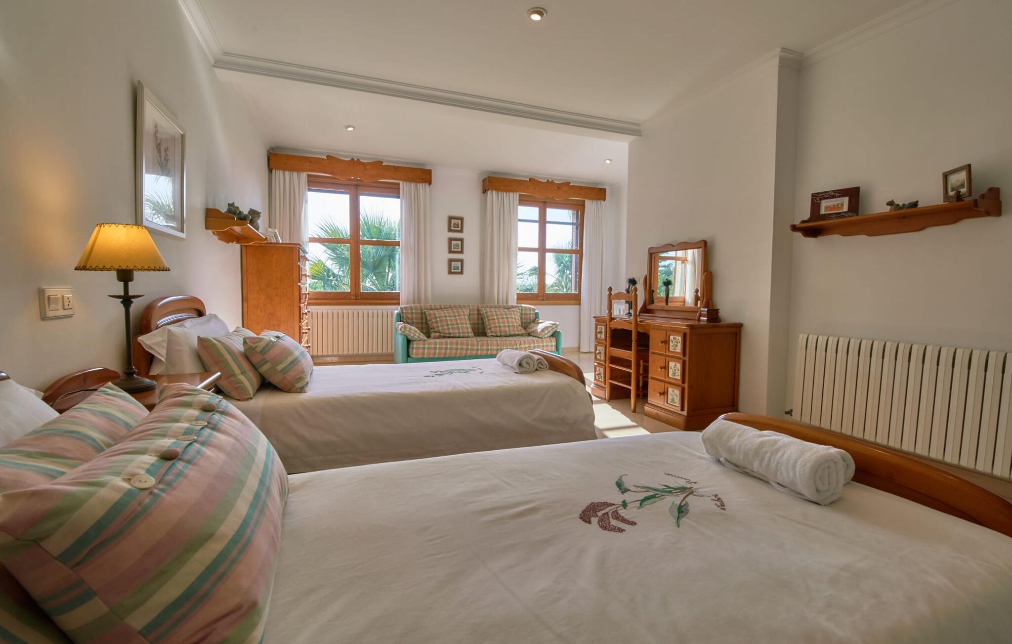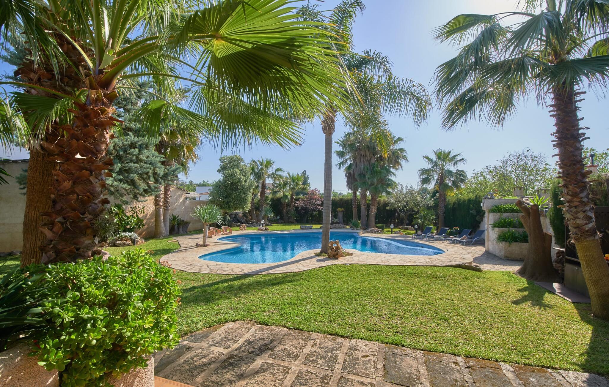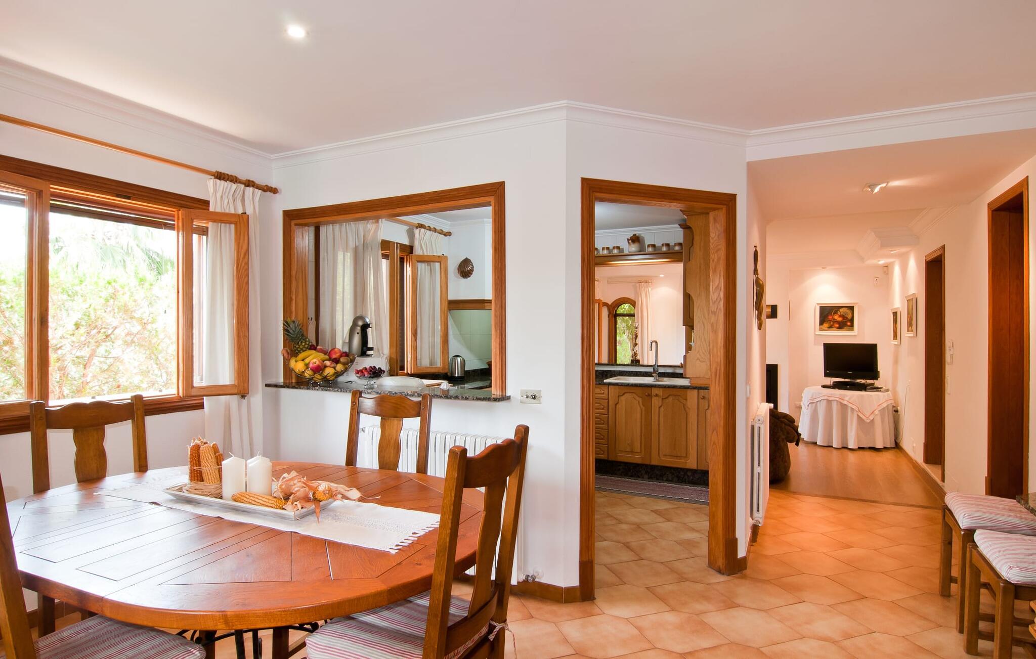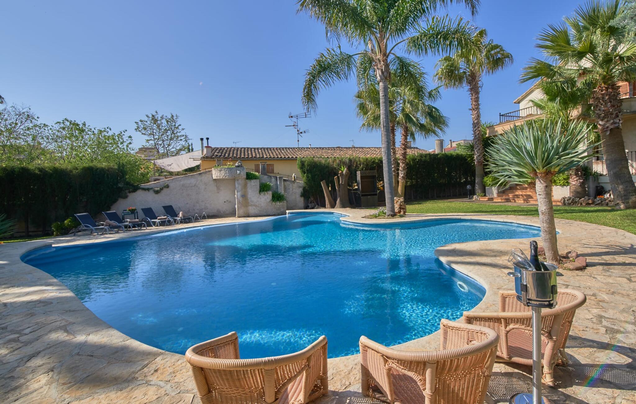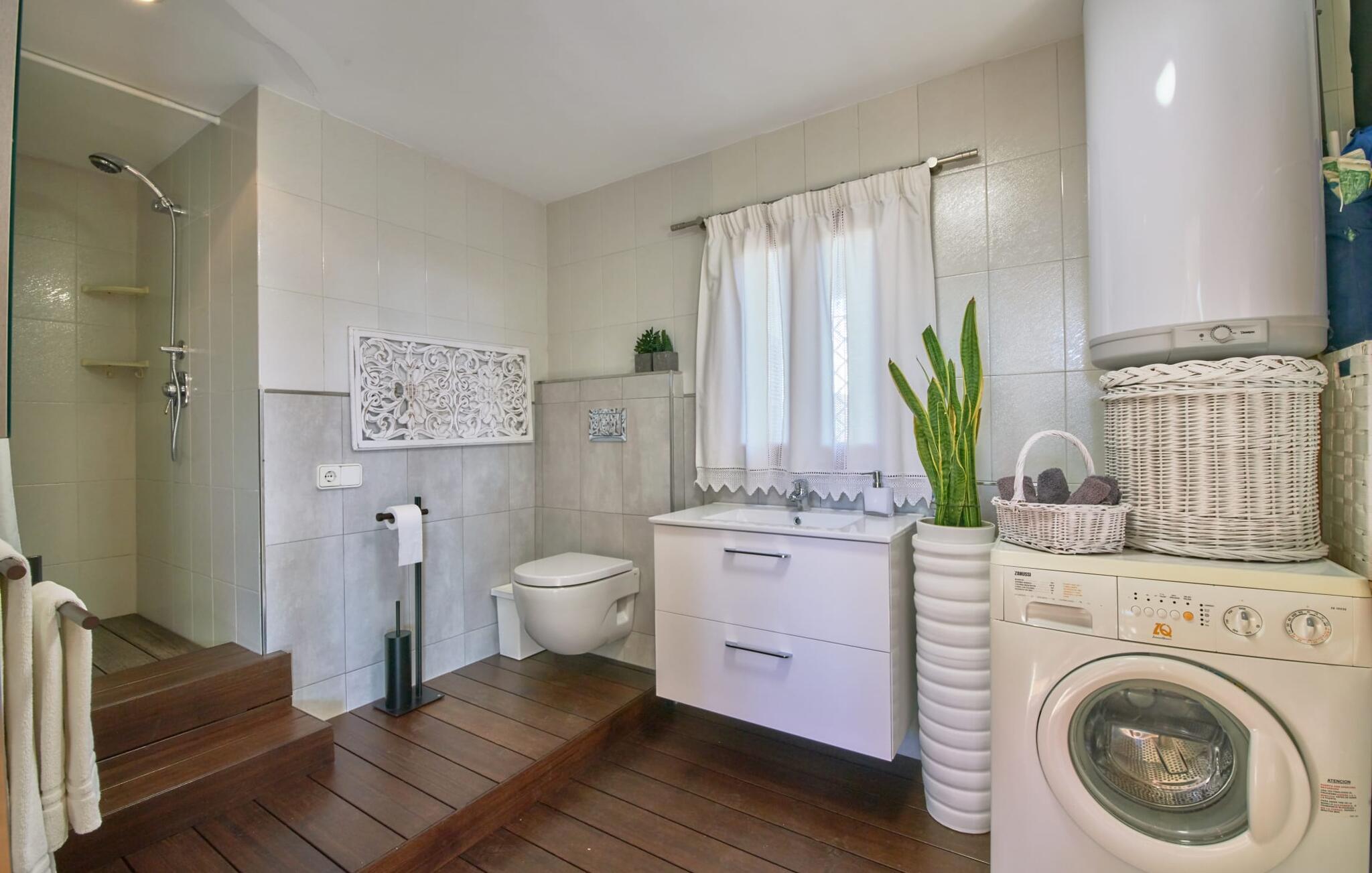 Den smukke finca "Can Gual", på kanten af Inca, kombinerer problemfrit urban flair med natur. Den fantastiske pool med separat børneområde og frodige haver skaber en privat oase. Indenfor byder den moderne og stilfulde villa på en stor stue med højglans sandstensfliser, hvide vægge og hyggelige antikke møbler, der skaber en varm stemning. Det veludstyrede køkken og spiseplads er perfekte til selvforplejning og tilbyder moderne bekvemmeligheder til et behageligt ophold. Villaen byder på fire rummelige soveværelser, hver harmonisk designet og udstyret med ekstra møbler. En lys trappe fører til en øvre balkon med udsigt over den rolige have, hvilket sikrer et roligt tilflugtssted i hjertet af byen. Nyd aftenen med at grille friske råvarer fra lokale markeder i disse idylliske omgivelser. Der er kun 1000 m til det berømte ugentlige marked, der finder sted om torsdagen i Inca. Den centrale beliggenhed betyder, at I meget hurtigt kan nå de andre byer og seværdigheder på øen. De smukke strande, herunder i Alcúdia-bugten, ligger ca. 20 km væk - det er afstande, der kan tilbagelægges med lejebil. Den valgfri brug af varmen skal betales kontant på stedet. Bemærk venligst, at denne ejendom ikke accepterer ungdomsgrupper eller polterabender. En ungdomsgruppe på denne ejendom består af personer under 30 år. Book ikke denne ejendom, hvis I er en ungdomsgruppe eller polterabend, da jeres reservation vil blive afvist, når den er booket, hvilket kan være ved ankomsten til ejendommen eller under jeres ophold, og I vil ikke modtage en refusion.