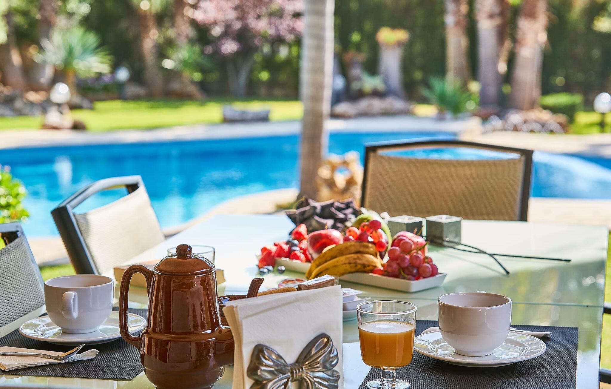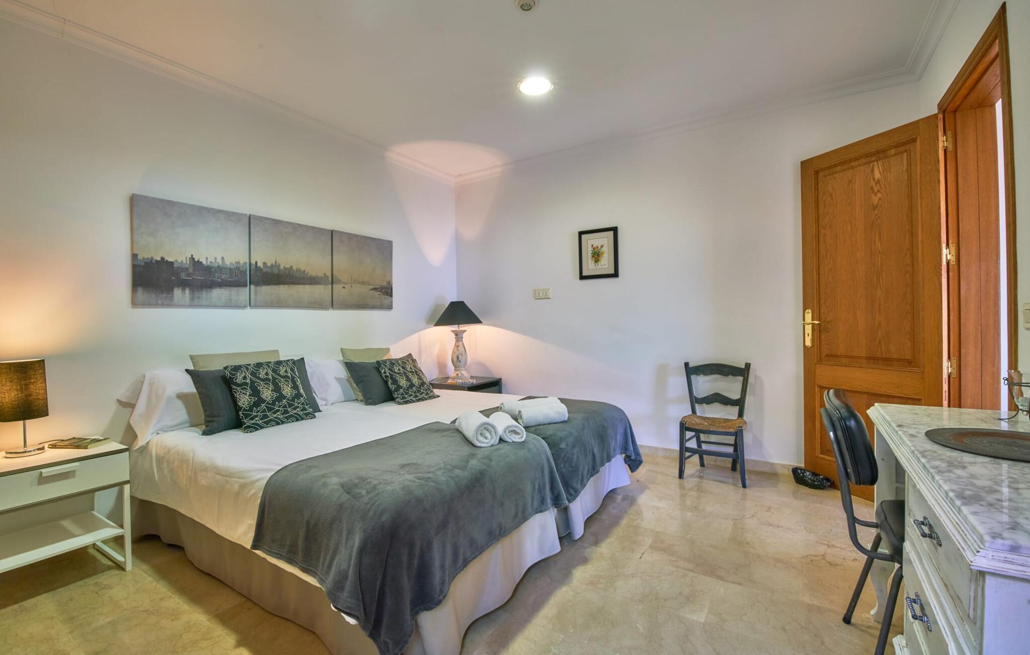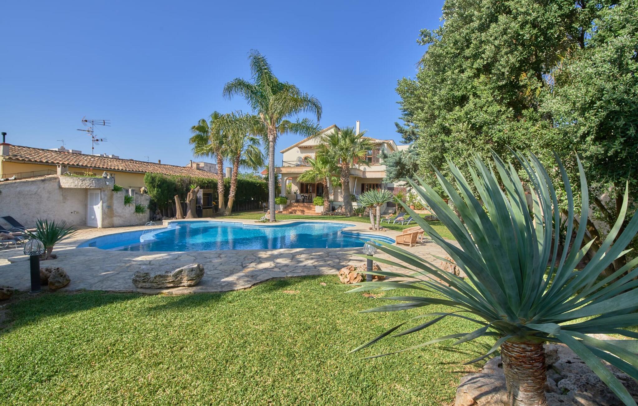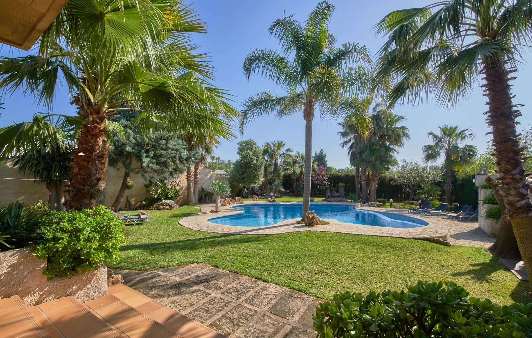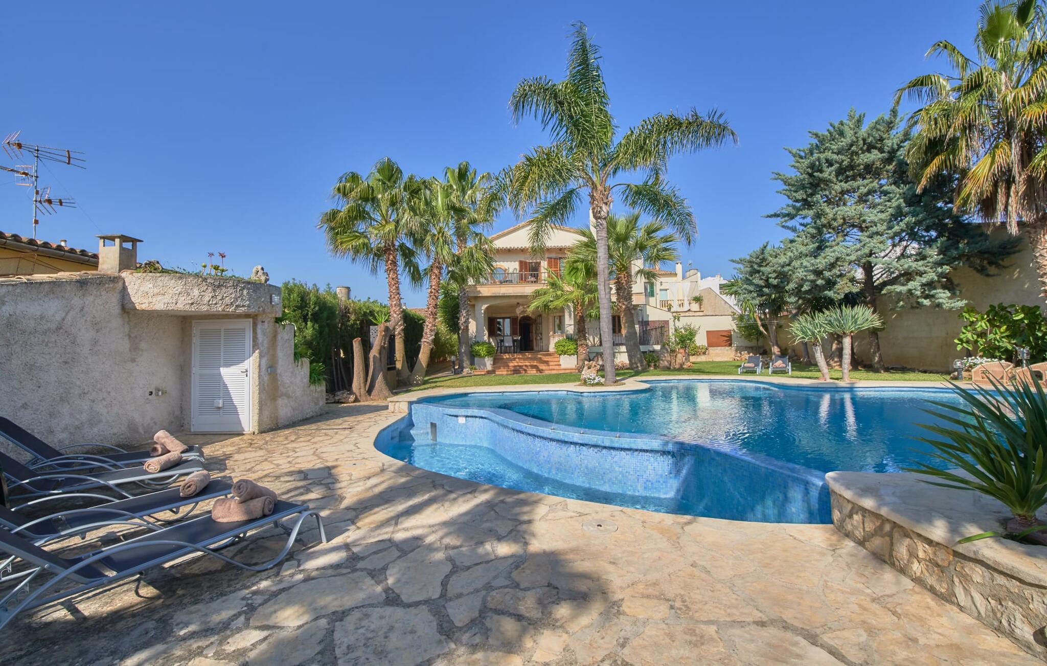 Den smukke finca "Can Gual", på kanten af Inca, kombinerer problemfrit urban flair med natur. Den fantastiske pool med separat børneområde og frodige haver skaber en privat oase. Indenfor byder den moderne og stilfulde villa på en stor stue med højglans sandstensfliser, hvide vægge og hyggelige antikke møbler, der skaber en varm stemning. Det veludstyrede køkken og spiseplads er perfekte til selvforplejning og tilbyder moderne bekvemmeligheder til et behageligt ophold. Villaen byder på fire rummelige soveværelser, hver harmonisk designet og udstyret med ekstra møbler. En lys trappe fører til en øvre balkon med udsigt over den rolige have, hvilket sikrer et roligt tilflugtssted i hjertet af byen. Nyd aftenen med at grille friske råvarer fra lokale markeder i disse idylliske omgivelser. Der er kun 1000 m til det berømte ugentlige marked, der finder sted om torsdagen i Inca. Den centrale beliggenhed betyder, at I meget hurtigt kan nå de andre byer og seværdigheder på øen. De smukke strande, herunder i Alcúdia-bugten, ligger ca. 20 km væk - det er afstande, der kan tilbagelægges med lejebil. Den valgfri brug af varmen skal betales kontant på stedet. Bemærk venligst, at denne ejendom ikke accepterer ungdomsgrupper eller polterabender. En ungdomsgruppe på denne ejendom består af personer under 30 år. Book ikke denne ejendom, hvis I er en ungdomsgruppe eller polterabend, da jeres reservation vil blive afvist, når den er booket, hvilket kan være ved ankomsten til ejendommen eller under jeres ophold, og I vil ikke modtage en refusion.