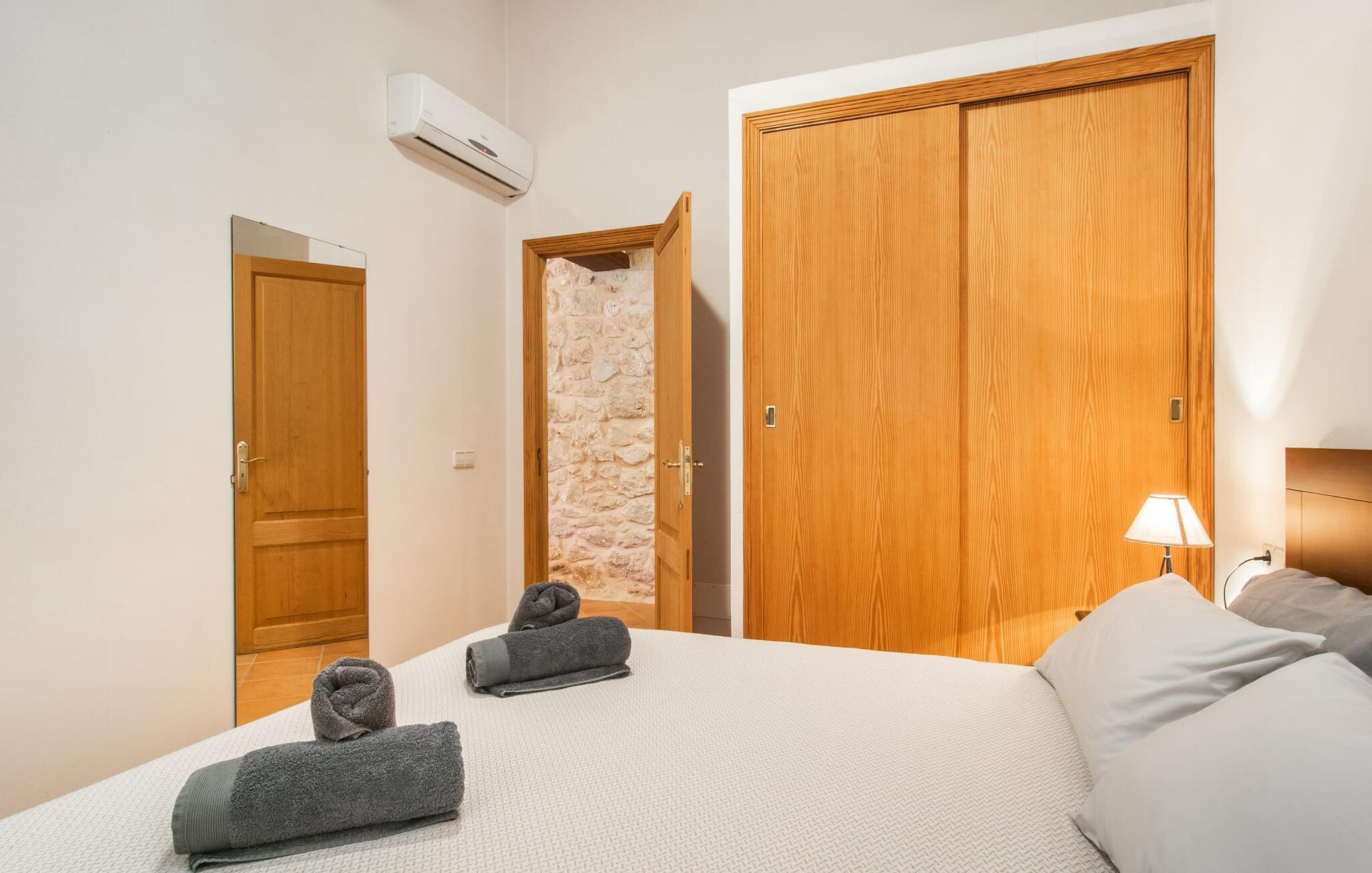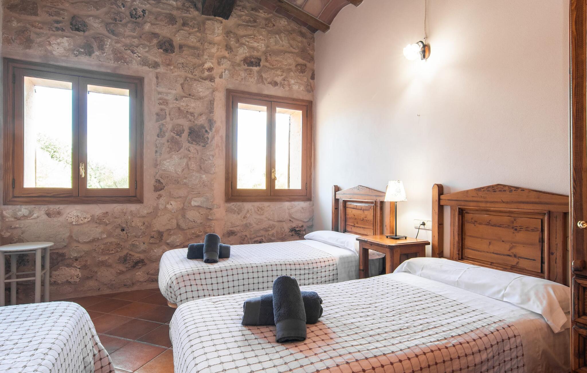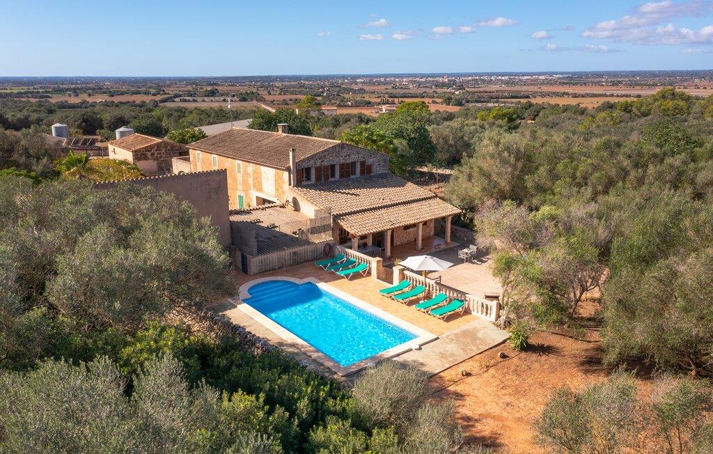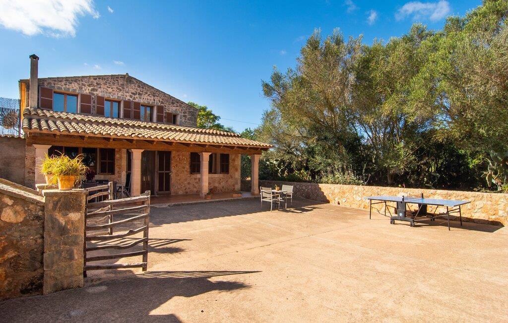 Can Guillem-gården nær Campos i det landlige sydlige Mallorca er en ideel indkvarteringsmulighed for grupper på op til seks personer, hvilket gør den velegnet til både venner og familier, der rejser sammen. Ejendommen har et rummeligt udendørsområde med forskellige faciliteter, herunder overdækkede og solrige terrasser, en grillplads til al fresco spisning og et bordtennisbord til fritidsaktiviteter. En stentrappe fører til en forhøjet pool, der giver en forfriskende flugt på varme dage og tilbyder en betagende udsigt over det omkringliggende middelhavslandskab. Stuehuset er designet i en hyggelig, rustik æstetik og har klinkegulve, naturstensvægge og træaccenter, der skaber en indbydende atmosfære året rundt. Indvendigt byder stueetagen på opholds- og spisestue med komfortable siddepladser og et veludstyret køkken med åben grundplan. Indkvarteringen består af tre smagfuldt indrettede soveværelser og to badeværelser, begge med badekar, fordelt på stueetagen og de øverste etager. Der er også en praktisk parkeringsplads til en lejebil ved huset. Can Guillem-gården ligger på en stor, landlig ejendom i det sydlige Mallorca med tilstødende dyr som køer, hunde, katte, haner og høns. Butikker og restauranter findes i Campos, kun ca. 5,6 km til Cala Sa Nau. 23,3 km væk med lejebil. El, aircondition og varme er inkluderet i lejeprisen, hvis forbruget er rimeligt. I det sjældne tilfælde, at dette beløb overskrides, vil I blive bedt om at indbetale penge til enheden.