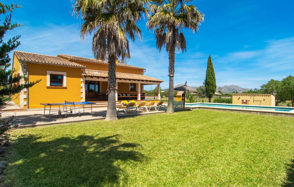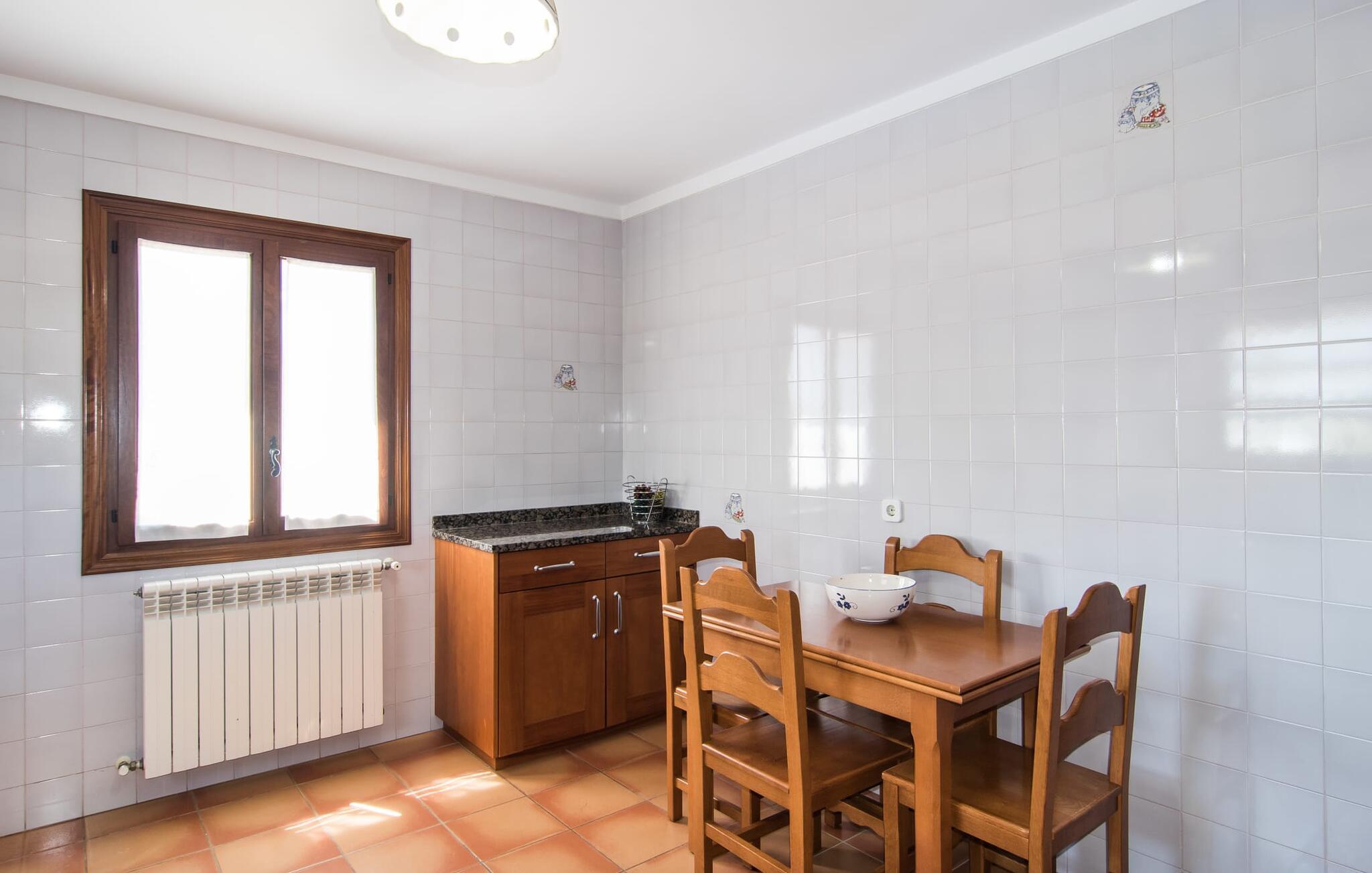 "Can Jaume Pollenca" byder på traditionel mallorcansk charme i spektakulære omgivelser, med en betagende udsigt over Tramuntana-bjergene og nem adgang til øens bedste strande. Selvom villaen er enklere end nogle moderne modstykker, gør dens landlige charme og beliggenhed med fire parkeringspladser den til et unikt valg for at udforske regionen. Nyd poolen, spil bordtennis eller slap af i palmernes skygge. Den overdækkede terrasse og grillplads er det perfekte sted at slappe af og nyde udendørs spisning. Indenfor giver det veludstyrede køkken mulighed for nem selvforplejning, og den hyggelige opholdsstue med tv og bibliotek sikrer, at alle kan slappe af i komfort. Villaen har tre soveværelser og to badeværelser (et en-suite), udstyret med robuste træmøbler, der forstærker den rustikke charme. Dobbeltsengen er 1,8 x 2 m, mens enkeltsengene er 1,9 m lange, hvilket giver afslappende komfort for alle. Strategisk beliggende i et meget roligt og rummeligt boligområde: Den legende "Can Jaume Pollenca" byder på ideelle indkøbs- og fritidsaktiviteter på de smukkeste steder på den nordlige del af øen. Uanset om I besøger Alcúdias middelaldergader og imponerende bymure eller Port de Pollença med dens berømte promenade, børnevenlige svømning og to strande, er det kun et spørgsmål om tid, før I hopper på cyklerne, snører vandrestøvlerne eller begiver jer ud. for en tur, tag en tur langs de vidunderligt buede gader. Serra de Tramuntana, Formentor, Santuari de Lluc og Sa Calobra venter på jer! Aircondition i ejendommen er inkluderet i prisen, men dets brug er begrænset mellem kl. 21.00 og 06.00.