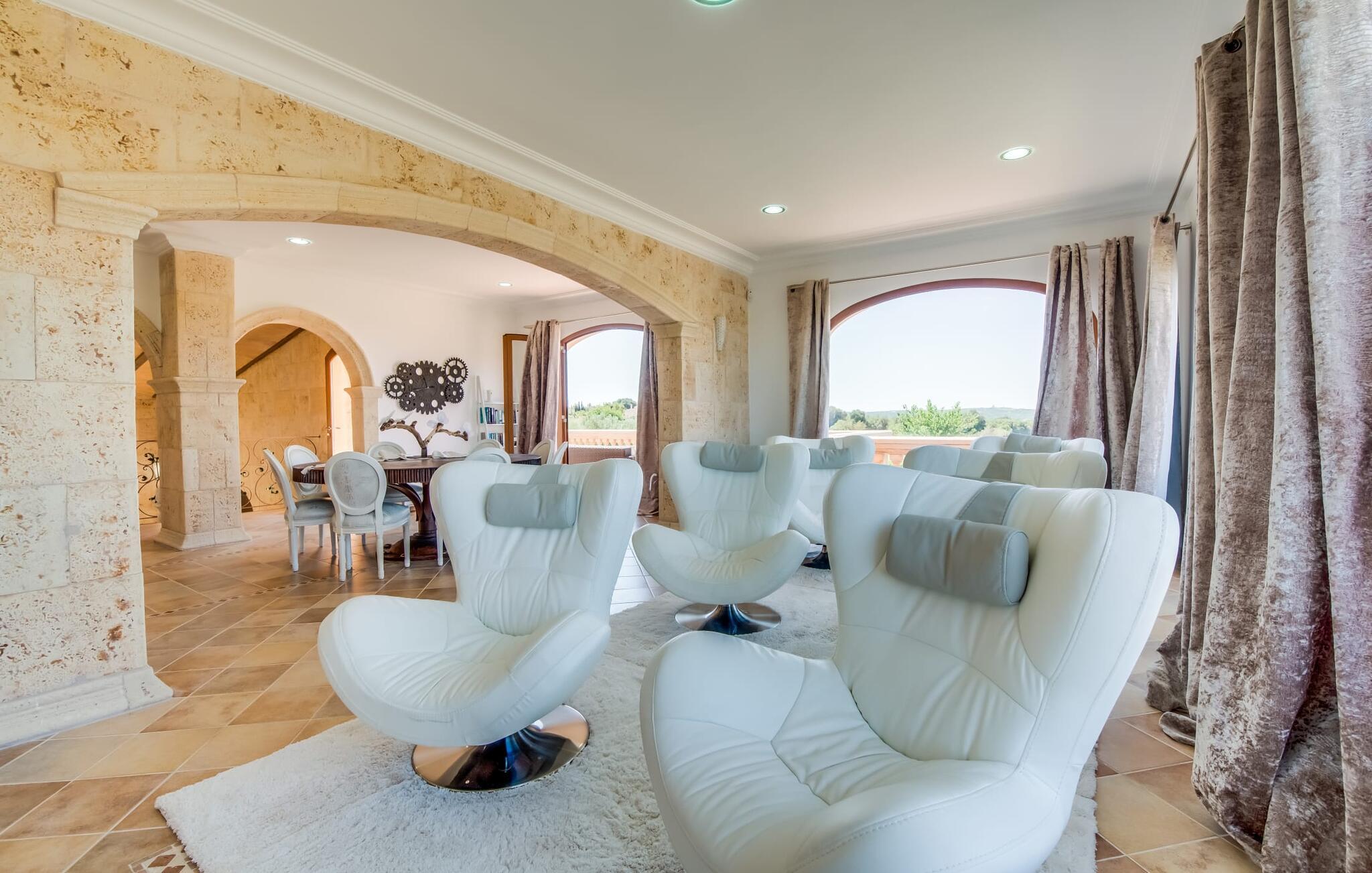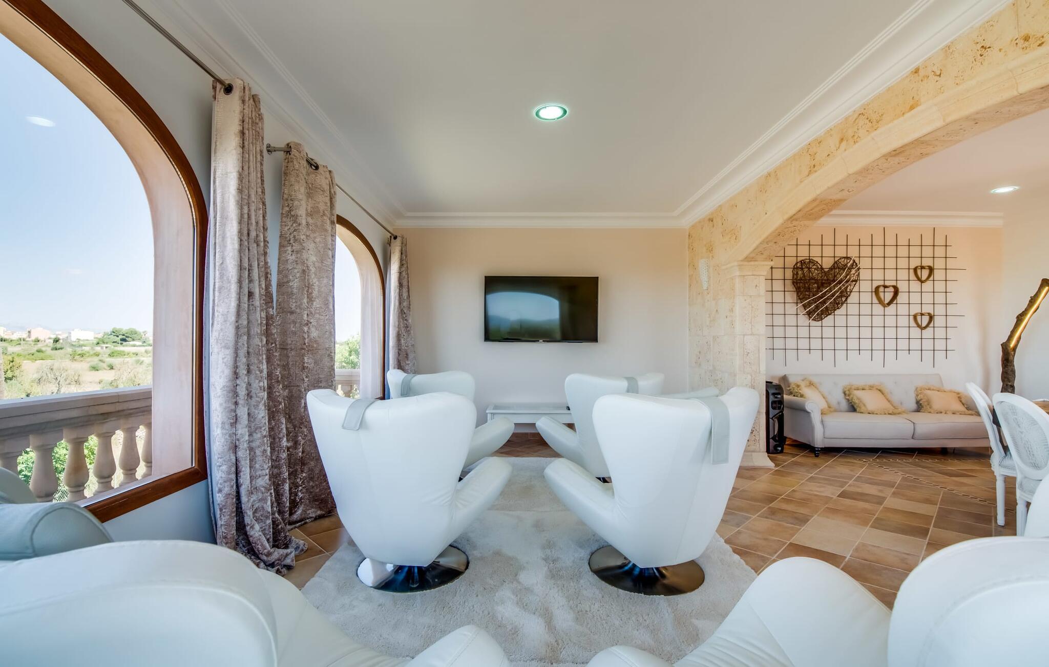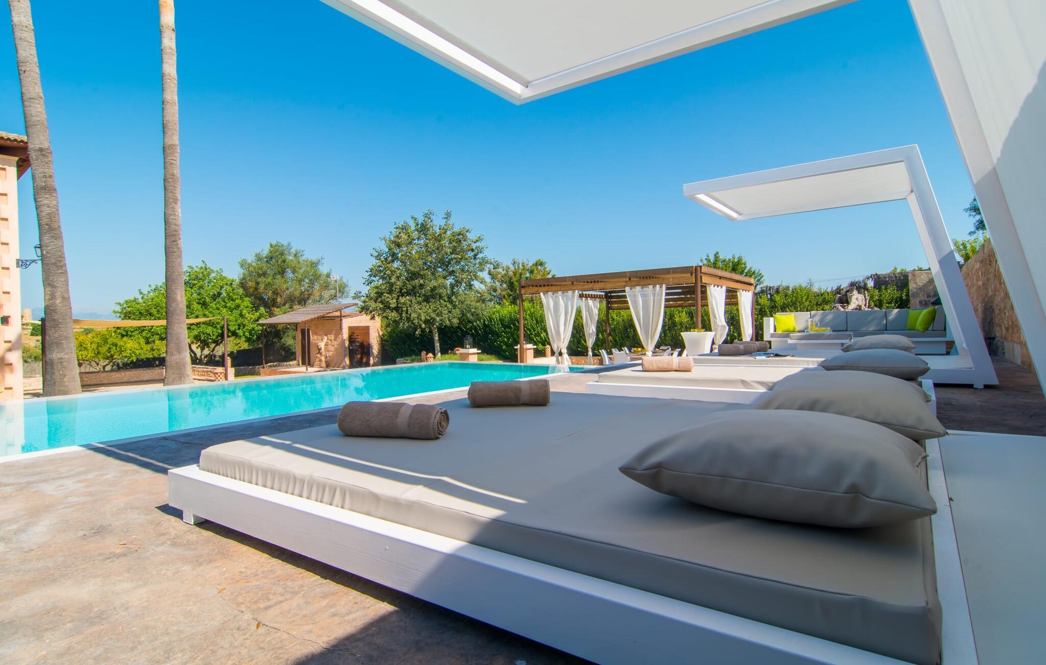 Dine venner og familie vil sikkert være grønne af misundelse, når I vender hjem efter en ferie i den skønne villa Can Lau – og det med rette! Juvelen er bestemt et syn værd at se; Haven omgivet af duftende appelsintræer og det omkringliggende landskab alene er bestemt en tur værd. Komfortable og moderne indrettede afslapningsområder er spredt ud over hele udendørsområdet - altid med den bedste udsigt til den skønne pool, som imponerer med en forbløffende længde på 15 m og en bredde på 5 m. En udendørs bruser og et udendørs toilet fuldender det hele. og spabadet, der er opvarmet fra midten af september til april, er en fantastisk udendørs ekstra. Plænen er simpelthen "ved siden af" - børn kan prøve alt på den: bordtennis, fodboldbaner, plads til at løbe rundt - det hele er der! Tag et forklæde på og kom til grillen - det er mottoet for rigtige grillfester lige på den overdækkede terrasse (du kan endda vælge den grill, I ønsker, ejendommen har to af dem!) - det ugentlige marked i Santa Margalida skal have alt I har brug for, når det kommer til ingredienser. Og hvis den smukke udsigt over landskabet og bjergene nedefra ikke er nok, kan I blot klatre op på den skønne solterrasse på første sal. Også her giver møbler af høj kvalitet plads nok til at slentre, slappe af og nyde en velfortjent pause. Som BBQ-fan vil I få noget for pengene med de to tilgængelige BBQ-stationer (gas og kul). Tre HiFi-systemer med USB-porte - et ved poolen og et på terrassen ved siden af køkkenet - giver den rette baggrundsmusik til jeres personlige lykkeøjeblikke udendørs. Ikke desto mindre er "Can Lau" en finca for afslapning - fester eller lignende arrangementer er udtrykkeligt ikke tilladt her. Fantastisk ekstra: Ejeren giver sine gæster en digital, QR-kodelæsbar manual med masser af tips om luksusrestauranter og smukke aktiviteter på øen. Og der er mere - I troede, "Kan Lau" havde en smuk have? Bare vent og se, hvad der åbenbarer sig for jer, så snart I træder ind i villaen: ren luksus venter jer i to etager og et boligareal på 500 m². Alle værelser er udstyret med aircondition og radiatorer, så I kan opnå den mest behagelige temperatur for jer på ethvert tidspunkt af året. Den indbydende salon tager jer direkte ind i den strålende opholdsstue - et moderne sofasæt og et fuldt udstyret underholdningssystem med dvd- og cd-afspiller, internet- og Netflix-adgang samt en dockingstation til jeres iPod gør det til et behageligt sted at blive hængende. I samme rum er der et kæmpe spisebord med plads nok til alle gæster - det kunne være kommet direkte fra et indretningsmagasin. Store buede vinduer garanterer lysstyrke og velvære. Det stilfulde køkken er helt jeres med komfur og indbyggede hvidevarer, der sikkert ville forbløffe selv stjernekokke - lad jeres kreativitet løbe løbsk og prøv en original mallorcansk opskrift! De fire dobbeltværelser i hvid stil og de tre førsteklasses badeværelser med brusekabine (to af dem en-suite) er fordelt på alle etager. Har I nogensinde haft fornøjelsen af at eje et fitnesscenter? INGEN? Så vil I helt sikkert kunne lide dette højdepunkt. Det giver jer plads nok og det rigtige sportsudstyr til jeres fysiske kondition. Bagefter kan I nyde en kølig forfriskende drink på terrassen eller bruge underholdningscentret ovenpå med de komfortable fløjstole, lige som I har lyst. Takket være husets alarmsystem - praktisk at betjene med en nøgle, som I modtager ved ankomsten - kan I altid føle jer meget tryg. Der er ingen tvivl om, at I allerede svæver på ferieskyer med denne villa, men hvis I nogensinde har lyst til en forandring, så tag til den nærmeste by: I kan nå Santa Margalida på ingen tid via Ma -3340, som er inden for hørevidde . Talrige gadecaféer, fantastiske restauranter og barer samt en eller to butikker vil med garanti forsøde jeres besøg. Sightseeing-hotspots som begravelsespladsen Son Real eller de gamle udsigtstårne langs kysten lover fascinerende indsigt i historien om øens centrum. Entusiastiske amatørornitologer vil helt sikkert nyde noget interessant fuglekiggeri i det nærliggende S'Albufera de Mallorca naturreservat. Can Picafort og Son Serra de Marina tilbyder også maleriske strande, kun omkring 10 km væk. Denne vidunderlige ejendom er beliggende på den nordlige del af øen, kun få minutters kørsel fra Can Picafort og Alcúdia med sine smukke bugter. I kan nemt nå nærliggende Santa Margalida og byens hotspots som barer, restauranter, caféer og turistattraktioner til fods - I vil helt sikkert nyde gåturen gennem det maleriske landskab! Bemærk venligst, at denne ejendom ikke accepterer ungdomsgrupper eller polterabender. En ungdomsgruppe på denne ejendom består af personer under 30 år. Book ikke denne ejendom, hvis I er en ungdomsgruppe eller en polterabendgruppe, da jeres reservation vil blive afvist, når den er booket, hvilket også kan være tilfældet ved ankomst til ejendommen eller under jeres ophold, og I vil ikke modtage en refusion.