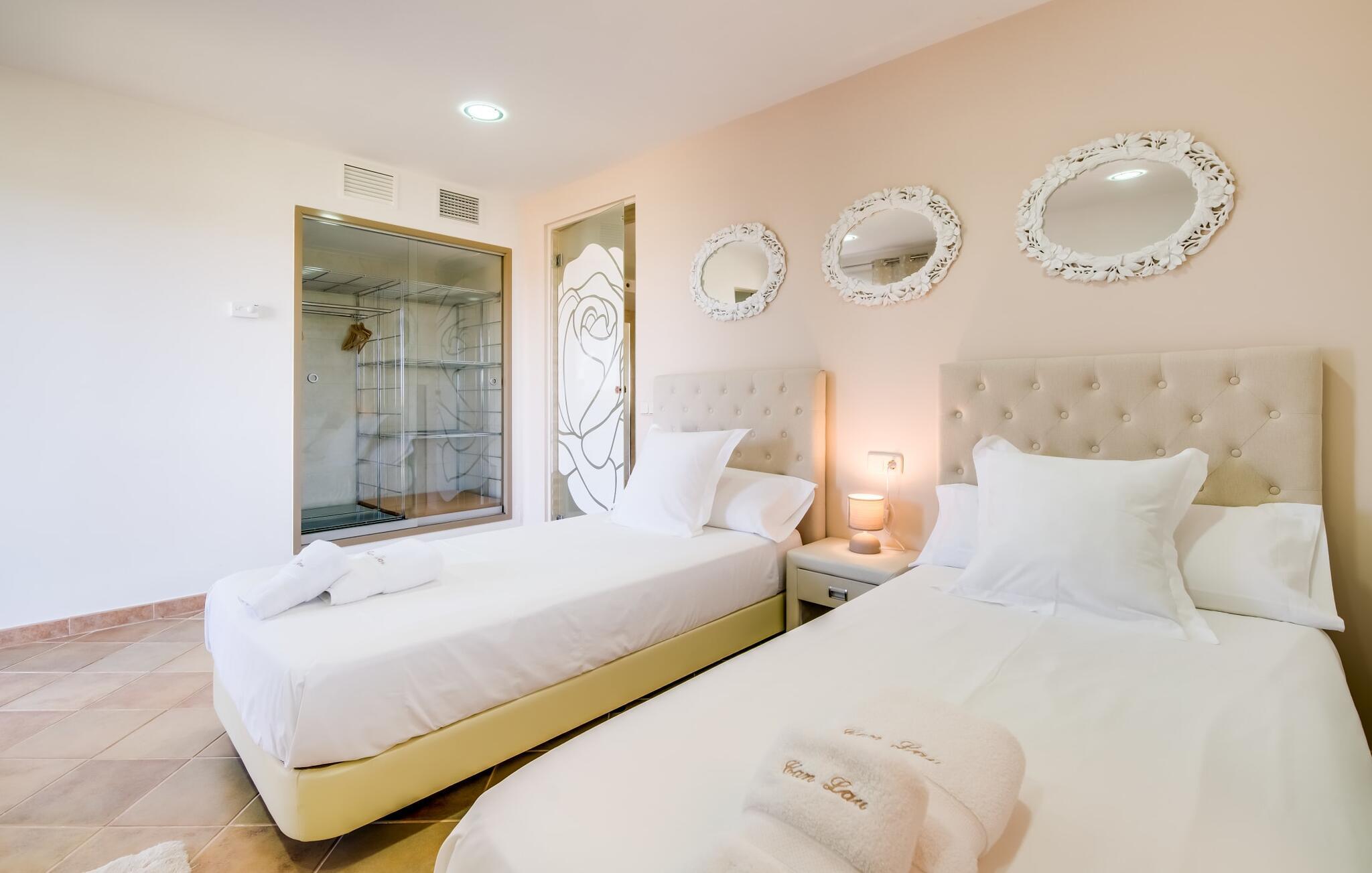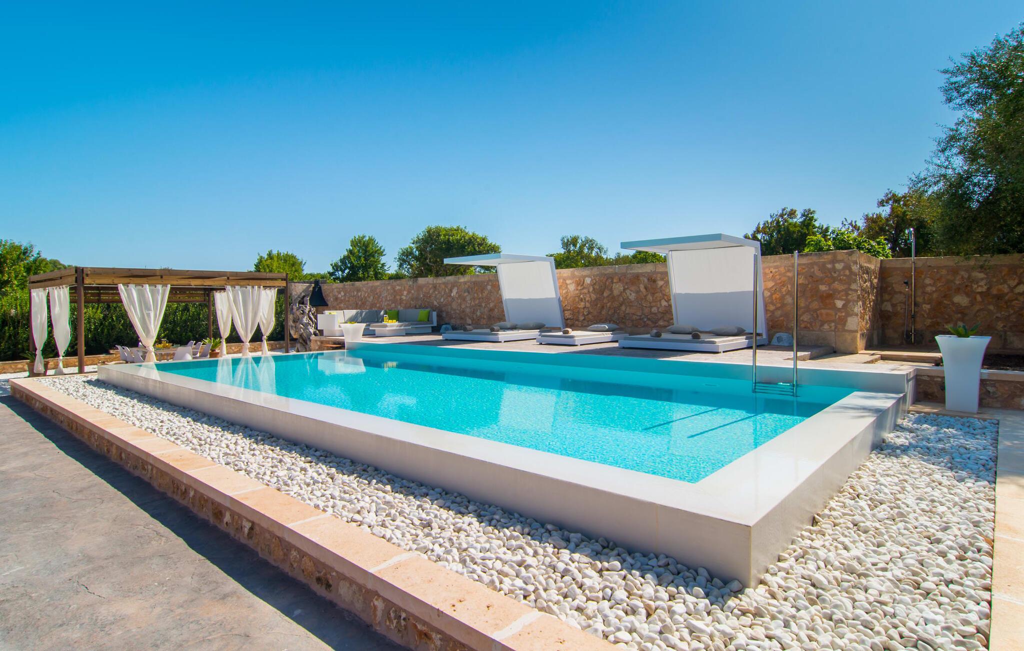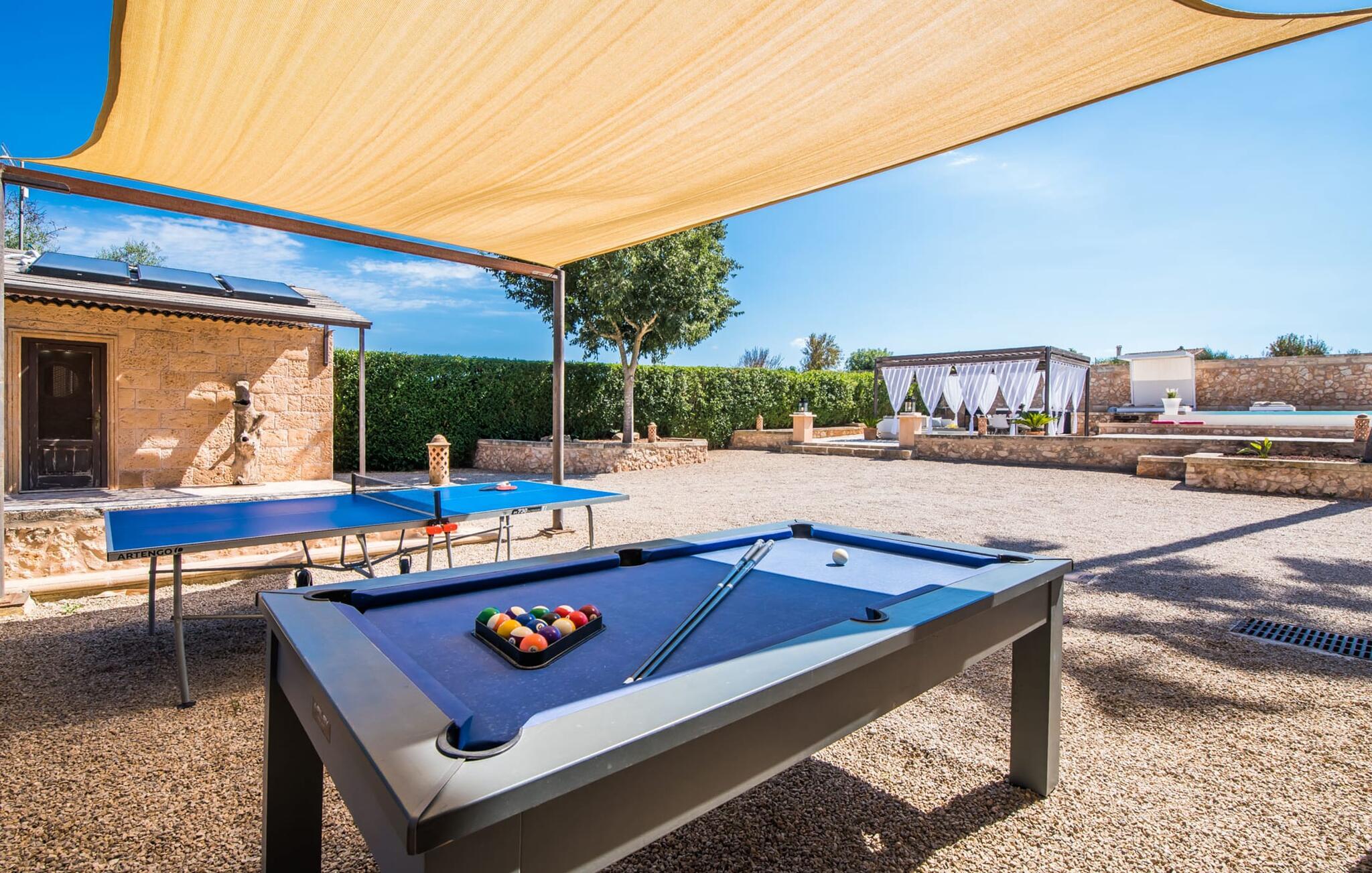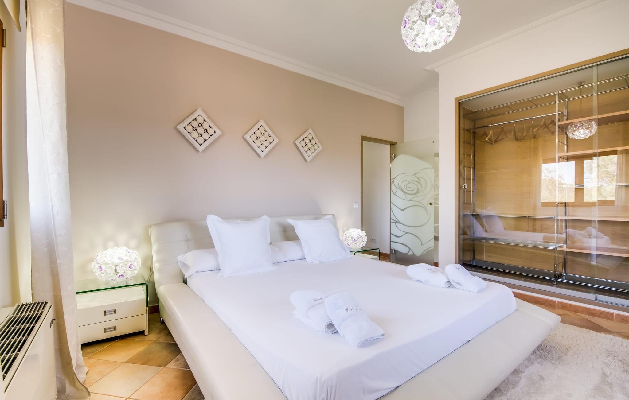 Dine venner og familie vil sikkert være grønne af misundelse, når I vender hjem efter en ferie i den skønne villa Can Lau – og det med rette! Juvelen er bestemt et syn værd at se; Haven omgivet af duftende appelsintræer og det omkringliggende landskab alene er bestemt en tur værd. Komfortable og moderne indrettede afslapningsområder er spredt ud over hele udendørsområdet - altid med den bedste udsigt til den skønne pool, som imponerer med en forbløffende længde på 15 m og en bredde på 5 m. En udendørs bruser og et udendørs toilet fuldender det hele. og spabadet, der er opvarmet fra midten af september til april, er en fantastisk udendørs ekstra. Plænen er simpelthen "ved siden af" - børn kan prøve alt på den: bordtennis, fodboldbaner, plads til at løbe rundt - det hele er der! Tag et forklæde på og kom til grillen - det er mottoet for rigtige grillfester lige på den overdækkede terrasse (du kan endda vælge den grill, I ønsker, ejendommen har to af dem!) - det ugentlige marked i Santa Margalida skal have alt I har brug for, når det kommer til ingredienser. Og hvis den smukke udsigt over landskabet og bjergene nedefra ikke er nok, kan I blot klatre op på den skønne solterrasse på første sal. Også her giver møbler af høj kvalitet plads nok til at slentre, slappe af og nyde en velfortjent pause. Som BBQ-fan vil I få noget for pengene med de to tilgængelige BBQ-stationer (gas og kul). Tre HiFi-systemer med USB-porte - et ved poolen og et på terrassen ved siden af køkkenet - giver den rette baggrundsmusik til jeres personlige lykkeøjeblikke udendørs. Ikke desto mindre er "Can Lau" en finca for afslapning - fester eller lignende arrangementer er udtrykkeligt ikke tilladt her. Fantastisk ekstra: Ejeren giver sine gæster en digital, QR-kodelæsbar manual med masser af tips om luksusrestauranter og smukke aktiviteter på øen. Og der er mere - I troede, "Kan Lau" havde en smuk have? Bare vent og se, hvad der åbenbarer sig for jer, så snart I træder ind i villaen: ren luksus venter jer i to etager og et boligareal på 500 m². Alle værelser er udstyret med aircondition og radiatorer, så I kan opnå den mest behagelige temperatur for jer på ethvert tidspunkt af året. Den indbydende salon tager jer direkte ind i den strålende opholdsstue - et moderne sofasæt og et fuldt udstyret underholdningssystem med dvd- og cd-afspiller, internet- og Netflix-adgang samt en dockingstation til jeres iPod gør det til et behageligt sted at blive hængende. I samme rum er der et kæmpe spisebord med plads nok til alle gæster - det kunne være kommet direkte fra et indretningsmagasin. Store buede vinduer garanterer lysstyrke og velvære. Det stilfulde køkken er helt jeres med komfur og indbyggede hvidevarer, der sikkert ville forbløffe selv stjernekokke - lad jeres kreativitet løbe løbsk og prøv en original mallorcansk opskrift! De fire dobbeltværelser i hvid stil og de tre førsteklasses badeværelser med brusekabine (to af dem en-suite) er fordelt på alle etager. Har I nogensinde haft fornøjelsen af at eje et fitnesscenter? INGEN? Så vil I helt sikkert kunne lide dette højdepunkt. Det giver jer plads nok og det rigtige sportsudstyr til jeres fysiske kondition. Bagefter kan I nyde en kølig forfriskende drink på terrassen eller bruge underholdningscentret ovenpå med de komfortable fløjstole, lige som I har lyst. Takket være husets alarmsystem - praktisk at betjene med en nøgle, som I modtager ved ankomsten - kan I altid føle jer meget tryg. Der er ingen tvivl om, at I allerede svæver på ferieskyer med denne villa, men hvis I nogensinde har lyst til en forandring, så tag til den nærmeste by: I kan nå Santa Margalida på ingen tid via Ma -3340, som er inden for hørevidde . Talrige gadecaféer, fantastiske restauranter og barer samt en eller to butikker vil med garanti forsøde jeres besøg. Sightseeing-hotspots som begravelsespladsen Son Real eller de gamle udsigtstårne langs kysten lover fascinerende indsigt i historien om øens centrum. Entusiastiske amatørornitologer vil helt sikkert nyde noget interessant fuglekiggeri i det nærliggende S'Albufera de Mallorca naturreservat. Can Picafort og Son Serra de Marina tilbyder også maleriske strande, kun omkring 10 km væk. Denne vidunderlige ejendom er beliggende på den nordlige del af øen, kun få minutters kørsel fra Can Picafort og Alcúdia med sine smukke bugter. I kan nemt nå nærliggende Santa Margalida og byens hotspots som barer, restauranter, caféer og turistattraktioner til fods - I vil helt sikkert nyde gåturen gennem det maleriske landskab! Bemærk venligst, at denne ejendom ikke accepterer ungdomsgrupper eller polterabender. En ungdomsgruppe på denne ejendom består af personer under 30 år. Book ikke denne ejendom, hvis I er en ungdomsgruppe eller en polterabendgruppe, da jeres reservation vil blive afvist, når den er booket, hvilket også kan være tilfældet ved ankomst til ejendommen eller under jeres ophold, og I vil ikke modtage en refusion.