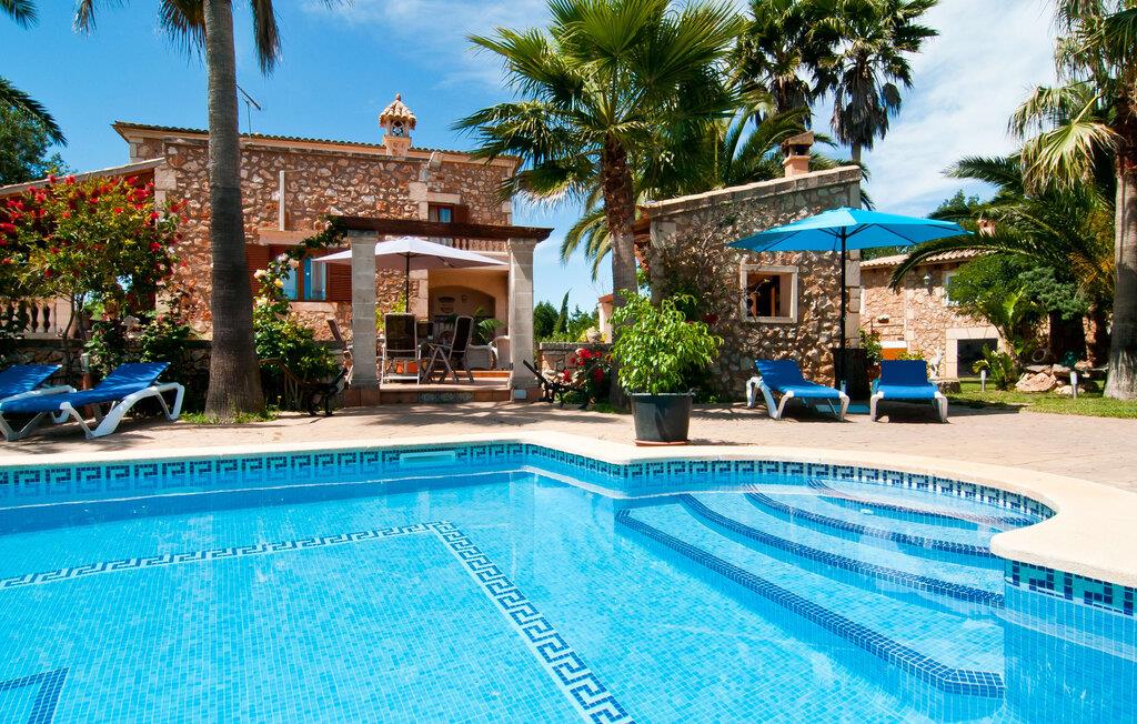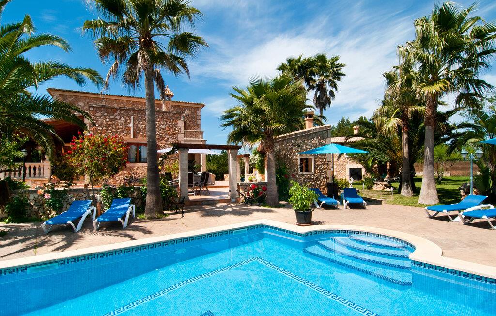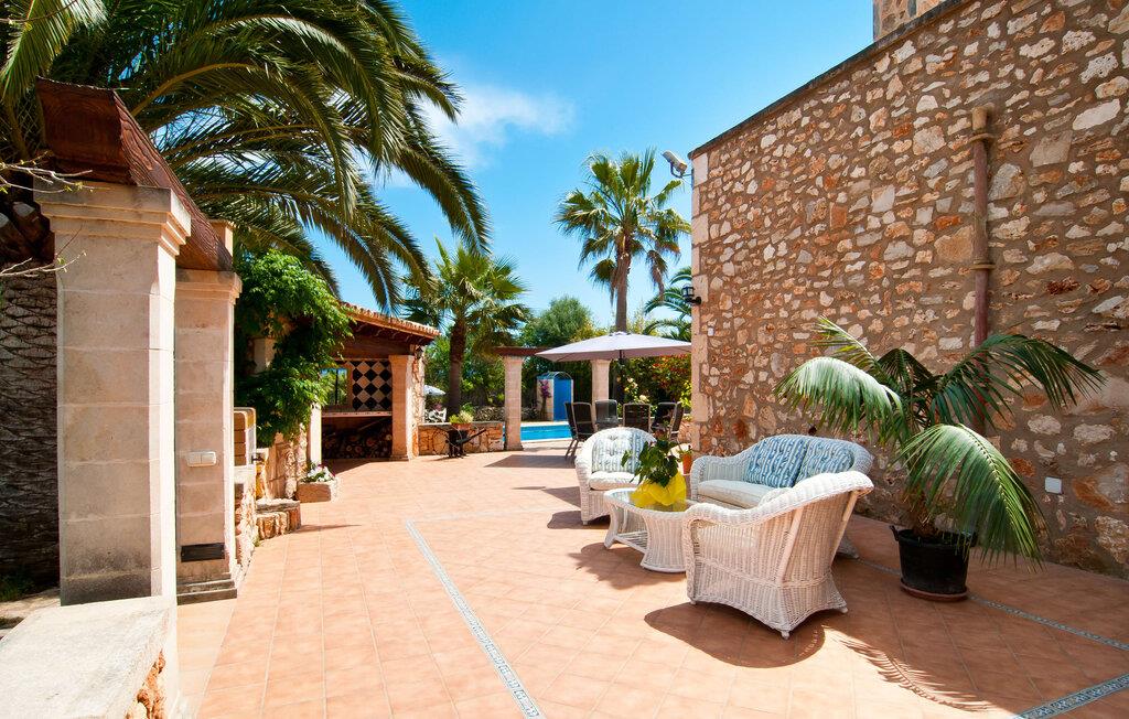 En frodig indkørsel beklædt med en naturstensmur og høje palmer fører os til huset og giver en første smagsprøve på denne ejendoms eksklusivitet. Det står hurtigt klart, at der i udearealet i denne villa er lagt vægt på at præsentere de enkelte elementer i et varieret og større format. Særligt imponerende er det ekstremt store antal træer på ejendommen. I poolområdet får I indtryk af at være midt i en palmehave. En række dekorative elementer og andre unikke stykker og installationer inviterer jer til at opdage og forundre ejendommen og give den en meget individuel flair. På de store terrassearealer kan I hver dag lede efter et nyt, eksklusivt yndlingssted og finde både solrige og luftige naturlige skyggeområder at slappe af. Frugttræer, grøntsager, høns og fugle er også en del af livet på landet her. Poolen, som ligger i læ foran huset, danner havens centrum. Der er adgang til poolen via en stige og har en smuk delfinmosaik på gulvet. Med en længde på 10 m er den en respektabel størrelse. Liggestole og parasoller harmonerer med poolens blå farve og fremtryller et malerisk billede. I kan ligge under middelhavshimlen af hjertens lyst og nyde den mest vidunderlige tid på året. Det kan I lige så smagfuldt gøre i forskellige siddepladser spredt rundt i huset, som udover komfortable kurvestole også byder på spiseborde, stole og en bænk. Ejendommen tilbyder i alt 20 udendørs siddepladser. Et overdækket område er også en del af det rummelige udeareal. I nærheden af poolterrassen ligger grillpladsen, hvor I kan sidde dejligt på lune aftener og forkæle jer selv med friske, regionale delikatesser. Fincaen "Can Lopez Vara" består af et hovedhus og en lejlighed, som stod færdigt i foråret 2014. Når man træder ind i hovedhuset genkender man straks den karakteristiske overdådighed og kan derfor tilbringe tid indenfor i skønne omgivelser. Fritlagte bjælkelofter, mønstrede terracotta-fliser og lyse vægge indrammer dette interiør smukt. I stuen/alrummet, kun adskilt af en bred buet gang, kan I slappe af i sofahjørnet på den ene side og måske nyde en god bog eller en underholdende film, da fjernsynet er bekvemt placeret her. På køligere aftener kan pejsen fremtrylle hyggelig varme. Der er også en lille bar indrettet i hjørnet af lokalet. I kan spise sammen på en kultiveret måde i spisestuen og gøre alle forberedelser på forhånd i køkkenet lige ved siden af. Køkkenet er rummeligt og byder på alt hvad I behøver til daglig brug samt masser af opbevaringsplads. Hvidevarerne omfatter et komfur, en ovn, en køle/frysekombination, en brødrister og en opvaskemaskine samt en kedel og en filterkaffemaskine. Der er endda plads til endnu et lille spisebord, hvor I kan nyde en lille snack med en lille gruppe. I de fem kærligt og meget individuelt designede soveværelser vil alle med garanti finde deres ideelle sted for en afslappende søvn. Badeværelserne fremstår friske og lyse og er udstyret med møbler af høj kvalitet. Den smukke lejlighed har en dobbeltseng og en sovesofa til en ekstra person. Stuen er meget åben. To af soveværelserne har aircondition, de andre har loftsventilator. Derudover har annekset og spisestuen også aircondition. Det smukke havneområde i den tidligere fiskerby Colonia de Sant Jordi (16 km) er ideelt til en kort tur. Elskere af badeferie er kommet til det rigtige sted med villaen "Can Lopez Vara". De indbydende strande på sydøstkysten, især den familievenlige Es Trenc strand, kan hurtigt nås med lejebil. Hvis I ønsker det, kan I udforske en anden af de mange bugter hver dag. Om aftenen på en fantastisk feriedag, kan I vende tilbage til jeres ferievilla og skabe jeres egen personlige afslutning på dagen. Villaen "Can Lopez Vara" er beliggende i en afsondret landlig beliggenhed, mindre end 5 minutter i bil nord for byen Campos i den sydlige del af øen. Campos har barer og restauranter samt butikker til daglige behov. Køreturen til Mallorcas sydlige strande er ikke langt fra dette feriehus.