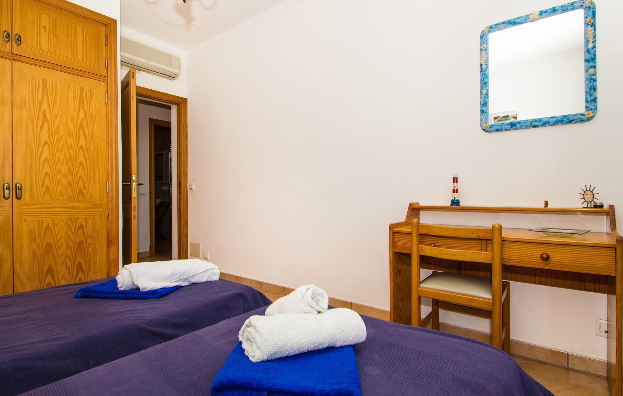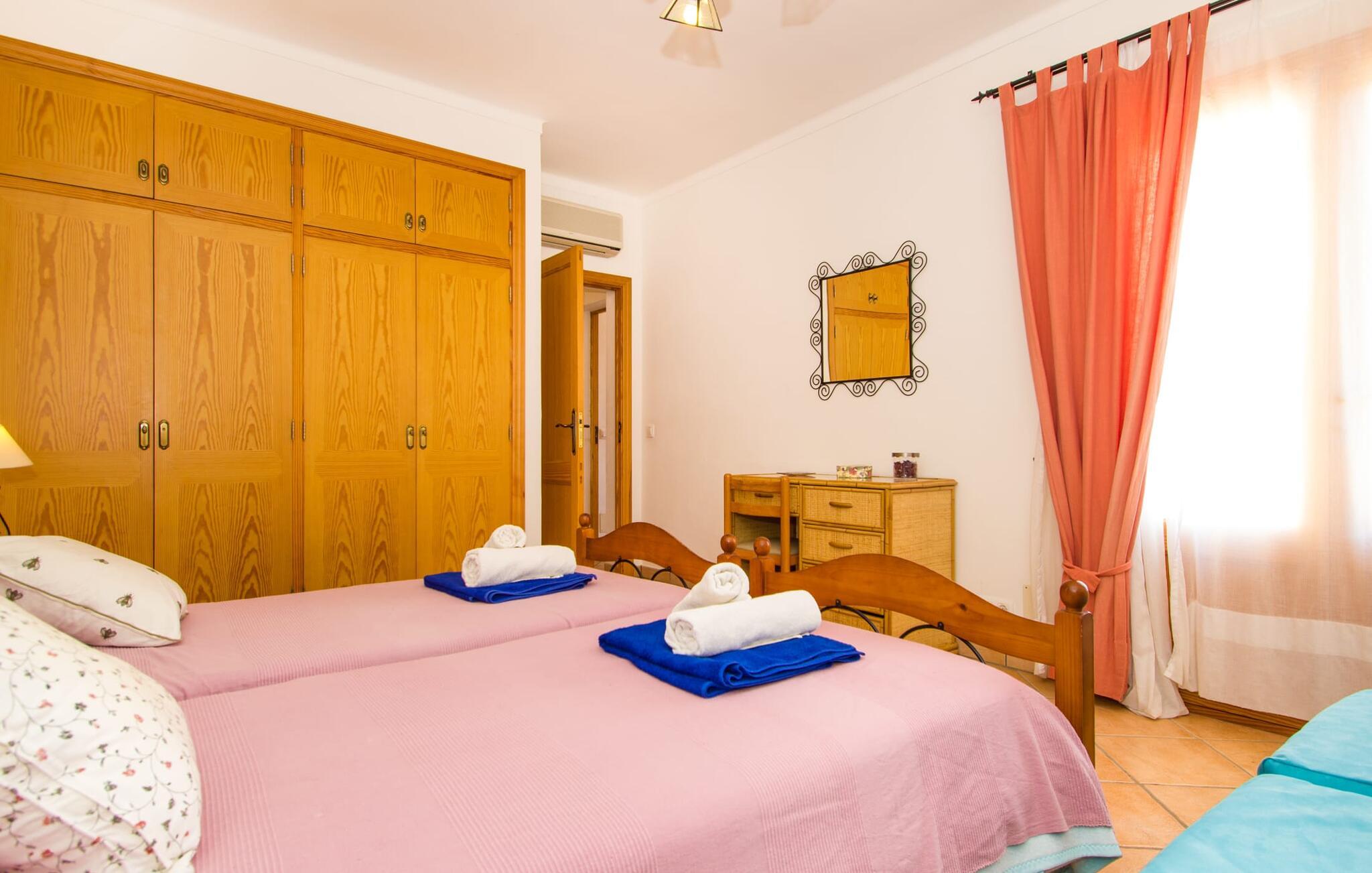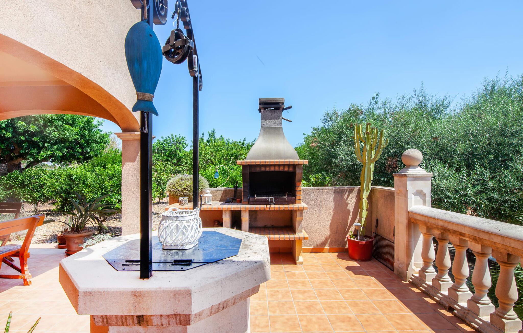 Villa "Can Marines" tilbyder den perfekte blanding af privatliv og bekvemmelighed, beliggende i en smuk grund med nem adgang til nærliggende faciliteter. Ejendommen har middelhavsflora, herunder mandeltræer, hvilket skaber et roligt udendørsområde. De omfattende terrasser tilbyder en betagende havudsigt, herunder et glimt af Portocolom fyrtårn. Poolen, med sin trappeindgang i romersk stil, er perfekt til at slappe af og nyde solen. Indvendigt har villaen med aircondition et typisk spansk design og en varm, indbydende atmosfære med fire soveværelser med dobbeltsenge, tre badeværelser (et en-suite) og en rummelig stue/spisestue med pejs. Det fuldt udstyrede køkken og et lille fitnesscenter i kælderen giver ekstra komfort. Fincaen "Can Marines" ligger på landet lige uden for S'Horta på den sydlige del af øen. Bare to minutters kørsel eller gå ind i landsbyen med et lille supermarked, restauranter og caféer, eller gå, hvis I foretrækker det. Santanyí med sit marked hver onsdag og lørdag er omkring 10 km væk. De nærmeste strande ligger kun 5 km væk, herunder Cala Sa Nau og Cala d'Or. Aircondition i denne ejendom er inkluderet i 12 timer om dagen med rimelig brug. I det sjældne tilfælde, at denne grænse overskrides, vil I blive opkrævet kontant på stedet. Bemærk venligst, at denne ejendom ikke accepterer ungdomsgrupper eller polterabender. En ungdomsgruppe på denne ejendom består af personer under 25 år. Book ikke denne ejendom, hvis I er en ungdomsgruppe eller polterabend, da jeres reservation vil blive afvist, når den er booket, hvilket kan være ved ankomsten til ejendommen eller under jeres ophold, og I vil ikke modtage en refusion.