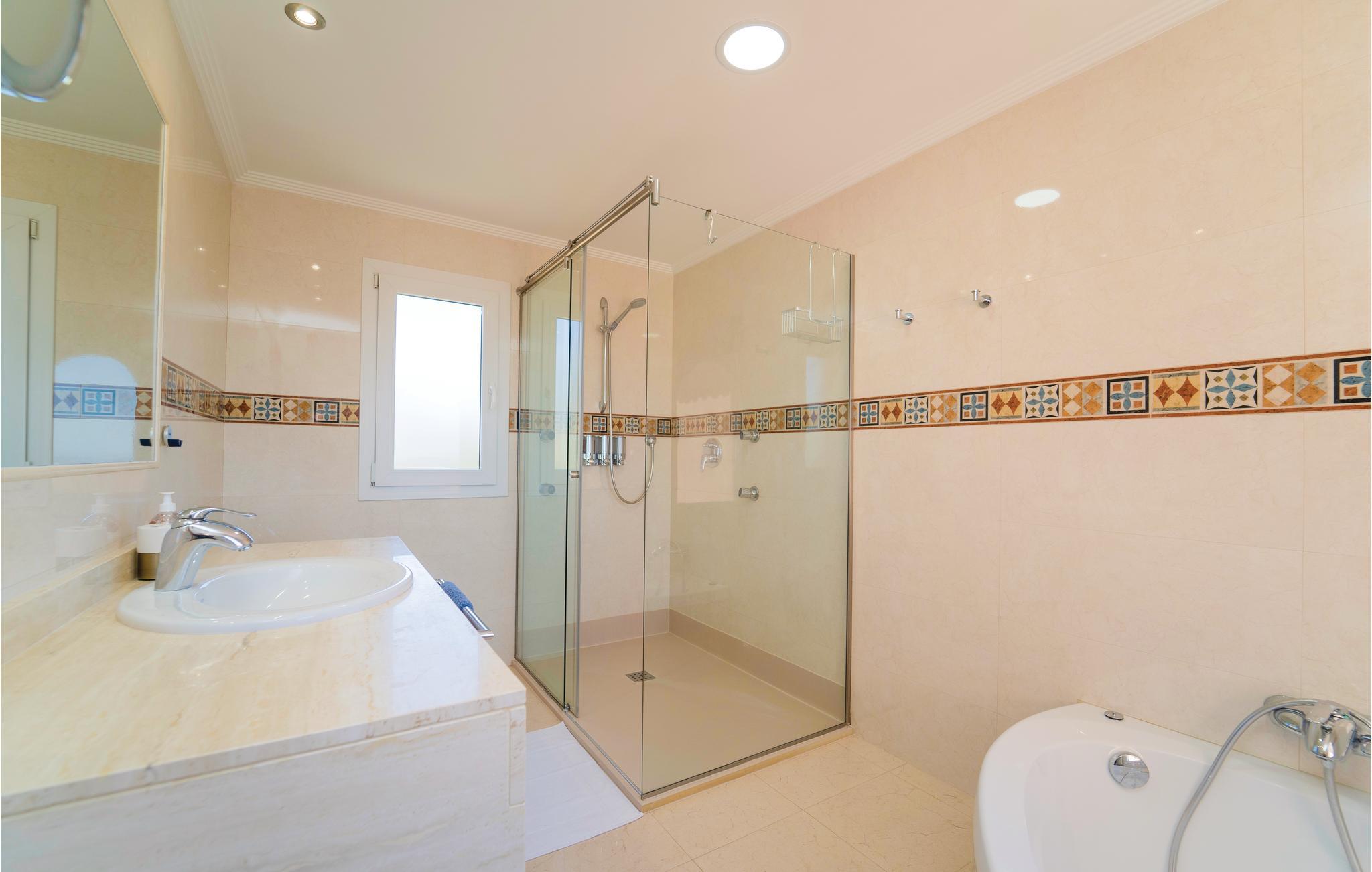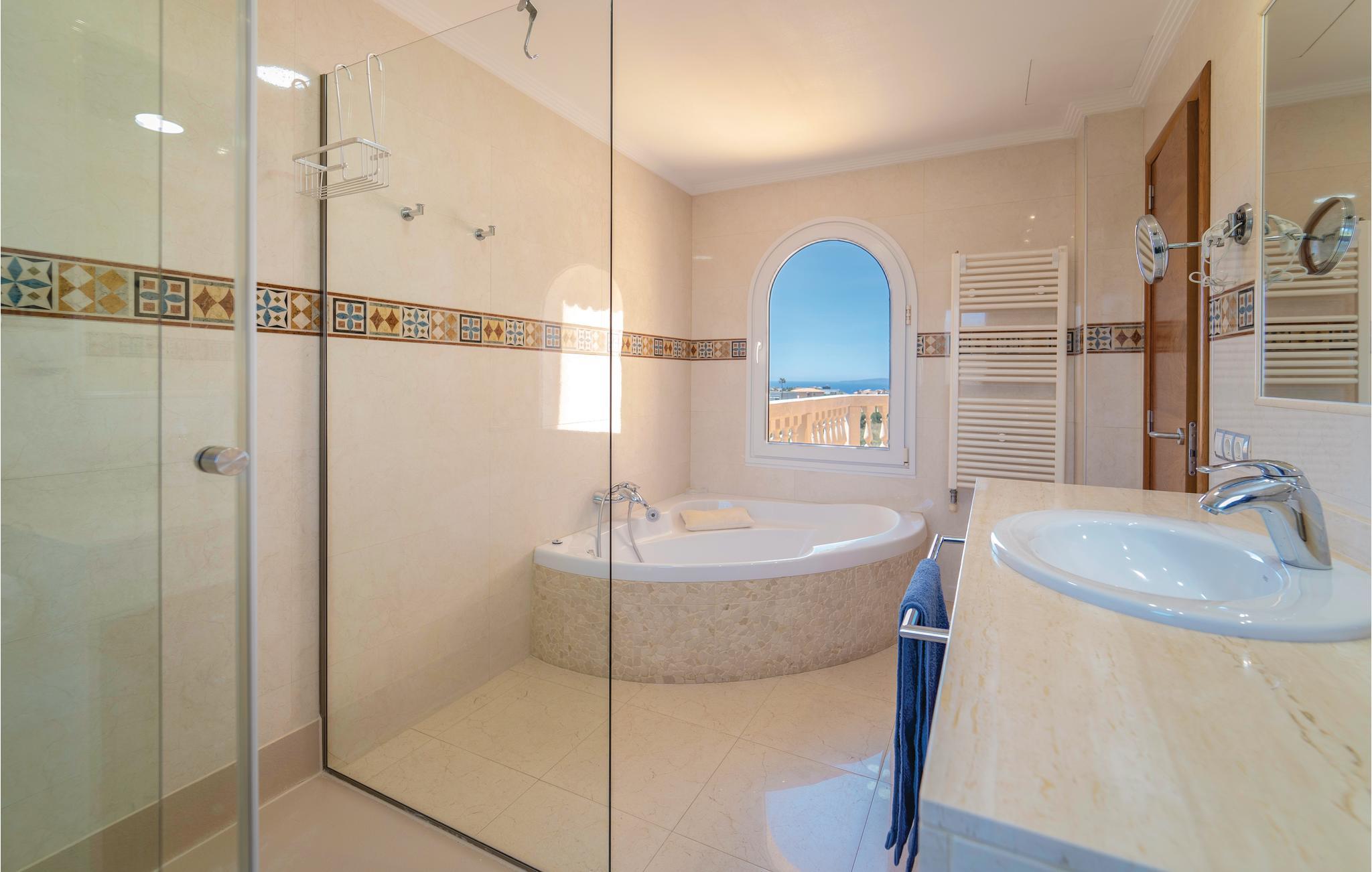 Feudal villa med fine gulve og badeværelser lavet af marmor af høj kvalitet. I bor i et eksklusivt boligområde og i den smukke have finder I en rummelig pool, en populær grillplads og en praktisk udendørs bruser. Fra soveværelset kan I endda få havudsigt over den store bugt i Palma. Om sommeren forbliver poolen halvt overdækket, og i de køligere måneder kan den være helt overdækket og opvarmet efter anmodning (mindst 1 uge før ankomst + ekstra omkostninger). Ligeledes brugen af ??jacuzzien. Graderinger i huset. Dekorativ brændeovn. Tilbud med rabat, fordi der bygges villa på en naboejendom. Grupper (undtagen familier og par over 30 år) efter anmodning og med et særligt depositum. Licensnummer: ETV/8454