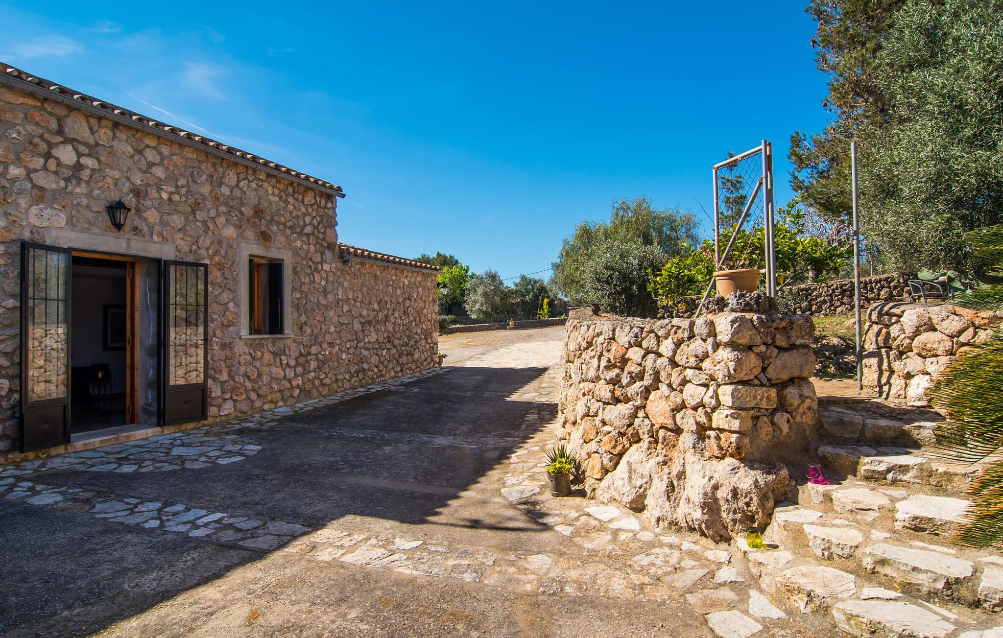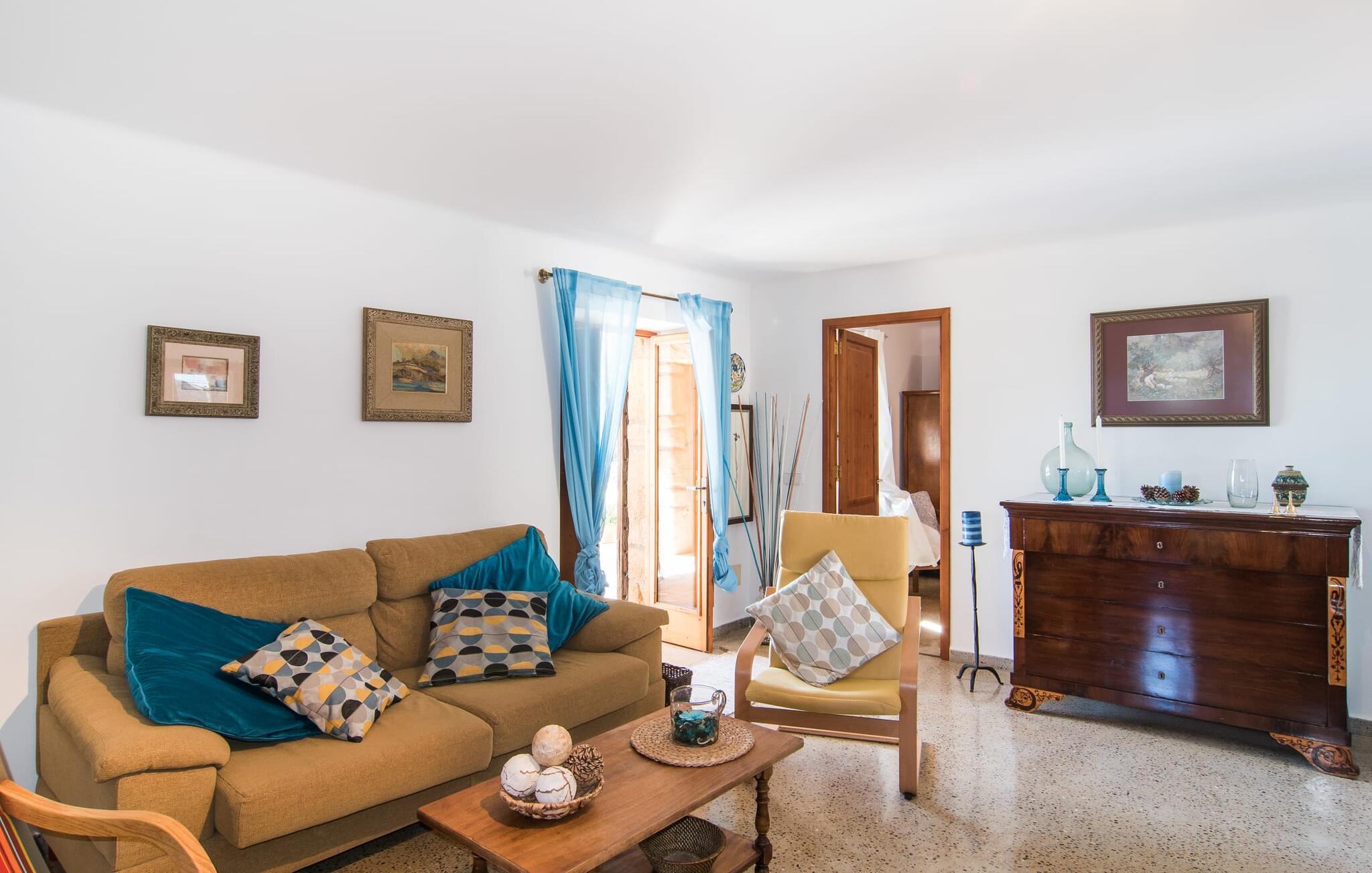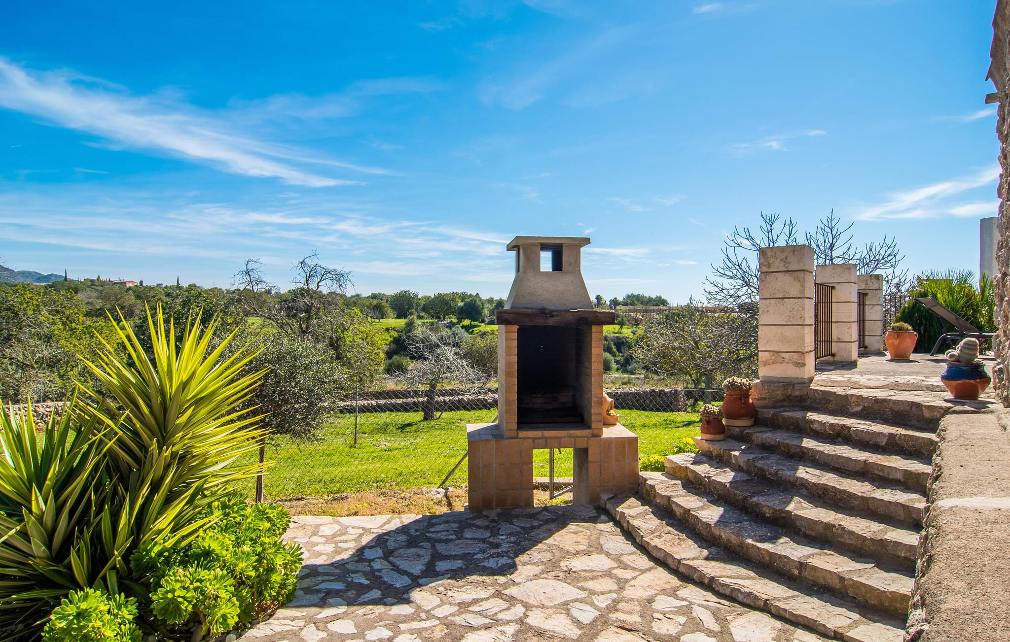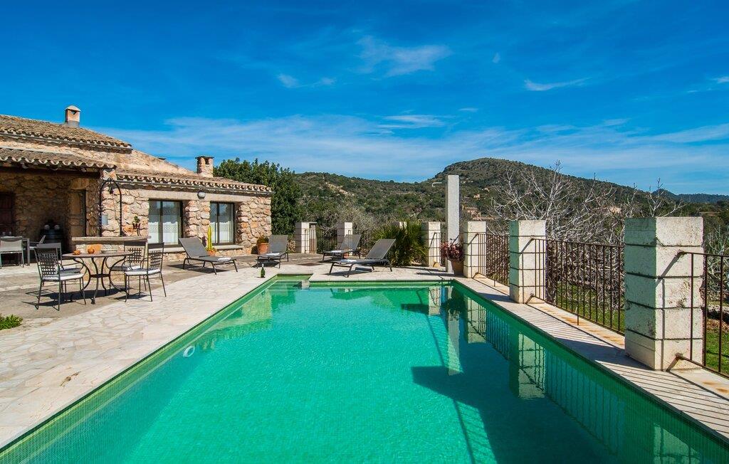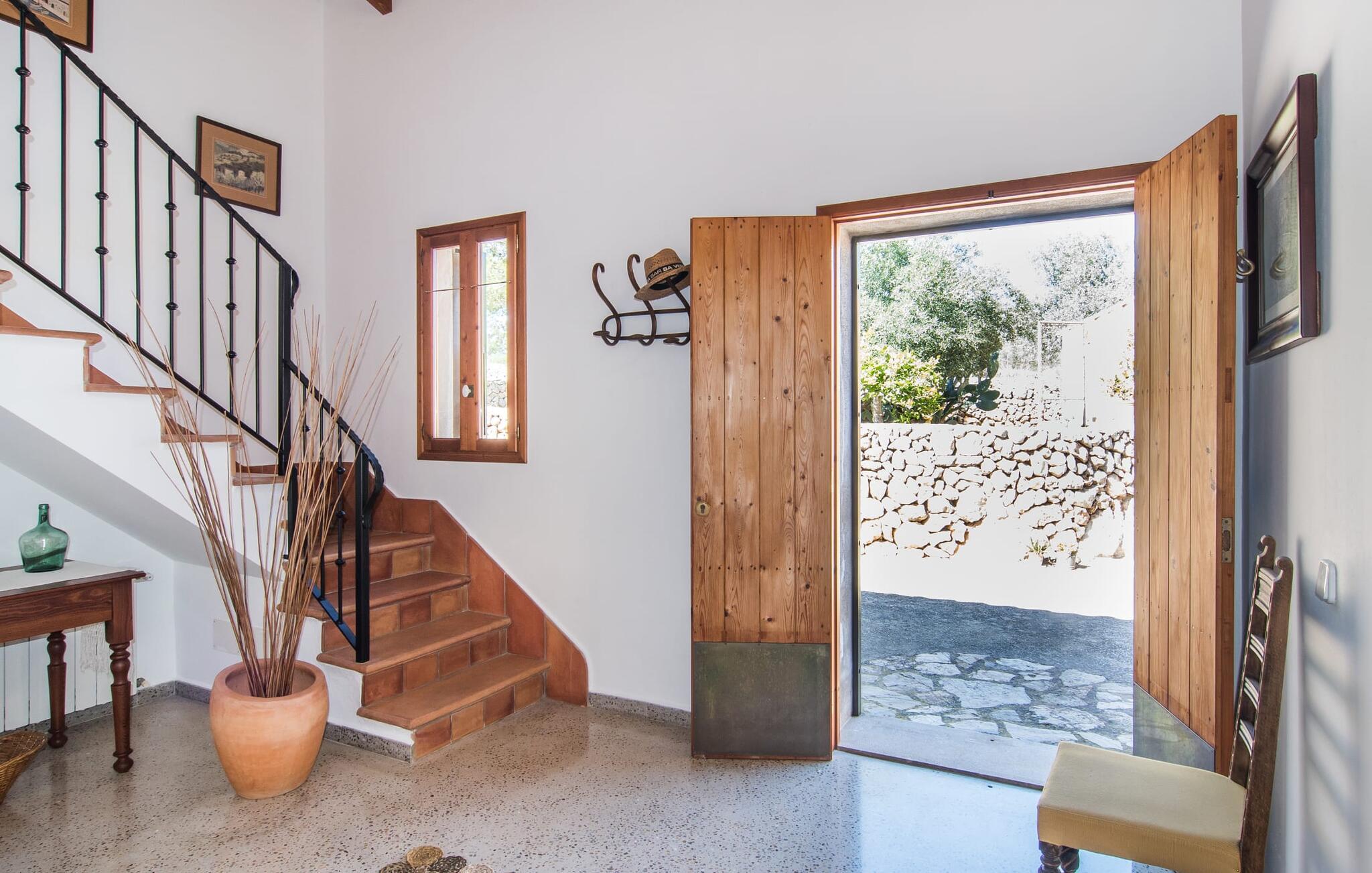 Villa "Can Matxet" er et perfekt eksempel på et mallorcansk feriehus, der kombinerer autentisk charme med moderne komfort. Villaen ligger på en let skrånende grund omgivet af en lav bakke og byder på en fantastisk udsigt fra adskillige udendørs siddepladser. Haven med mandel-, oliven- og citrustræer blander sig problemfrit ind i det naturlige landskab, selv inden for stenmuren. Slående sofaborde og robuste stenbænke er spredt ud over de solbeskinnede terrasser, mens liggestole i aluminium er det perfekte sted at slappe af efter en svømmetur i den azurblå pool. To cardio-maskiner er tilgængelige for fitness-entusiaster. Nyd grillet mad ved det moderne spisebord under den overdækkede terrasse. Tagterrassen byder på en uforglemmelig udsigt over landskabet, perfekt til stjernekiggeri, mens I lytter til de beroligende lyde fra græshopperne og mærker den varme brise. Indenfor fortsætter villaen med at imponere med sin blanding af lyse gulve, synlige murværker og træelementer. De rummelige opholds- og spiseområder suppleres af et separat køkken med kaffebrune møbler. Tre dobbeltværelser deler to stilfulde badeværelser, hvoraf det ene har badekar. Den øverste etage byder på endnu et rum, der er ideelt som lounge eller kontor. Villaen er beliggende i den rolige østlige del af øen i det blidt bølgende landskab omkring Sant Llorenc. Middelalderbyen Artà med sit landmandsmarked om tirsdagen og Manacor, Mallorcas næststørste by, er gode til shopping og ligger kun en kort køretur væk. Smukke sandstrande som Cala Marcal eller smukke naturlige strande som Cala Varques er kun 15 km væk.