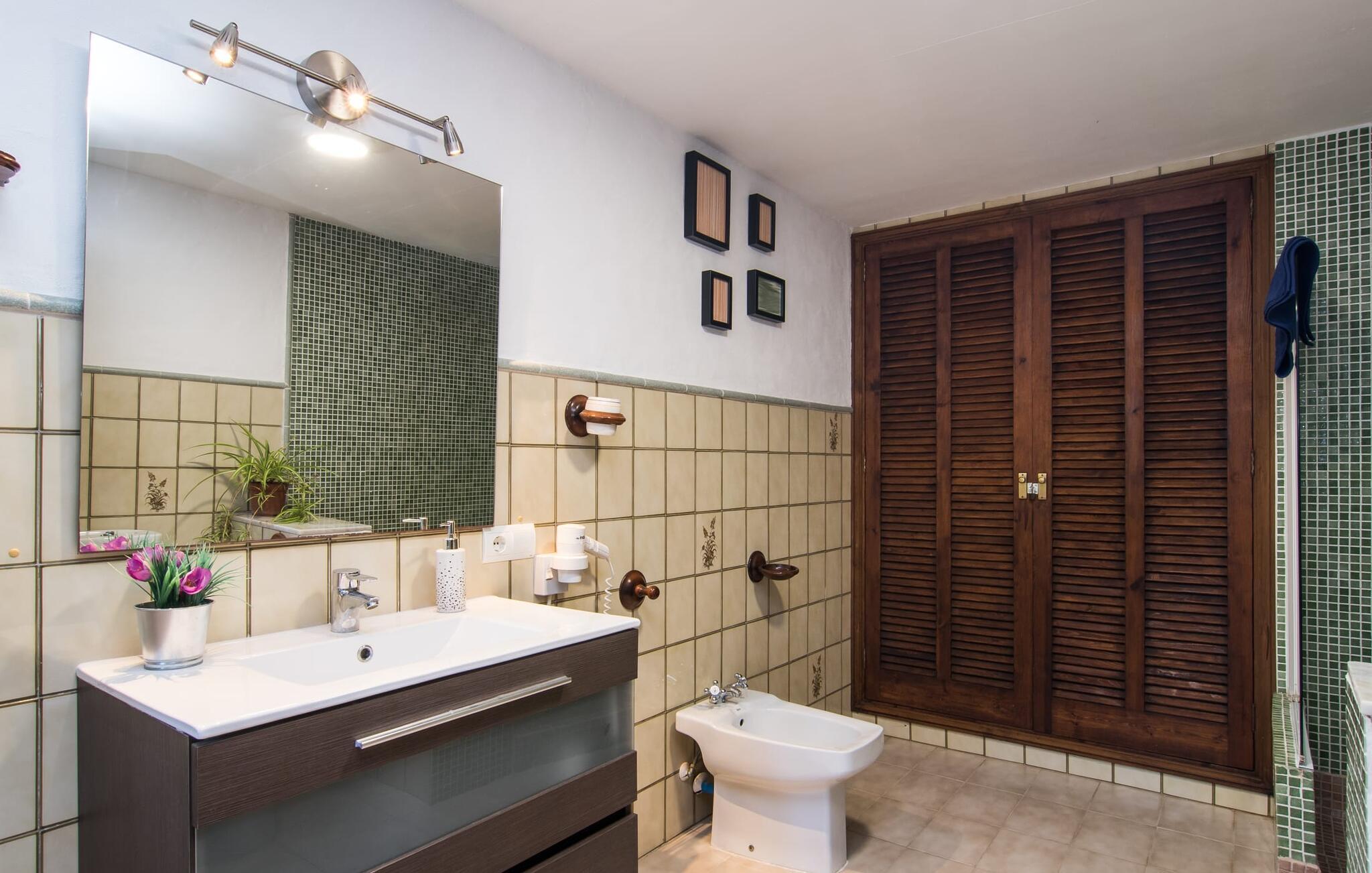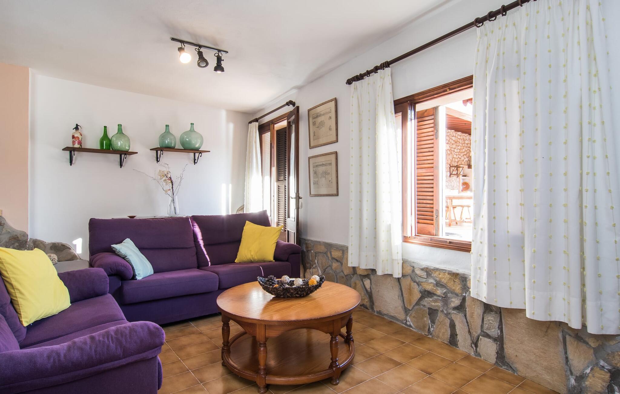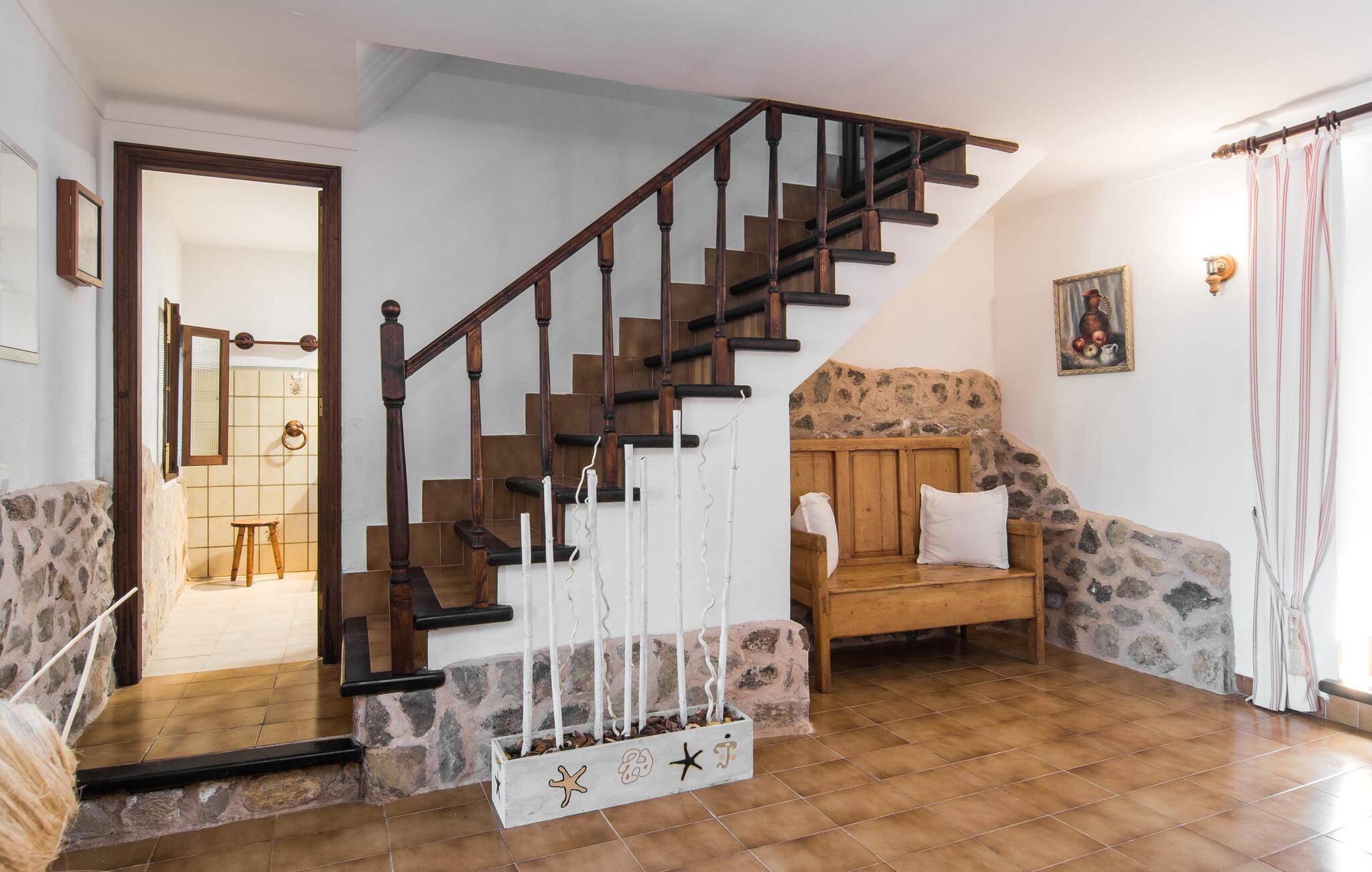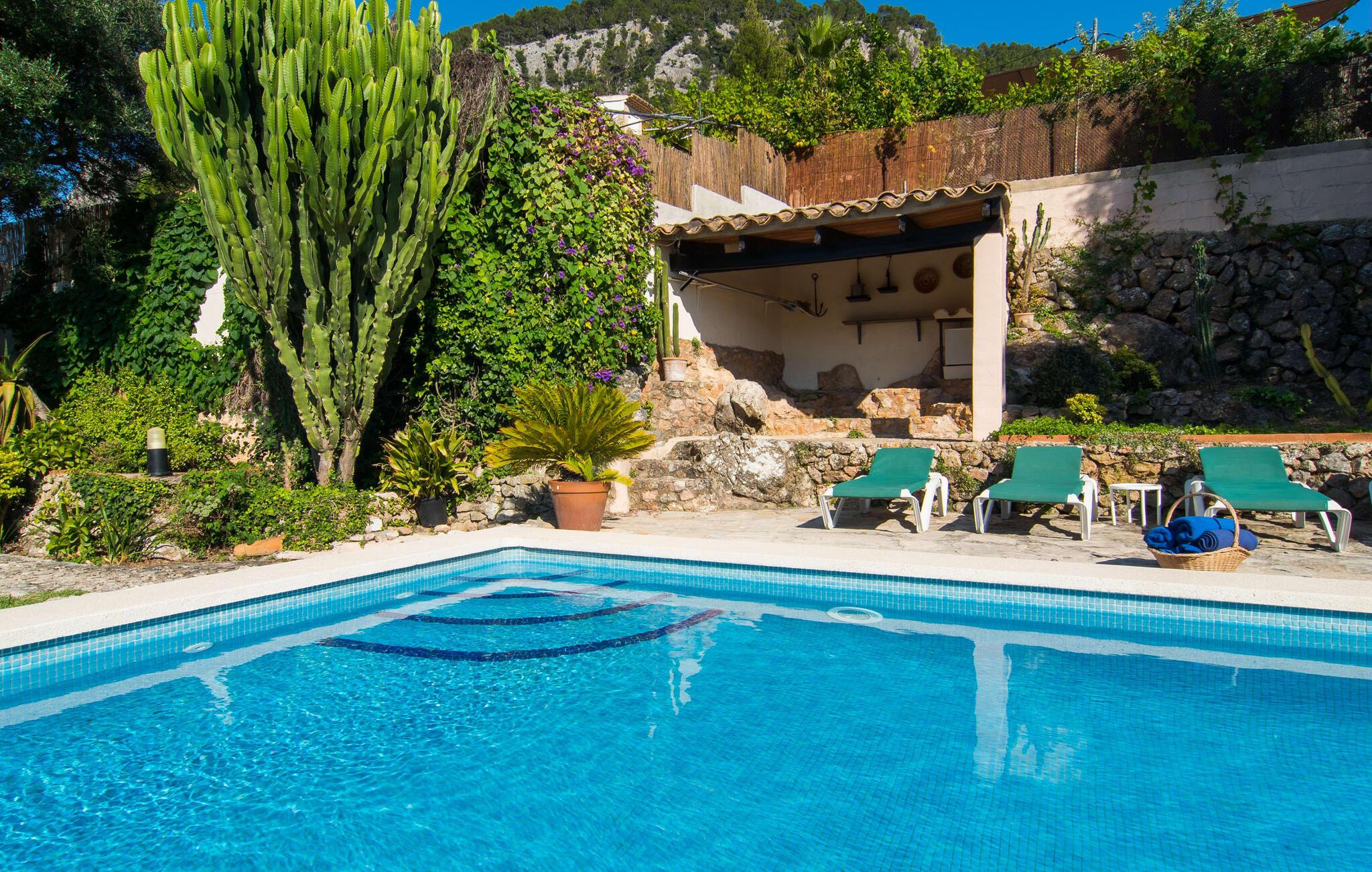 Omgivet af frodig middelhavsflora skinner villaen "Can Moragues" på en yderst charmerende måde med sine kontrasterende naturtoner og byder den nytilkomne velkommen. Udendørsområdet byder på smukke små stier, områder, trapper og stengærder langs frodige græsplæner og blomsterbede. En romantisk pergola, foret til venstre og højre med søjler og en lav mur, fører til hovedindgangen til huset. Udeområdets hjerte er den 32 m², let forhøjede swimmingpool, som er flisebelagt med dekorative blå mosaiksten og er meget let tilgængelig via en bred trappe. I kan slappe af af hjertens lyst på i alt fem komfortable liggestole under den dybblå middelhavshimmel og bare slappe af. En overdækket terrasse, tilgængelig via få trin, giver mulighed for at blive hængende i den luftige skygge, mens I nyder den vidunderlige udsigt over Pollença fra et lidt lavere niveau. Afhængigt af tidspunktet på dagen finder I også skøn naturlig skygge ved poolen. Tættere på huset når man den alsidige terrasse, som er halvt åben og halvt overdækket. I den sidste del er der i det væsentlige en udendørs stue, hvori der er en hyggelig siddegruppe med polyrattan møbler på den ene side og lige ved siden af et solidt spisebord til fællesspisning. Den nærliggende murede grill og udendørs vandforsyning giver jer mulighed for at tilberede og tilberede måltider udendørs, hvis I ønsker det. Husvæggen i natursten skaber i kombination med de smukke fliser og træbjælkeloftet en særlig behagelig stemning i dette område. Den udendørs terrasse tilbyder et sted at solbade, og der er endda et bordtennisbord. Dette giver sportsinteresserede mulighed for at blive aktive. Inde i villaen præsenteres den besøgende for en stor åben stue/spisestue med et tilstødende køkken, løst adskilt af en disk. Et hyggeligt sofahjørne inviterer jer til at slappe af og slappe af. Her kan I roligt læse en god bog eller blive underholdt af en film, da fjernsynet også er bekvemt placeret her. Spisebordet lige ved siden af er ideelt til sofistikeret indendørs spisning. Der er ingen lange rejser, fordi køkkenet ligger lige ved siden af. Her finder I alle de moderne faciliteter I har brug for til hverdagsbrug, herunder en kedel og en filterkaffemaskine. Det giver endda plads til et ekstra lille spisebord. Et andet ret rummeligt fællesrum med siddepladser giver mulighed for at trække sig tilbage og finde et privat sted, selv når man rejser med en større gruppe. Medfølgende børn vil helt sikkert nyde at lege her. Fire komfortabelt møblerede værelser med aircondition tilbyder en vidunderlig ramme for en afslappende søvn. Badeværelserne er venlige og funktionelt indrettede. Et strygejern og en hårtørrer er også tilgængelige i huset, så I behøver ikke at tage dem med. Den attraktive beliggenhed af denne villa kan være landlig, men havet er kun et par minutters kørsel væk. Sandstrandene omkring Port Pollença er fremragende og har en lavvandet indgang til vandet. Port de Pollença byder på en smuk promenade langs stranden og havnen med butikker, barer og restauranter. Kunne I tænke jer at tilbringe aftenen et andet sted end den smukke villa, finder I her et absolut seværdigt alternativ. Villaen "Can Moragues" er beliggende i en smuk bjergskråning i udkanten af Pollença. Det ligger på en frodig, grøn ejendom og er indrettet med stor sans for detaljer. Port de Pollença ligger 9 km derfra. Denne lille kystby imponerer med sin smukke promenade, som indbyder til at slentre og besøge de talrige caféer. Sandstrandene kan nås fra feriehuset på ingen tid. Bemærk venligst, at denne ejendom ikke accepterer ungdomsgrupper eller polterabender. En ungdomsgruppe på denne ejendom består af personer på 25 år eller derunder. Book ikke denne ejendom, hvis I er en ungdomsgruppe eller polterabend, da jeres reservation vil blive afvist, når den er booket, hvilket også kan være tilfældet ved ankomst til ejendommen eller under jeres ophold, og I vil ikke modtage en refusion