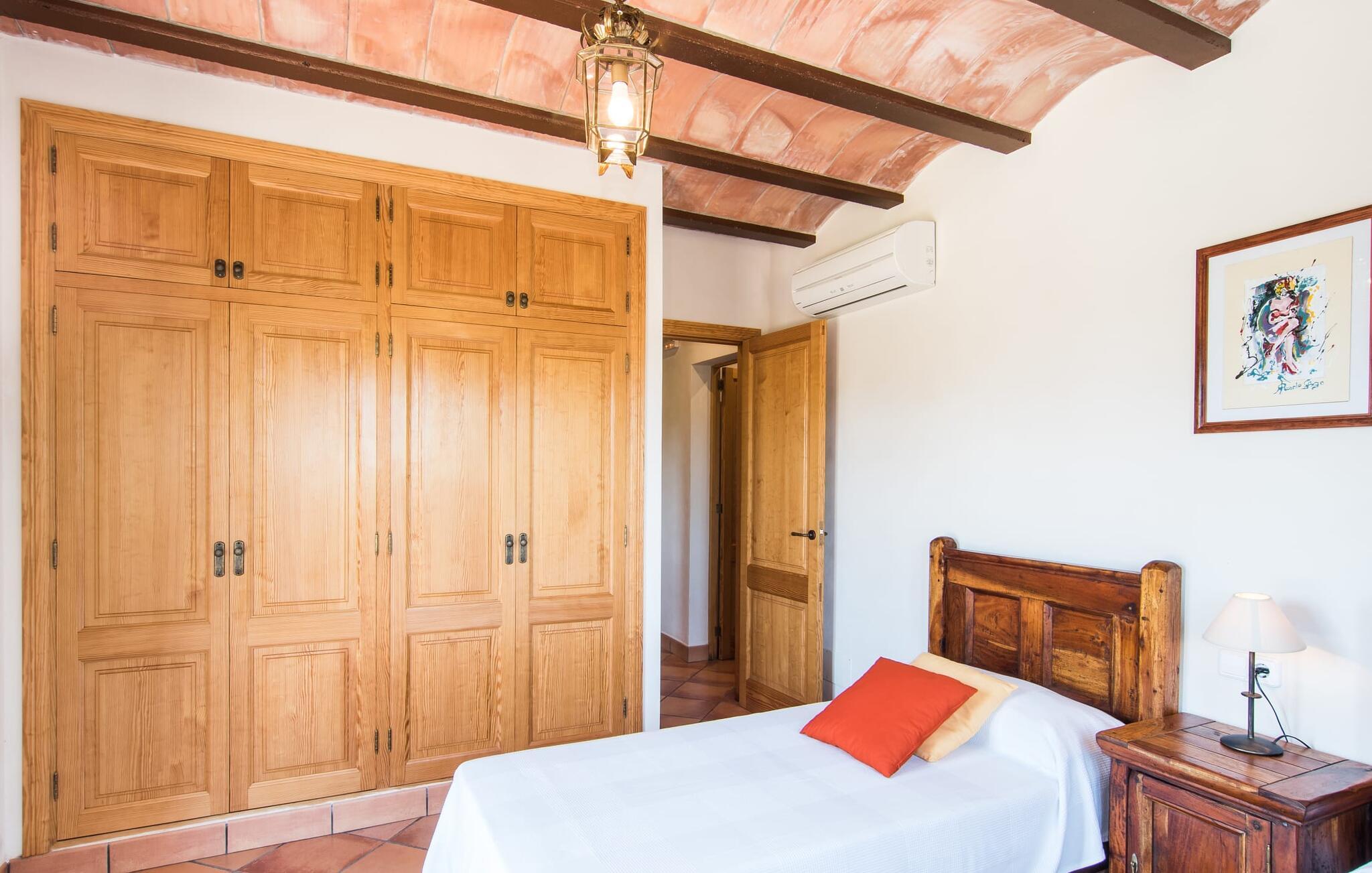 Charmerende tradition og moderne komfort - denne ejendom tilbyder en unik blanding af begge dele, hvilket sikrer en følelse af velvære kombineret med en ø-atmosfære. Drej blot til venstre ind i indkørslen lige før rundkørslen syd for Can Picafort, og I finder huset med dets indbydende og smukke receptionsområde, der vil pirre jeres nysgerrighed til at gå på opdagelse yderligere. Det er i et landligt, tyndt befolket område og bogstaveligt talt få minutter fra stranden. Men hvis I ønsker at blive hjemme på en varm dag, vil poolen på 9 m ved siden af huset være en skøn forfriskning. Det er flisebelagt med blå mosaikfliser, adgang til via trin og fald til en behagelig dybde på 2 m. Det er også sikkert indhegnet for jeres børns sikkerhed. Det omkringliggende område er skyggefuldt af cypresser og nogle gamle figentræer, hvilket skaber en hyggelig udendørs atmosfære, mens plænen byder på masser af plads til at ligge i solen eller lade børnene lege. Huset har en overdækket og en åben terrasse. Den åbne terrasse vender ud mod poolen, den overdækkede terrasse tilbyder det perfekte sted for måltider sammen eller blot en drink på ethvert tidspunkt af dagen. Der er også en muret grill til rådighed på ejendommen; Besøger I et af de omkringliggende markeder i løbet af dagen, kan I forsyne jer med friske regionale specialiteter, som I senere kan nyde i jeres egen have. De venlige ejere bor ved siden af villaen på samme ejendom, men har deres egen indkørsel, så I kan nyde jeres privatliv og have en kontaktperson i nærheden, hvis I har spørgsmål eller bekymringer. Et lyst interiør, præget af varme og harmoniske farver, sikrer en øjeblikkelig følelse af velvære; I vil flytte ind med det samme og føle jer hjemme! Middelhavet klinkegulve og synlige bjælker og adobe lofter giver en original og traditionel baggrund til dette moderne, smagfulde og sofistikerede interiør. Den rummelige stue/spisestue er indrettet med komfortable lænestole og et stort spisebord til smagfuld indendørs spisning. En brændeovn giver ekstra komfort, hvis det kræves; Stereoanlæg, TV og DVD-afspiller er til rådighed, samt WLAN internetforbindelse til en bred vifte af medieunderholdning. Ved siden af opholdsstuen er det højkvalitets, fuldt udstyrede moderne køkken, hvor I finder alt hvad I behøver for en selvstændig ferie med selvforplejning, inklusive en Nespresso og filterkaffemaskine til jeres varme drik tidligt om morgenen på terrassen. Tre soveværelser med aircondition, indrettet i en individuel og slående stil, danner rammen om afslappende nætter. et badeværelse med bruser og et med badekar og bidet fuldender billedet. Den gamle havn i Can Picafort ligger i centrum af Alcúdia-bugten og har en imponerende 17 km lang strand og ligger kun to minutters kørsel fra villaen. Her finder I barer og restauranter samt et pulserende natteliv i de lokale natklubber. Villaen er bekvemt placeret tæt på landevejen, der fører direkte ind til byen, hvilket gør transportforbindelser særligt bekvemme og maleriske steder længere inde i landet på øen nemme at nå. At rejse i forskellige retninger vil hurtigt tage jer til andre strande som Playa de Muro eller Son Baulo. Velkommen til villaen "Can Polito", bygget i den typiske ø-stil, på kanten af Can Picafort i den nordlige del af øen. Det, der er særligt positivt ved dette feriehus, er den unikke beliggenhed - nærheden til nogle attraktive strande og de varierede fritidsaktiviteter i selve byen I vil elske både freden og roen udenfor byen og fordelen ved et varieret tilbud ikke langt fra jeres hoveddør.