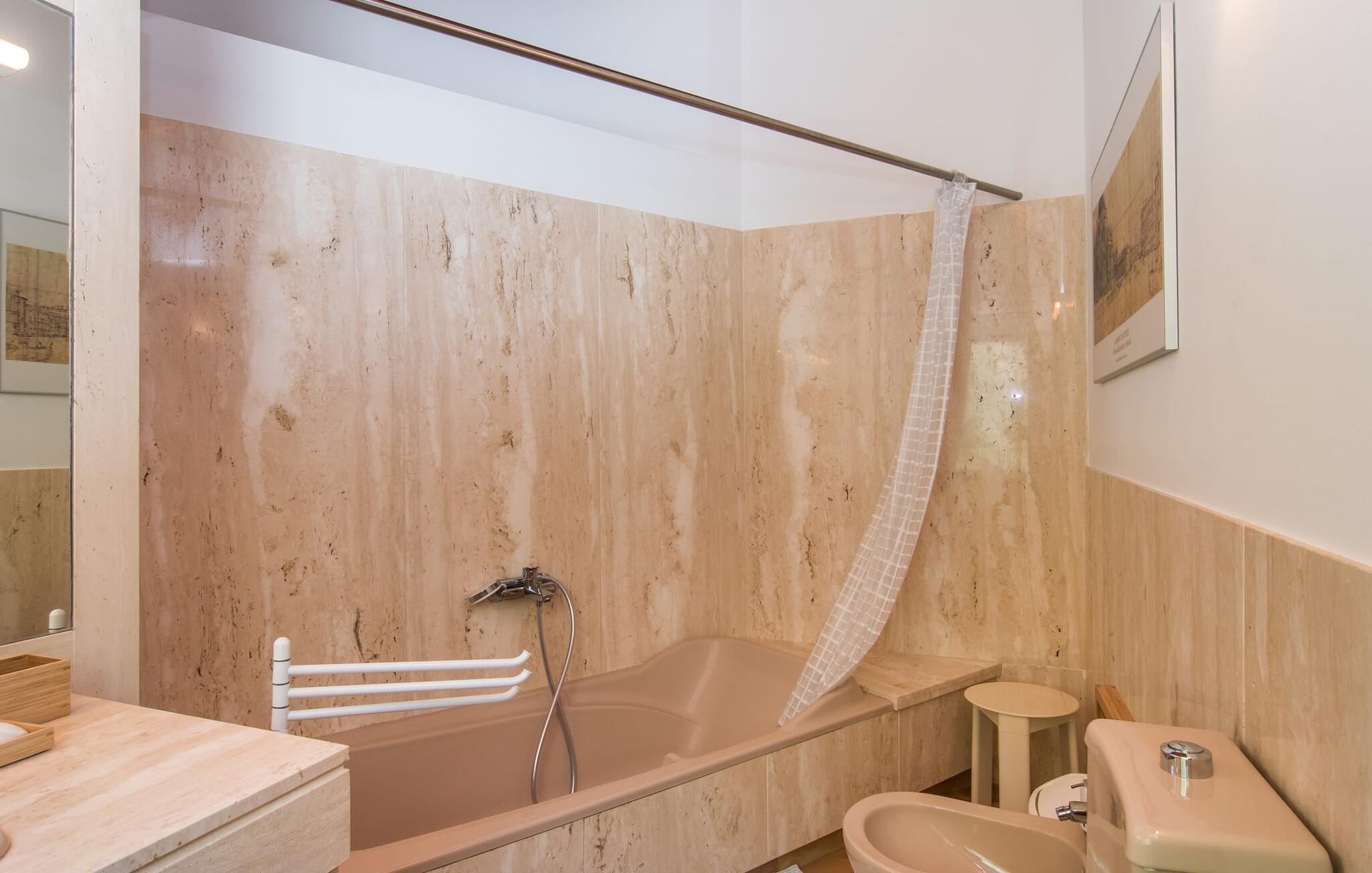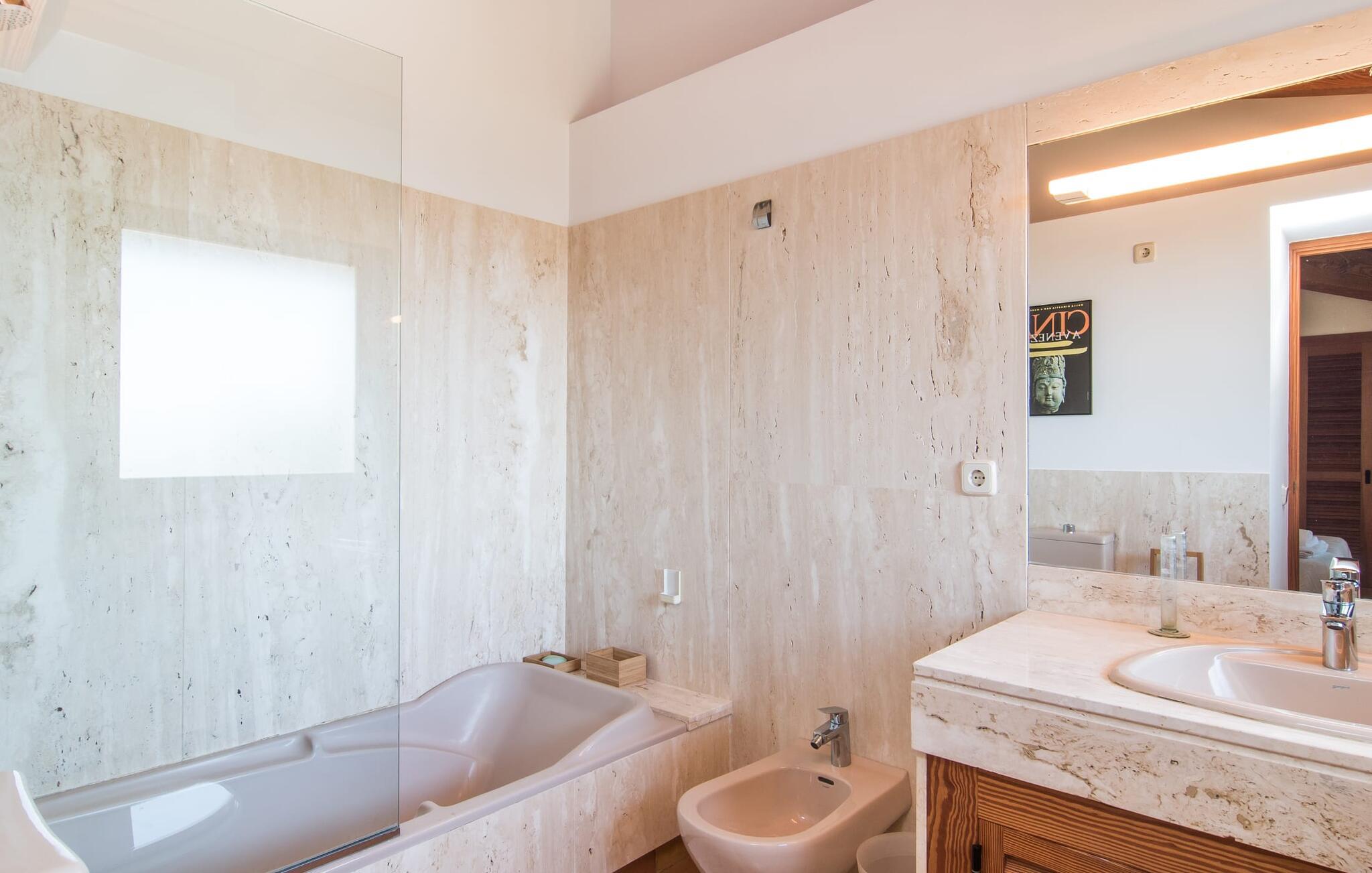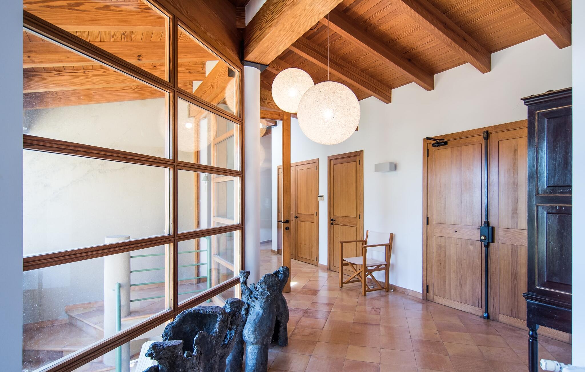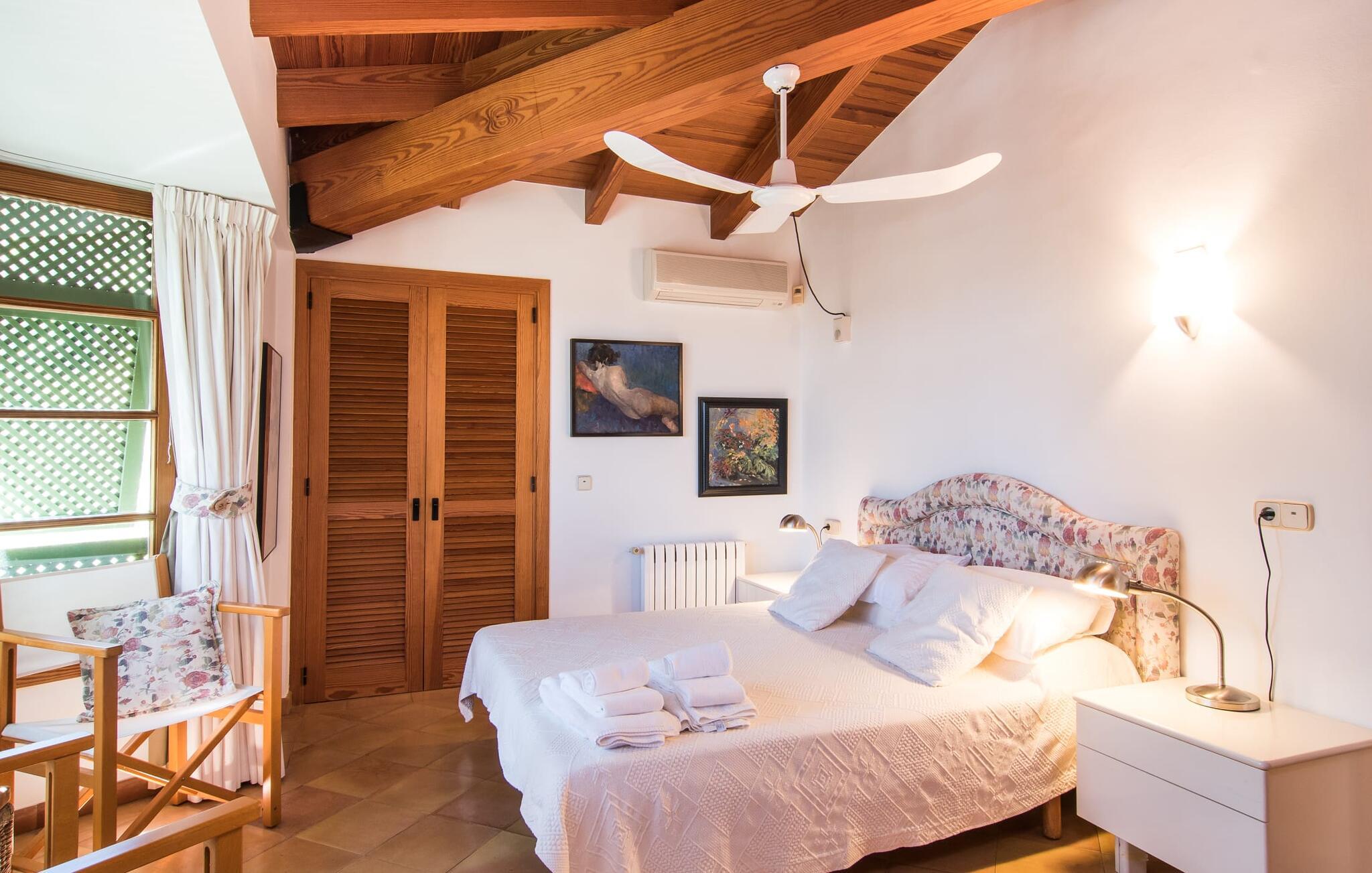 Beliggende på en bakke byder villaen "Can Seixanta" jer velkommen med en slående forhave efterfulgt af en uforglemmelig udsigt over bugten Port de Pollença. I kan nyde dette højdepunkt med en forfriskende drink fra terrassen, som er udstyret med komfortable siddepladser i rattan. Her finder I også en moderne gasgrill, hvormed I kan arrangere en grillfest hver aften. Det lange bord og siddeområdet i massivt træ giver masser af siddepladser. Poolområdet er beskyttet af palmer og andre træer. I kan tage en dukkert i den sekskantede pool efter behag og bruge liggestolene til en afslappende lur på græsplænen. Et af soveværelserne har direkte adgang til poolen og har også luksusen af sin egen lille terrasse. Huset er kendetegnet ved den venlige, lyse trætone i dets tagbjælker og dets vinduer, der lukker masser af lys ind. Stuen har en meget smart indretning, der flytter fokus til pejsen, hvilket skaber en usædvanlig hyggelig atmosfære. Det turkisgrønne siddeområde med to sofaer og en lænestol hviler på et håndvævet tæppe. Når I sætter jer her, vil I bemærke det udsøgte udvalg af kunstværker, herunder portrætter af høj kvalitet og sofistikerede landskabsmalerier. Går I et par trin ned, støder I på en udgang til haven. Bogreoler her og i spisepladsen i stuen sikrer, at selv kultiverede feriegæster hurtigt føler sig hjemme. Det skyldes nok også de antikke møbler, som dygtigt sætter accenter. Fra spisebordet når man det komfortabelt indrettede køkken, som ikke lader noget tilbage at ønske. En af sidevæggene kan åbnes om nødvendigt, så I til enhver tid kan skabe en følelse af plads og åbenhed i dette hus. Et af værelserne er indrettet som studie, her finder I også et skrivebord. To af soveværelserne har luksusen af deres eget badeværelse, ligesom den førnævnte suite, som I kan få adgang til fra poolen. Fra stueplan kan I gå et par trin ned i en anden fløj, som indeholder to soveværelser og et badeværelse. Alle værelser er udstyret med aircondition, så I kan nyde en afslappende søvn ved en behagelig temperatur. At tre af badeværelserne har badekar er en luksus, der giver mange gæster mulighed for at slappe af i badekarret og nyde et boblebad for at koble af dagen. Et vaskerum med vaskemaskine og tørretumbler er også udstyret med et strygebræt, hvis I ønsker at gøre jer klar til en aftenudflugt på en af de udsøgte restauranter. Regionen omkring Pollença er også et must for aktive rejsende: I Tramuntana-bjergene kan I vandre på snoede skovstier, opdage skjulte strande langs kysten eller nyde historiske bycentre væk fra masseturismen - takket være de gode transportforbindelser. Det betyder, at trafikstøj kan være hørbar afhængigt af vindretningen. Villaen er en perfekt base for alle disse aktiviteter. Med Cap de Bou, Platja de Port de Pollença og Cala Sant Vicenç er adskillige strande let tilgængelige. Den lange bugt Alcúdia er ideel til en lang gåtur. Øens flora og fauna gør en tur til vådområderne i L'Albufereta, 8,5 km væk, umagen værd. Villaen "Can Seixanta" forkæler jer med en spektakulær udsigt over bugten Port de Pollença. Den lille by med sin attraktive strandpromenade ligger kun 4 km væk. Bådene sejler regelmæssigt derfra og tager jer til den fine sandstrand Formentor. I kan også tilbringe en dag med at svømme i Cala St. Vincente, kun 6 km væk. De vildt romantiske Tramuntana-bjerge med utallige vandrehøjdepunkter kan også hurtigt nås - perfekt for alle naturelskere.