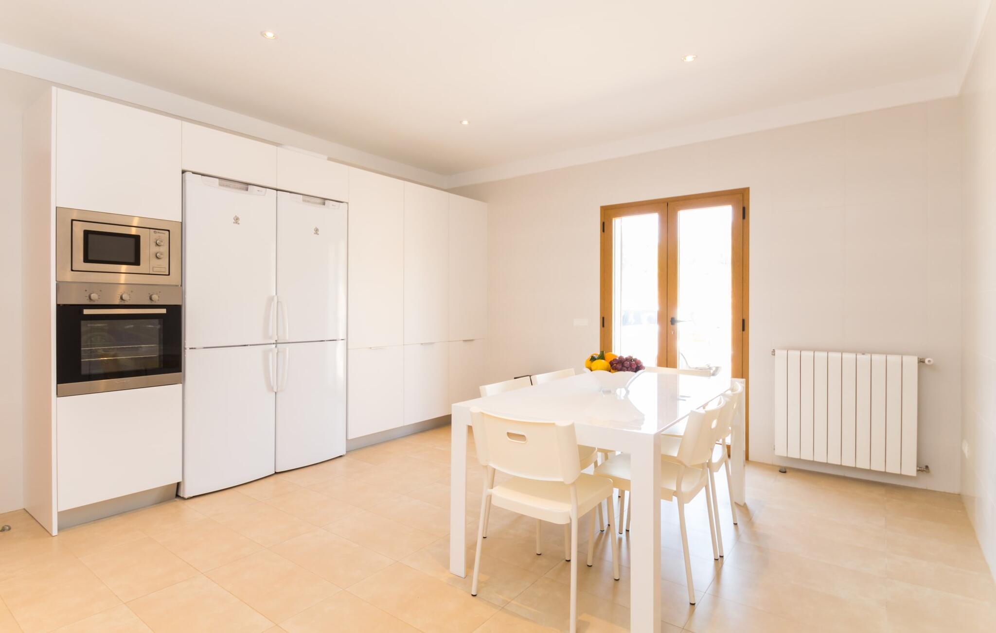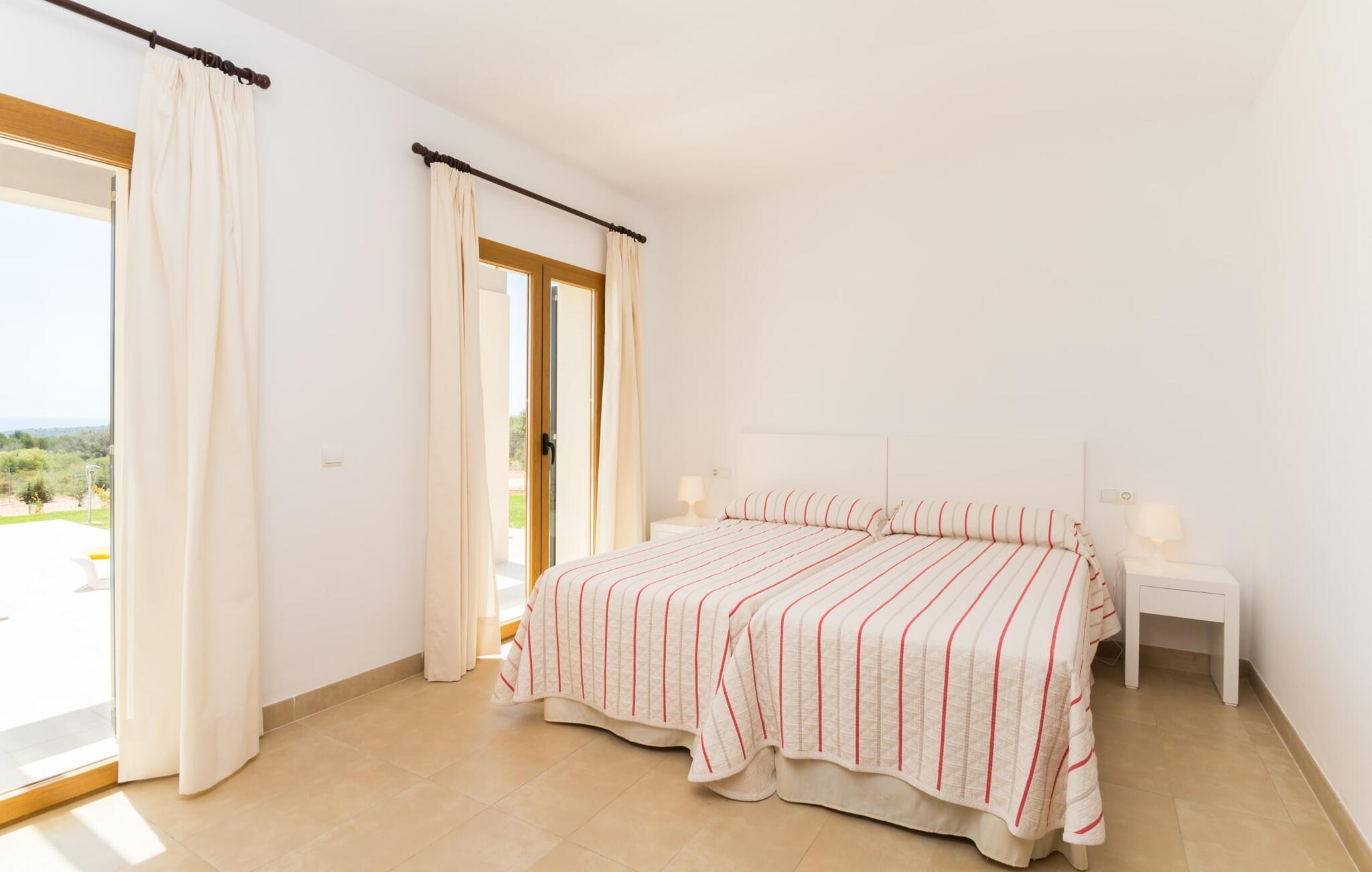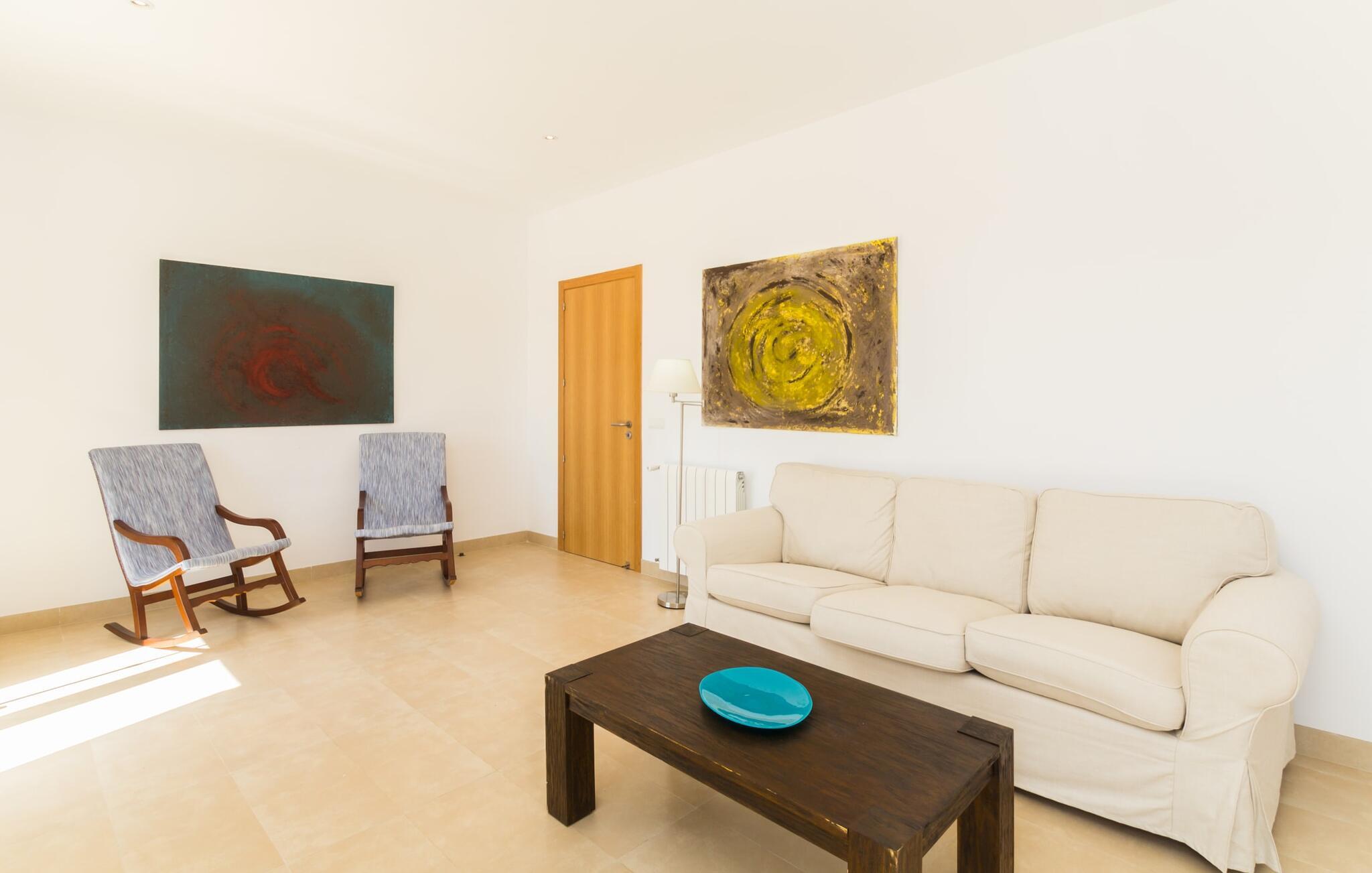 Feriegæster bør være opmærksomme på denne ejendom, hvis de værdsætter et moderne, velholdt feriehus og elsker uhindret havudsigt. Villa "Can Tem" dækker utrolige 355.500 kvadratmeter og skiller sig ud fra landskabet som en lille, storslået ejendom. Grunden i nærheden af huset har græsplæner og terrasseområder og er foret med ung middelhavsvegetation, hvilket giver uhindret udsigt over det omkringliggende landskab og udsigt ud over havet i lang tid. I midten af haven ligger den elegante pool, som har en meget komfortabel trinadgang og en rummelig solterrasse ved siden af. I kan slappe af i solen på de komfortable liggestole og nyde den fantastiske natur i denne ferievilla. Hvis solen er for stærk, er der tre parasoller til beskyttelse. I kan også drage fordel af den luftige skygge på den store veranda, som ligger tre trin over poolen: Med sin gulmalede facade ser den særdeles munter og indbydende ud. Her kan I nyde en hyggelig middag ved det store spisebord, mens I nyder den vidunderlige udsigt eller slappe af med stil i den ultramoderne lounge. Et godt lokale til en elegant start og afslutning på dagen: om aftenen kan I for eksempel arrangere en kulinarisk grill. Udvidelsen af verandaen byder på yderligere delvist skyggefulde steder, hvor I kan samles i små grupper eller bo alene, hvis I ønsker det. I kan også sidde under oliventræerne i nærheden af de to udhuse og måske læse en god bog. Der er mange måder at finde jeres helt eget yndlingssted på. Inde i huset finder I en rummelig stue indrettet med lyse farver og usædvanlige, unikke elementer. På væggene finder I alle mulige bemærkelsesværdige kunsttryk og opdager mange andre detaljer. Den kombinerede stue/spisestue byder på et kæmpe sofahjørne, hvor I kan sidde komfortabelt på de komfortable siddepladser på ethvert tidspunkt af dagen. Fladskærms-tv'et er også bekvemt placeret her. Midt i lokalet er der et stort spisebord med stole i original stil, der kan rumme otte personer. Det rummelige køkken fremstår stilrent og er udstyret med stort køleskab, ovn, keramisk kogeplade, mikroovn, opvaskemaskine, elkedel, Nespresso kaffemaskine og meget mere. Der er også plads nok til et ekstra spisebord, der kan bruges af seks personer. Soveværelset med aircondition inviterer jer til at slappe af. Uden unødvendige dikkedarer overrasker disse værelser med deres lysstyrke og mange nuancer af hvid, kombineret med kontrasterende kunstneriske accenter. For en behagelig hvile har gæsterne i alt en seng, der måler 1,80 x 2,00 m og ti senge, der måler 0,90 x 2,00 m til deres rådighed. I stueetagen er der et soveværelse med en-suite badeværelse og et gæstetoilet, mens der på første sal er fem soveværelser, hvoraf det ene har en-suite badeværelse, og yderligere to separate badeværelser. Soveværelsets smagfulde design kommer også til sin ret på badeværelserne. Disse er kendetegnet ved deres meget komfortable, rummelige og ultramoderne stil. Hvis det kræves, er to babysenge og høje stole til rådighed. Porto Cristo byder på en smuk strand med lavvandet adgang til havet og en smuk promenade. Der finder I også adskillige store supermarkeder, hvoraf nogle også har åbent på søn- og helligdage. Her kan I få alt, hvad I skal bruge til jeres daglige behov. De mange strande omkring havnebyen kan også varmt anbefales. Den ultramoderne og venlige villa "Can Tem" ligger kun få kilometer fra havet på østsiden af øen, ikke langt fra Porto Cristo. Den bekvemme beliggenhed gør den daglige indkøb nemmere. Der er et ugentligt marked i Manacor hver mandag. De smukke strande på østkysten kan nås hurtigt i bil.
