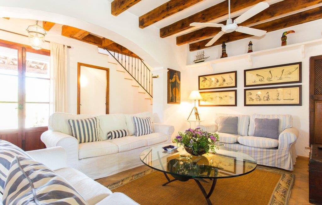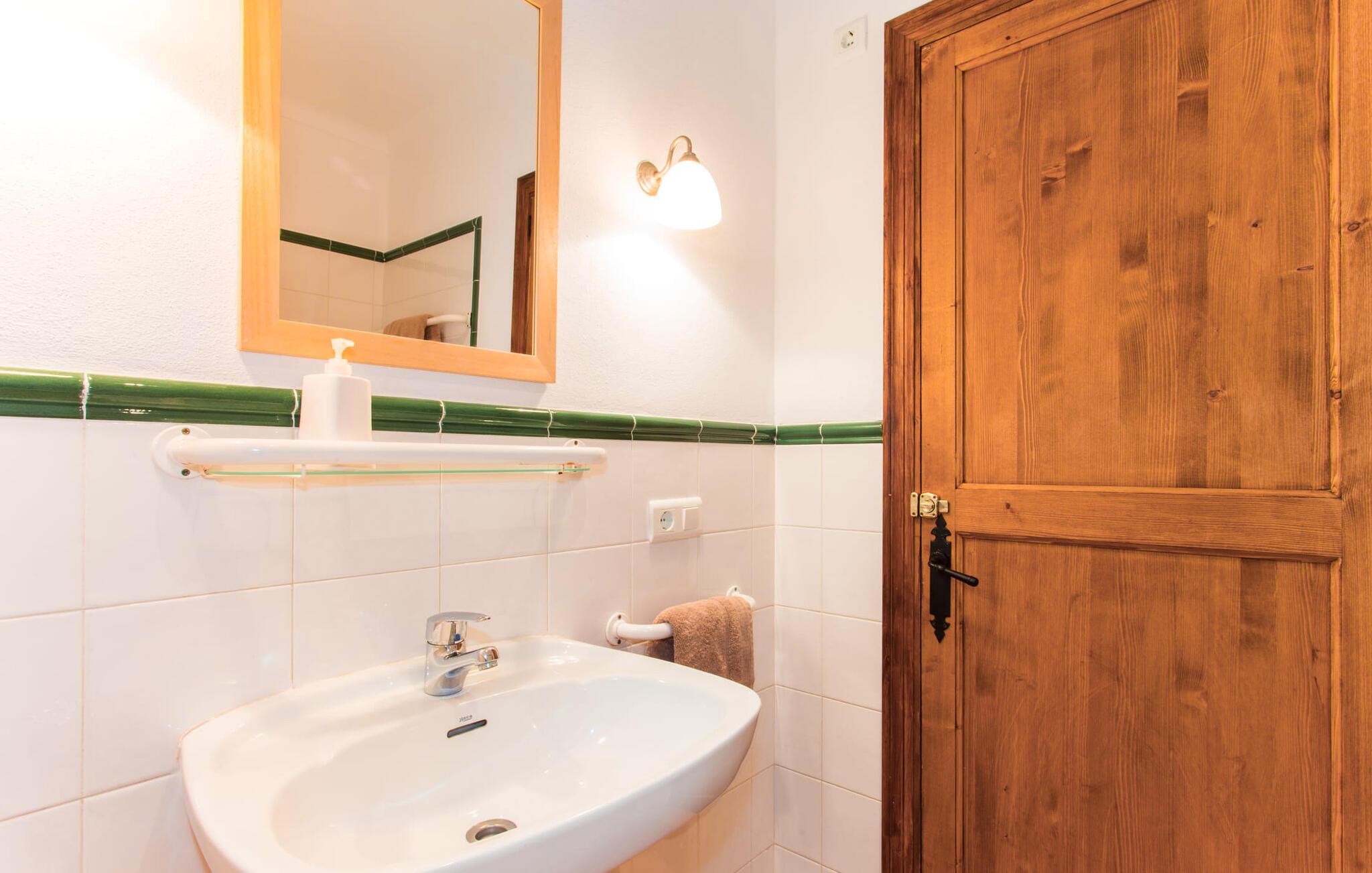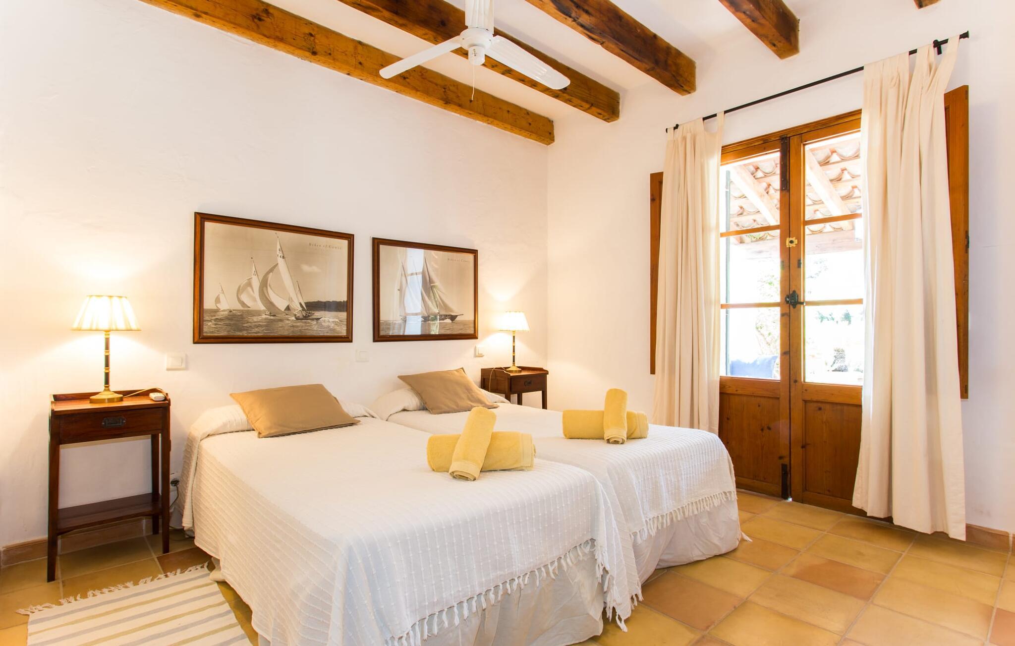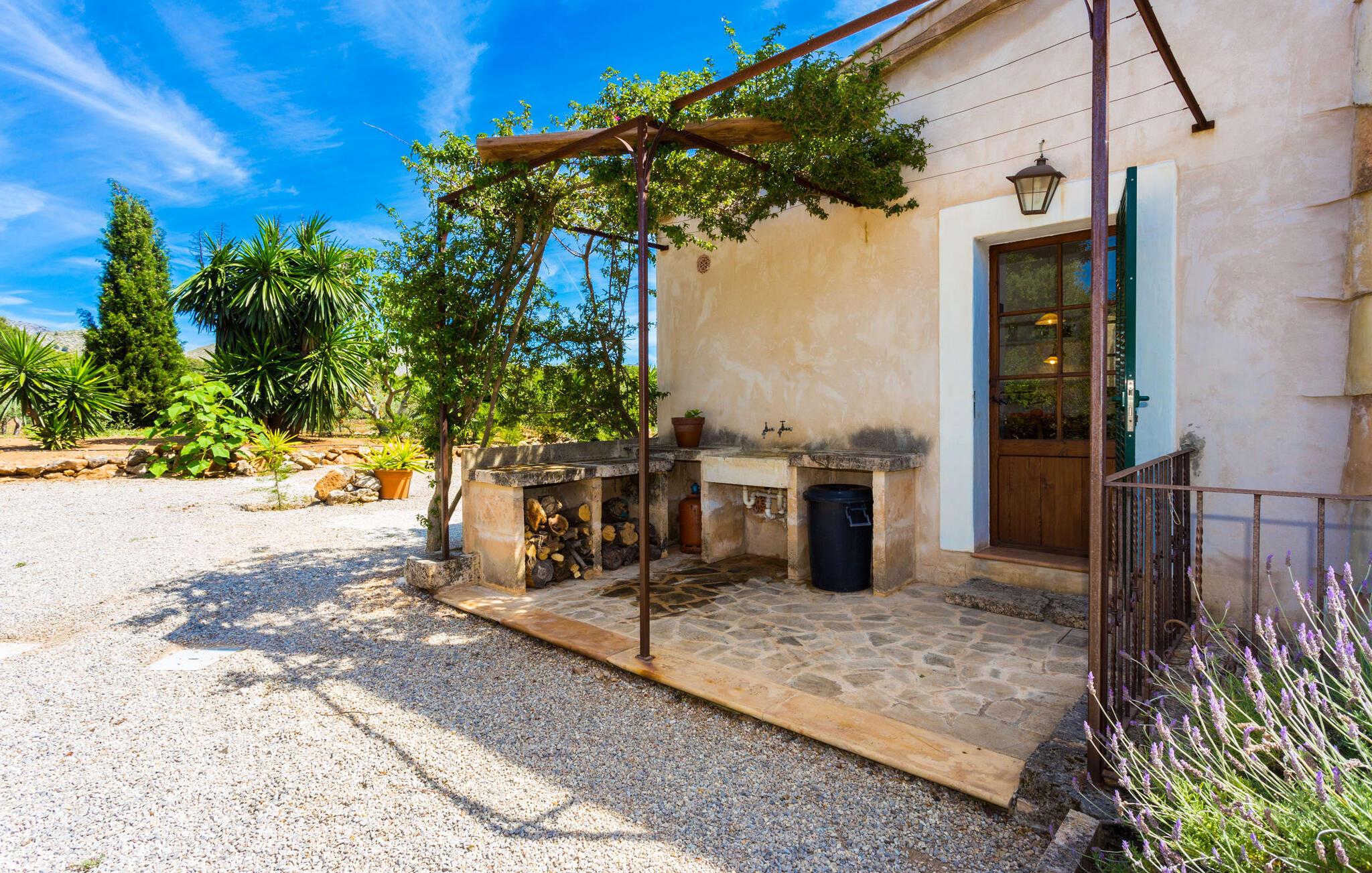 Efter at have kørt ad nogle små lokale veje, ankommer vi på en solskinsdag for at besøge villaen "Can Teulada". Vores første indtryk er: "Sikke et malerisk sted dette er!" Fra første øjeblik mærker vi den overordnede hyggelige atmosfære, der gennemsyrer alt her, og føler os spændte på at udforske ejendommen yderligere. Undervejs stopper vi for at beundre det frodige middelhavsgrønt i form af palmer, buske og blomster, der dekorerer grunden. Foran huset er der en veranda med et kæmpe spisebord i træ. Alle i jeres gruppe kan sidde og spise sammen i dette luftige, overdækkede område. Det bliver også dejligt at få en solid morgenmad herude og hilse på den nye dag med udsigt til haven. På den anden side af verandaen er der en rattan sofa og en anden lavet af mursten, hvilket gør det til et fantastisk sted at slappe af udendørs. Lav jer en god drink og nyd den bare herude på dette hyggelige sted. De grønne skodder på huset, de rustikke synlige loftsbjælker og naturstensgulvene bidrager til følelsen af ??komfort og komfort; Om aftenen fuldender romantiske pendellamper effekten. Blot få skridt væk ligger poolen, hvis afrundede form næsten får det til at ligne en stor dam. Dette indtryk forstærkes yderligere af de store sten, der er placeret rundt om kanterne. Dette fantasifulde design gør poolen til et enestående sted at køle af på en varm sommerdag. Trin, der fører ned i vandet, gør det lettere at komme ind og ud. Så læg jer ned på en af ??de otte komfortable liggestole og forkæl jer selv med den varme middelhavssol, så længe I har lyst. Og foretrækker I at ligge i skyggen, kan I gøre det hele dagen lang i træernes naturlige skygge eller herude under parasollen. Vil I hellere lave noget andet end bare at nyde lediggang ved poolen, så er bordtennisbordet perfekt til jer. Da vi træder ind i villaen, bliver vi straks overrasket over den fortryllende effekt af de forskellige stoffer, farver og møbler i rumsammensætningen. Lyse vægge, synlige loftsbjælker, afrundede buegange og terracotta gulvfliser giver rummet en hyggelig og varm atmosfære, mens unikke kunstværker forstærker den overordnede indbydende atmosfære på dette sted. I stueetagen er der en stor stue med komfortable sofaer og en pejs, der giver ekstra atmosfære på køligere aftener. Lige rundt om hjørnet ligger det traditionelle mallorcanske køkken med et smukt antikt træbord i midten af ??rummet, perfekt til en overdådig indendørs fest. Køkkenet er fuldt udstyret med alt hvad I behøver til hverdagsbrug, herunder ovn, komfur, køleskab med fryser, opvaskemaskine, brødrister, elkedel og filterkaffemaskine. Der er endnu et bord mellem stue og køkken, så der skal altid være plads nok til alle. Der er også et soveværelse og et badeværelse på denne etage; de andre tre soveværelser og to badeværelser er ovenpå. Alle værelser er varme og indbydende og har et højt niveau af æstetik. Intet må forstyrre jeres fred og ro her i dette miljø – også selvom I af og til hører naboernes hunde gø i det fjerne. De moderne badeværelser tilbyder plads og komfort nok til alle på turen; Der er også to hårtørrere til rådighed, så I ikke behøver at tage dem med hele vejen hjemmefra. Et særligt højdepunkt i dette hus er den ombyggede kælder med et stærkt oplyst hovedrum med et spisebord og to senge. Der er også tekøkken med køleskab og komfur. Dette originale opholdsrum er afrundet af yderligere to soveværelser og et badeværelse. Dette område er ideelt for alle teenagere, der tager på turen eller andre, der værdsætter deres privatliv. En anden fordel er, at det på grund af designet holder sig ret køligt her, også når det er rigtig varmt udenfor. Udover alle de ting, vi allerede har nævnt, er en af ??hovedtrækkene ved Villa "Teulada" naturligvis den fantastiske beliggenhed. På den ene side er I omgivet af grønt, men på den anden side er I kun få minutter væk fra havet i bil. Sandstrandene omkring Port de Pollença har en lavvandet indgang til vandet, hvilket gør dem særligt attraktive for familier. Og Pollença er en ideel destination, hvis I nogensinde ønsker at forlade den landlige komfort i jeres villa for et stykke tid. Byen Pollença ligger omkring 7 km fra kysten og har et par egne attraktioner, herunder en smuk kirke. Når I bestiger bakken til Golgata-kapellet, vil I blive belønnet med en storslået udsigt fra oven. Den utroligt charmerende villa "Can Teulada" ligger på en smukt anlagt ejendom kun 3 km fra Pollença. Og den smukke Port de Polleça ligger kun 7 km væk. Denne attraktive lille kystby har en indbydende havnefront med hyggelige caféer, butikker og restauranter. Der er også nogle sandstrande kun en kort køretur væk. For eksempel er der kun 5 km til Platja de Port de Pollença.