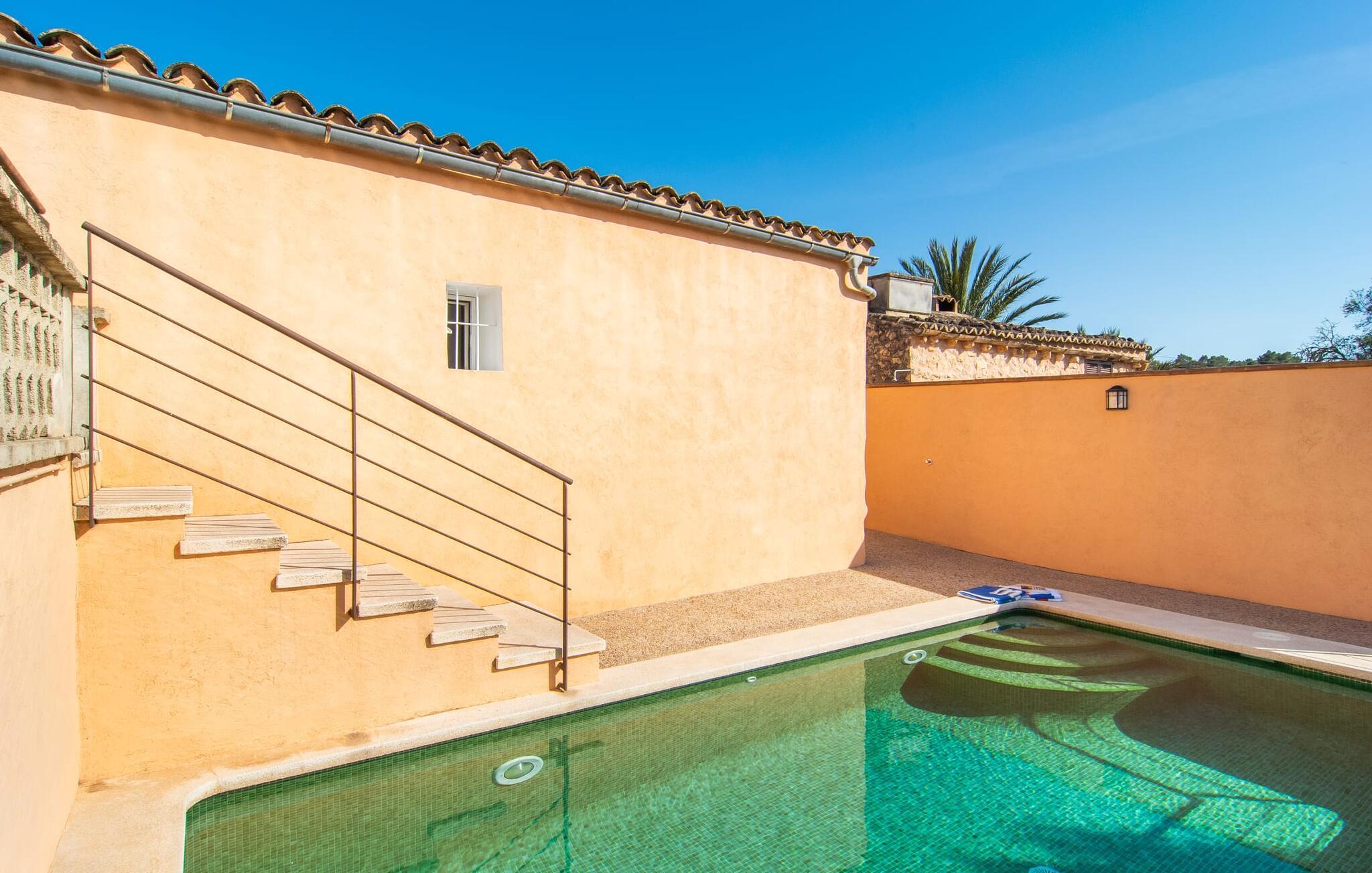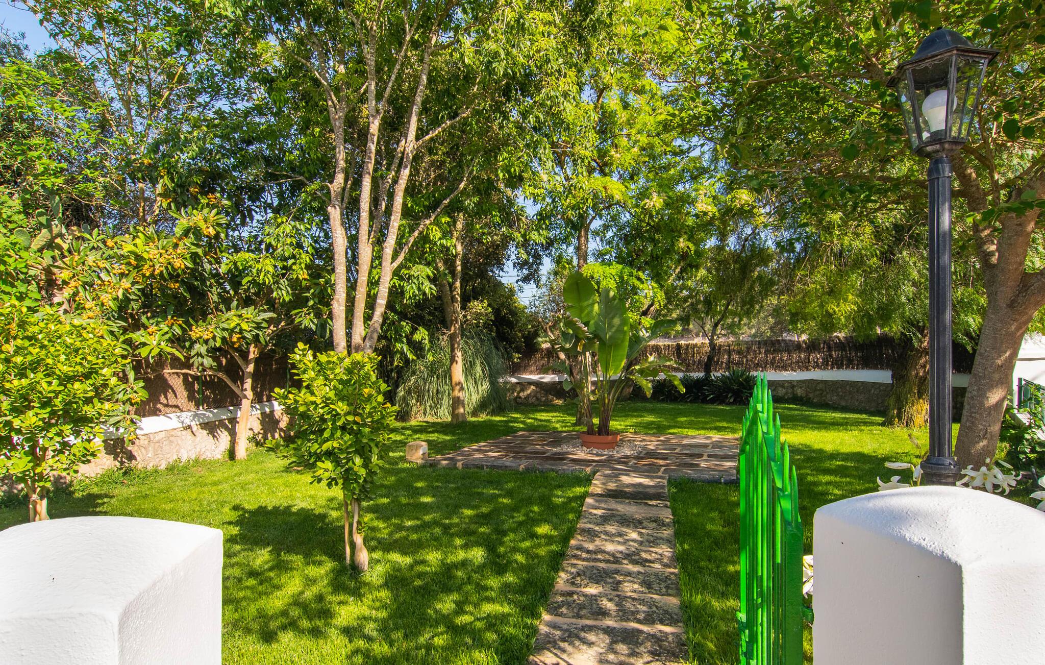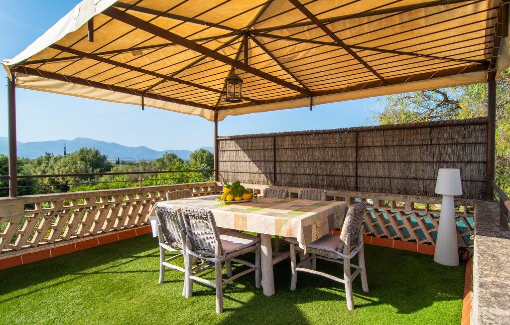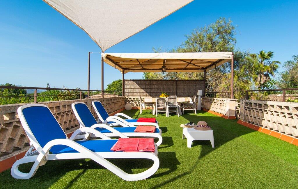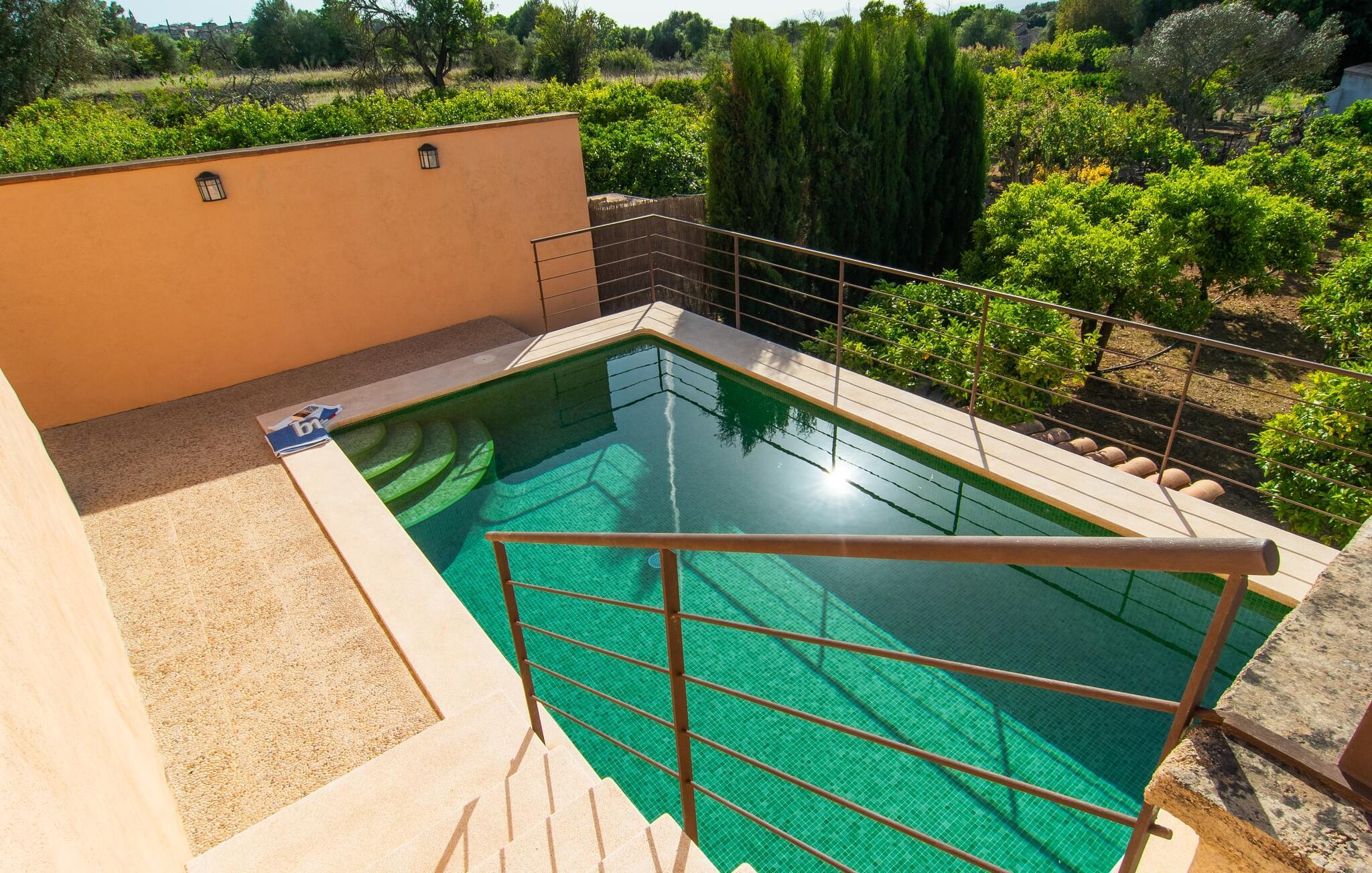 Den charmerende stenfinca "Can Tiró" ligger på en stor grund med frodige grønne områder og sin egen appelsinlund, hvor I kan høste friske, lækre tropiske frugter efter årstiden. Huset er omgivet af terrasser og en pool og tilbyder et afsondret, men ikke-isoleret tilflugtssted i hjertet af det mallorcanske landskab. Poolen, som ligger på et af terrasseniveauerne, er forsvarligt lukket med en låge, hvilket gør den ideel til familier med små børn. Fra poolen kan I nyde en betagende udsigt over den omkringliggende natur og de fjerne bjerge. Med liggestole og forskellige siddepladser er der altid et perfekt sted at slappe af i solen eller skyggen. I kan parkere jeres lejebil direkte ved indgangen. Indenfor er "Can Tiró" lige så indbydende med en nøje sammensat blanding af traditionelle og moderne elementer. Mørkt træ komplementerer lyse hvide vægge, og klinkegulve er kombineret med charmerende boligtilbehør. Alle værelser er på ét plan. Den åbne planløsning og spiseplads giver jer mulighed for at slappe af på den komfortable sofa, mens I nyder fjernsynet, med en smukt udskåret træbue, der fører til spisepladsen. Det lille, men fuldt udstyrede køkken byder på ekstra siddepladser ved den smarte disk, perfekt til en hurtig morgenmad eller et glas vin, mens I laver mad. To soveværelser og et badeværelse en suite fuldender boligarealet. Denne ejendom ligger i en smuk landlig beliggenhed i centrum af Mallorca. Byen Costitx ligger kun omkring 1,4 km væk via den akustisk mærkbare vej, og Alcúdia-bugten med dens forskellige strande er godt 26 km væk.