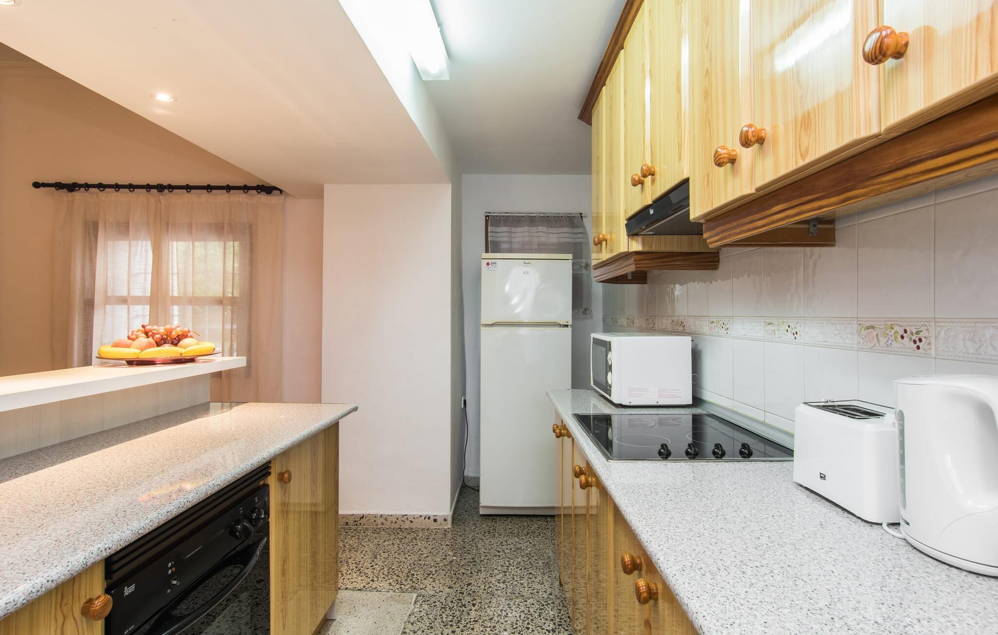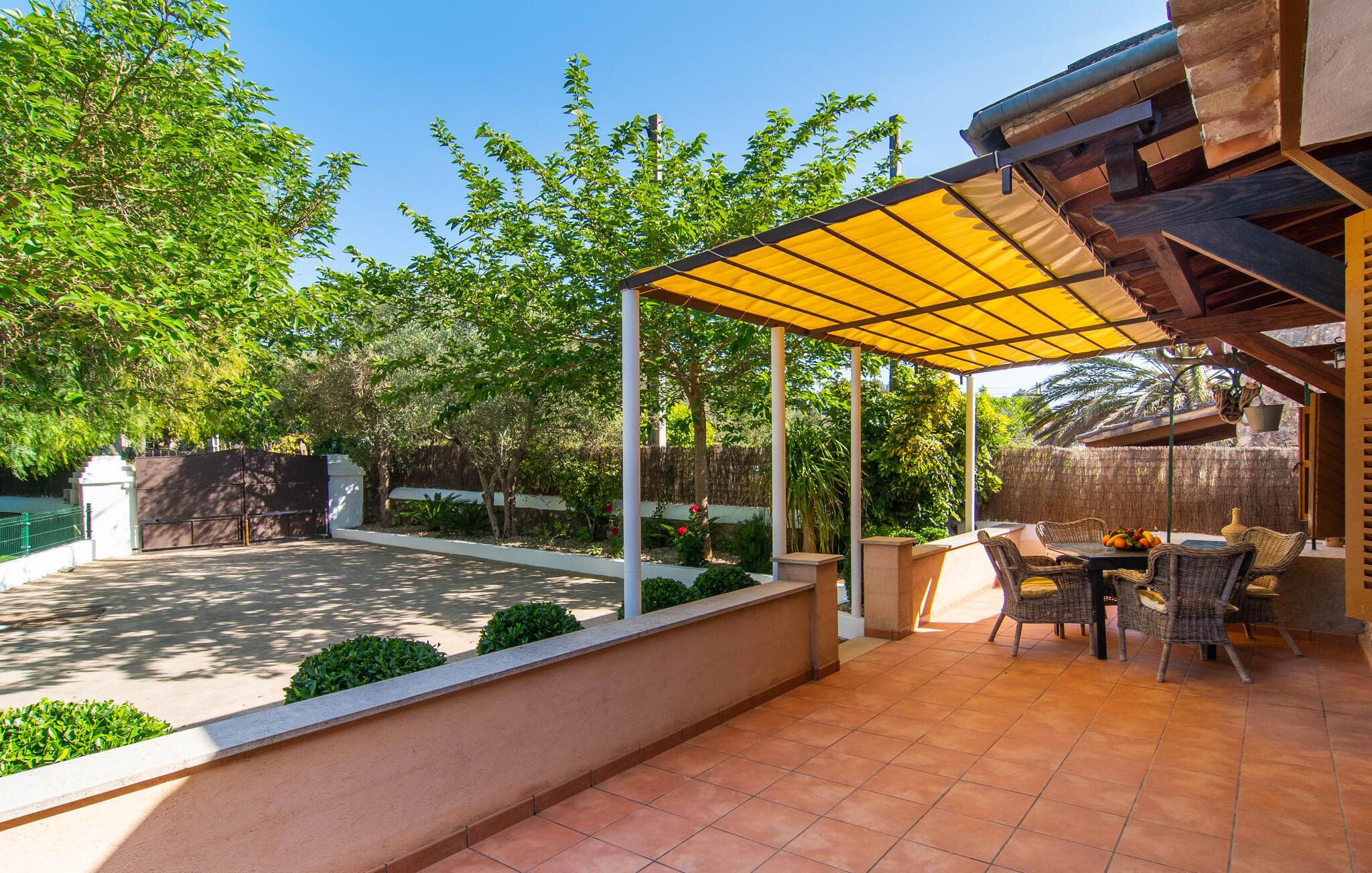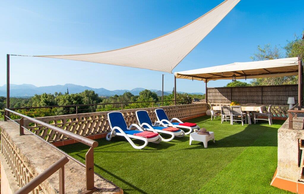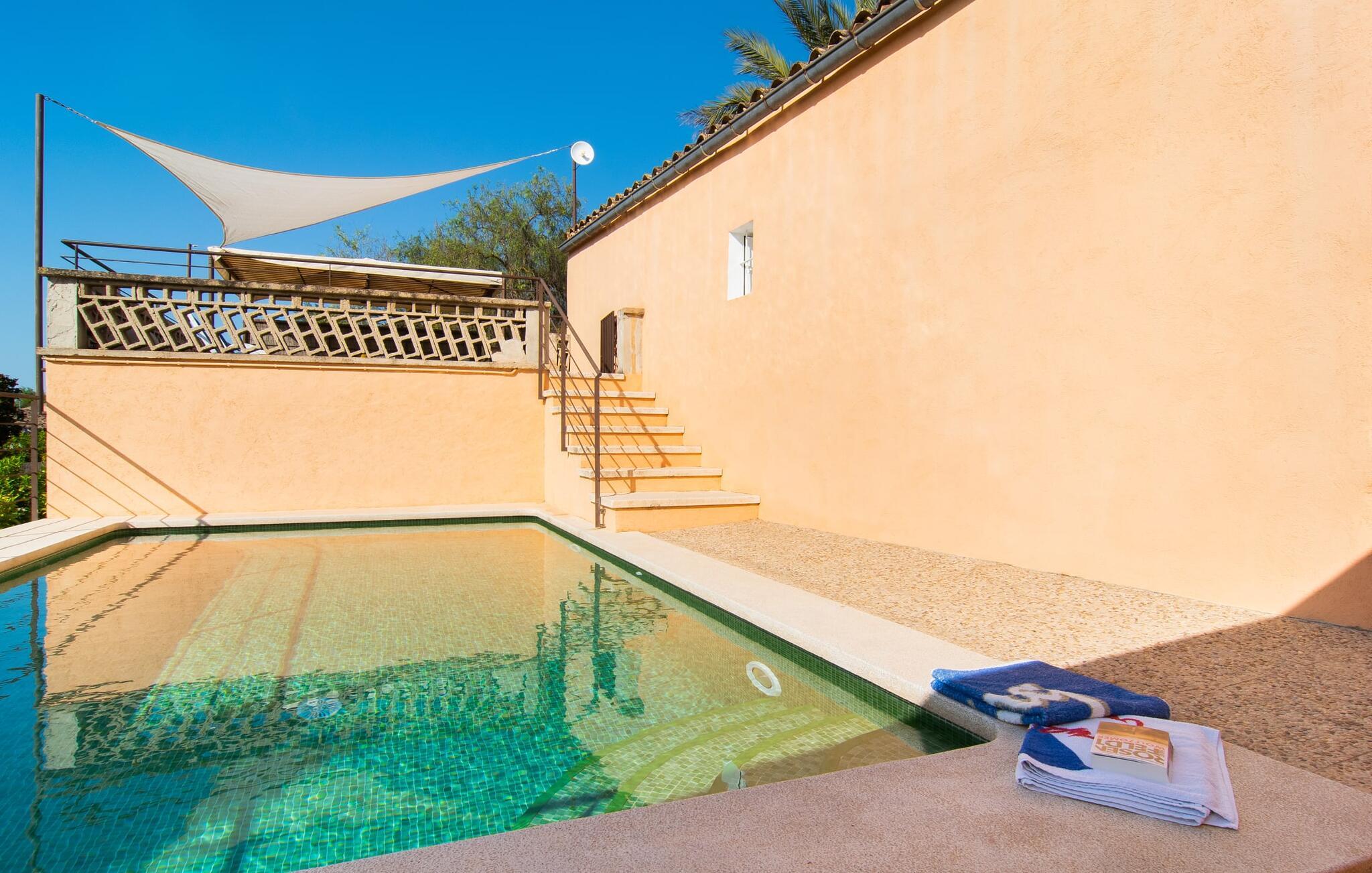 Den charmerende stenfinca "Can Tiró" ligger på en stor grund med frodige grønne områder og sin egen appelsinlund, hvor I kan høste friske, lækre tropiske frugter efter årstiden. Huset er omgivet af terrasser og en pool og tilbyder et afsondret, men ikke-isoleret tilflugtssted i hjertet af det mallorcanske landskab. Poolen, som ligger på et af terrasseniveauerne, er forsvarligt lukket med en låge, hvilket gør den ideel til familier med små børn. Fra poolen kan I nyde en betagende udsigt over den omkringliggende natur og de fjerne bjerge. Med liggestole og forskellige siddepladser er der altid et perfekt sted at slappe af i solen eller skyggen. I kan parkere jeres lejebil direkte ved indgangen. Indenfor er "Can Tiró" lige så indbydende med en nøje sammensat blanding af traditionelle og moderne elementer. Mørkt træ komplementerer lyse hvide vægge, og klinkegulve er kombineret med charmerende boligtilbehør. Alle værelser er på ét plan. Den åbne planløsning og spiseplads giver jer mulighed for at slappe af på den komfortable sofa, mens I nyder fjernsynet, med en smukt udskåret træbue, der fører til spisepladsen. Det lille, men fuldt udstyrede køkken byder på ekstra siddepladser ved den smarte disk, perfekt til en hurtig morgenmad eller et glas vin, mens I laver mad. To soveværelser og et badeværelse en suite fuldender boligarealet. Denne ejendom ligger i en smuk landlig beliggenhed i centrum af Mallorca. Byen Costitx ligger kun omkring 1,4 km væk via den akustisk mærkbare vej, og Alcúdia-bugten med dens forskellige strande er godt 26 km væk.