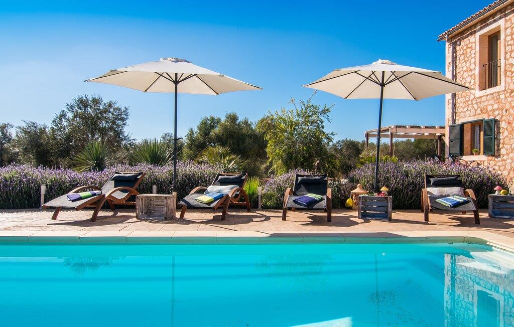 Enhver, der ønsker at opleve den flair, der opstår fra den perfekte blanding af tradition og modernitet, vil have et sandt held med villaen "Can Xesquet". For her er der opnået noget helt særligt, nemlig den meget smarte kombination af traditionel mallorcansk stemning med fordelene ved en moderne nybygning. Denne symbiose er genkendelig ved første øjekast: Natursten møder store, smarte terrasseplader, klassisk arkitektur møder moderne tagkonstruktioner over udendørsserveringen. Sidstnævnte er til gengæld udstyret med dekorative og komfortable siddepladser. Originalt tilbehør som malede vinkasser tilføjer stilfulde accenter og er også praktiske. Det stilfulde pallebord ved siden af ??poolen inviterer jer til at sidde og se ud over infinity-poolen og de omkringliggende oliventræer. Disse hyggelige timer udendørs er ledsaget af vidunderlig fred og ro. Når I vil, kan I nemt glide de få trin ned i det kølige vand og nyde det klare, forfriskende vand på jeres hud. Forhåbentlig venter der allerede en god bog på en af ??de komfortable liggestole, for det er et godt sted at fordybe sig i en spændende læsning og glemme alt omkring sig. Måske kommer en appetitlig lugt fra grillen mod jer og indvarsler den varme aften: en solid grillmad med delikatesser fra Middelhavet overflod af friske, regionale råvarer.