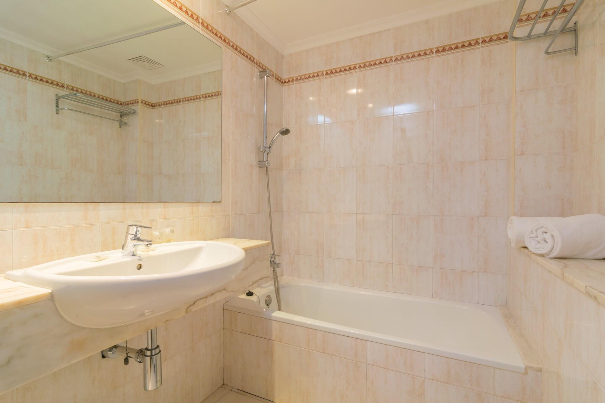 Køkken(komfur, mikrobølgeovn, køle-fryseskab), soveværelse(2x enkeltseng), soveværelse(enkeltseng, enkeltseng), badeværelse, enkeltsovesofa, badekar, håndvask, toilet, klimaanlæg, klimaanlæg, barneseng, barnestol