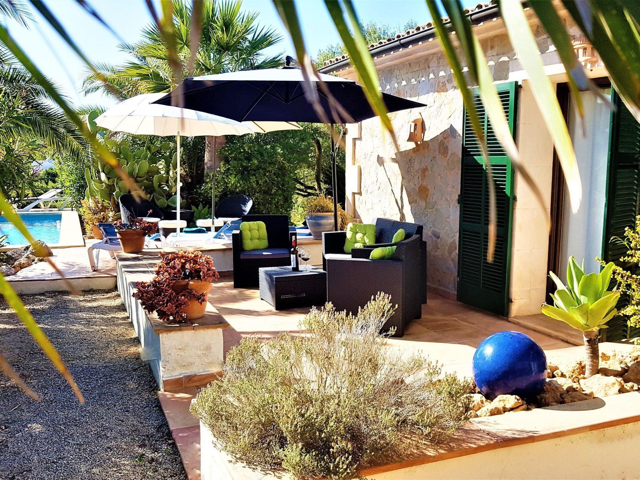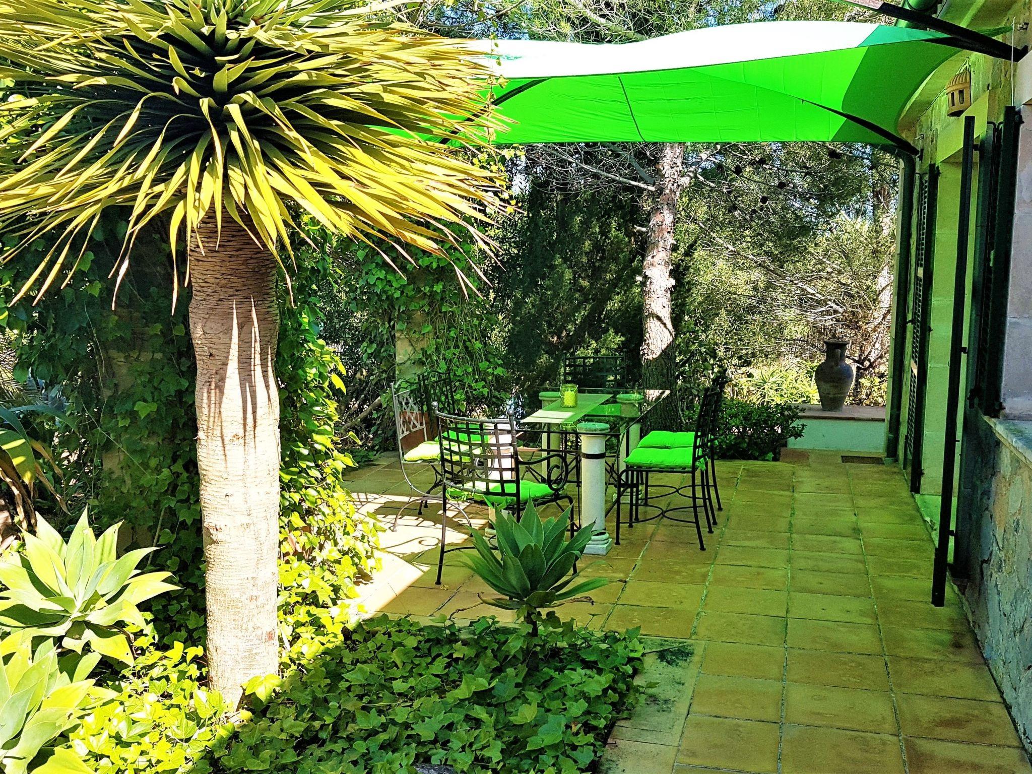 Your holiday begins when the automatic gate of the 7,100 m² plot opens and you drive along the small gravel path to the finca. The entire property is characterised by typical Mediterranean plants. You can explore and enjoy the Mallorcan countryside throughout the property, surrounded by numerous different palm trees, fig trees, almond trees, oleander bushes and much more. There are a total of 7 terrace areas around the entire house.
