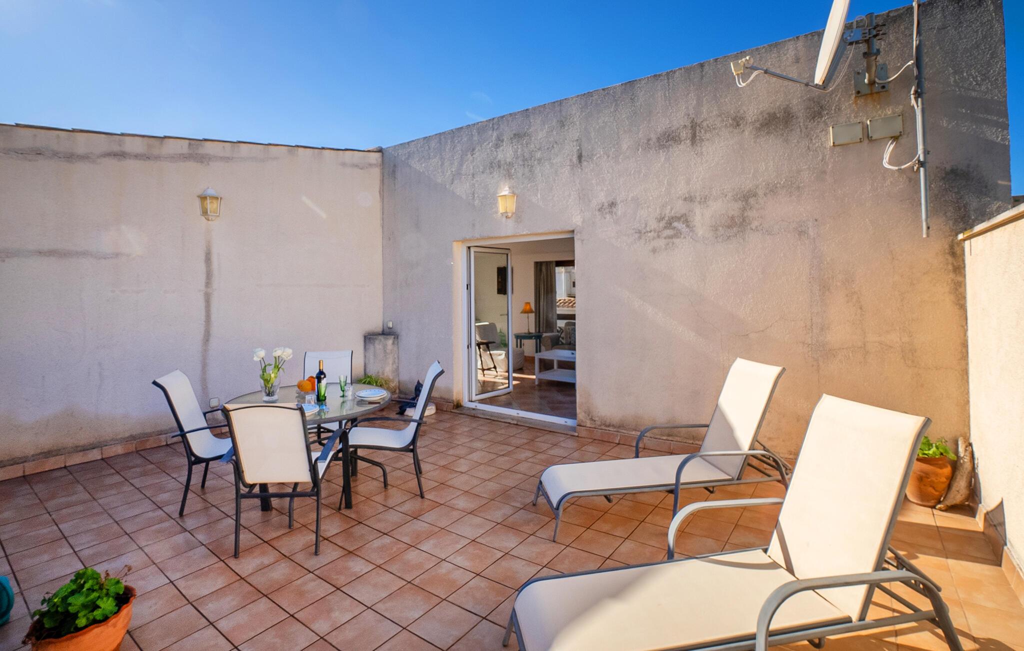 Træd ud på jeres solbeskinnede terrasse og nyd jeres morgenmad med udsigt over tagene til havet. Slap af på en behagelig liggestol og tænd grillen til en stemningsfuld grill i den varme aftenluft.