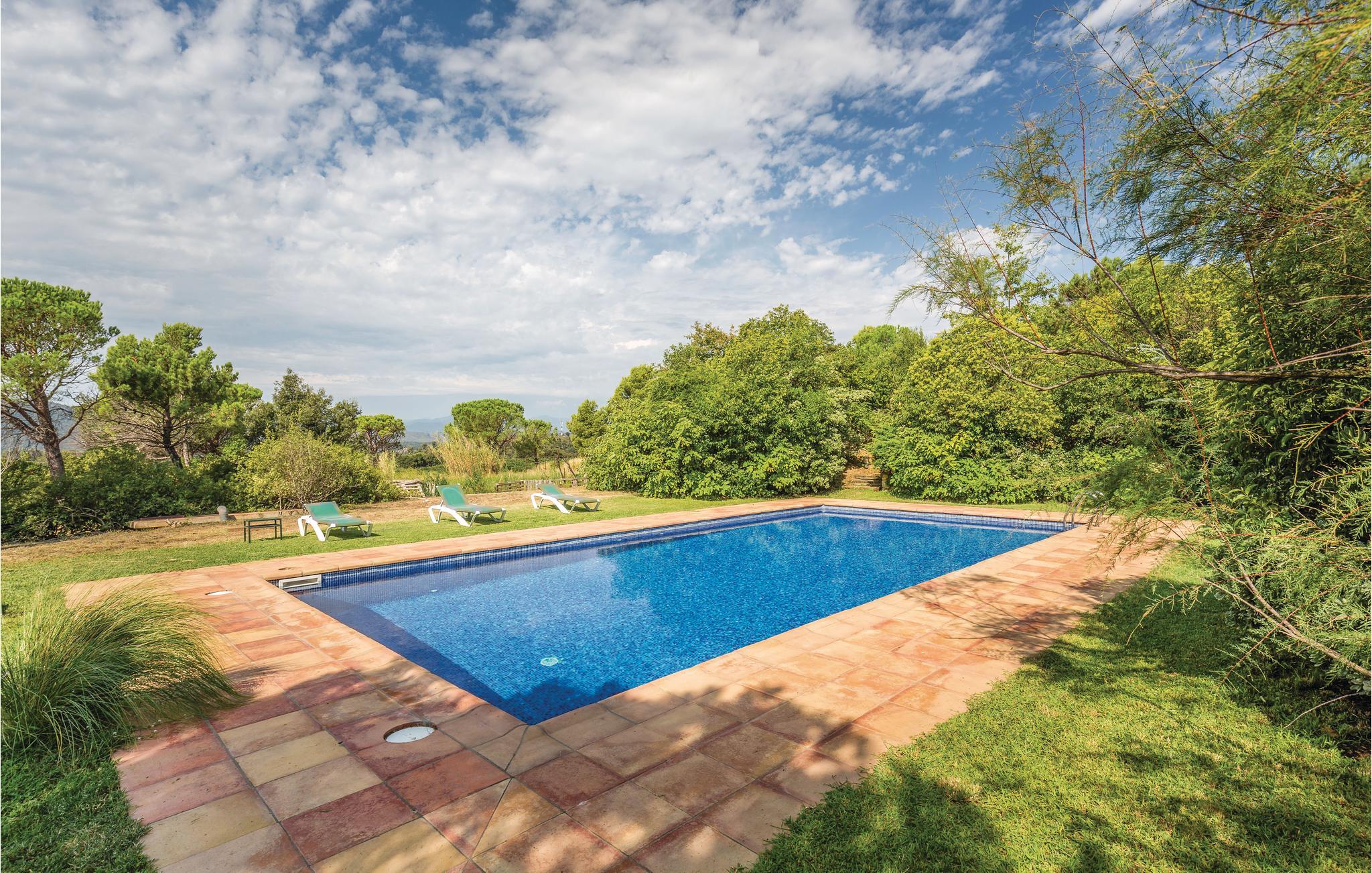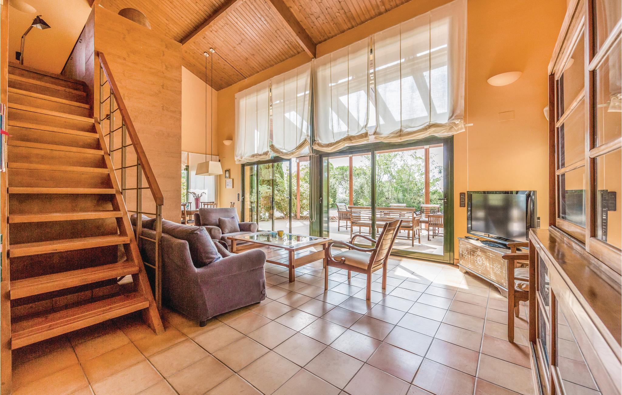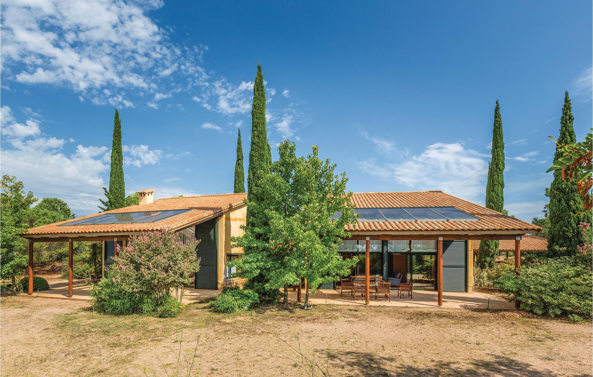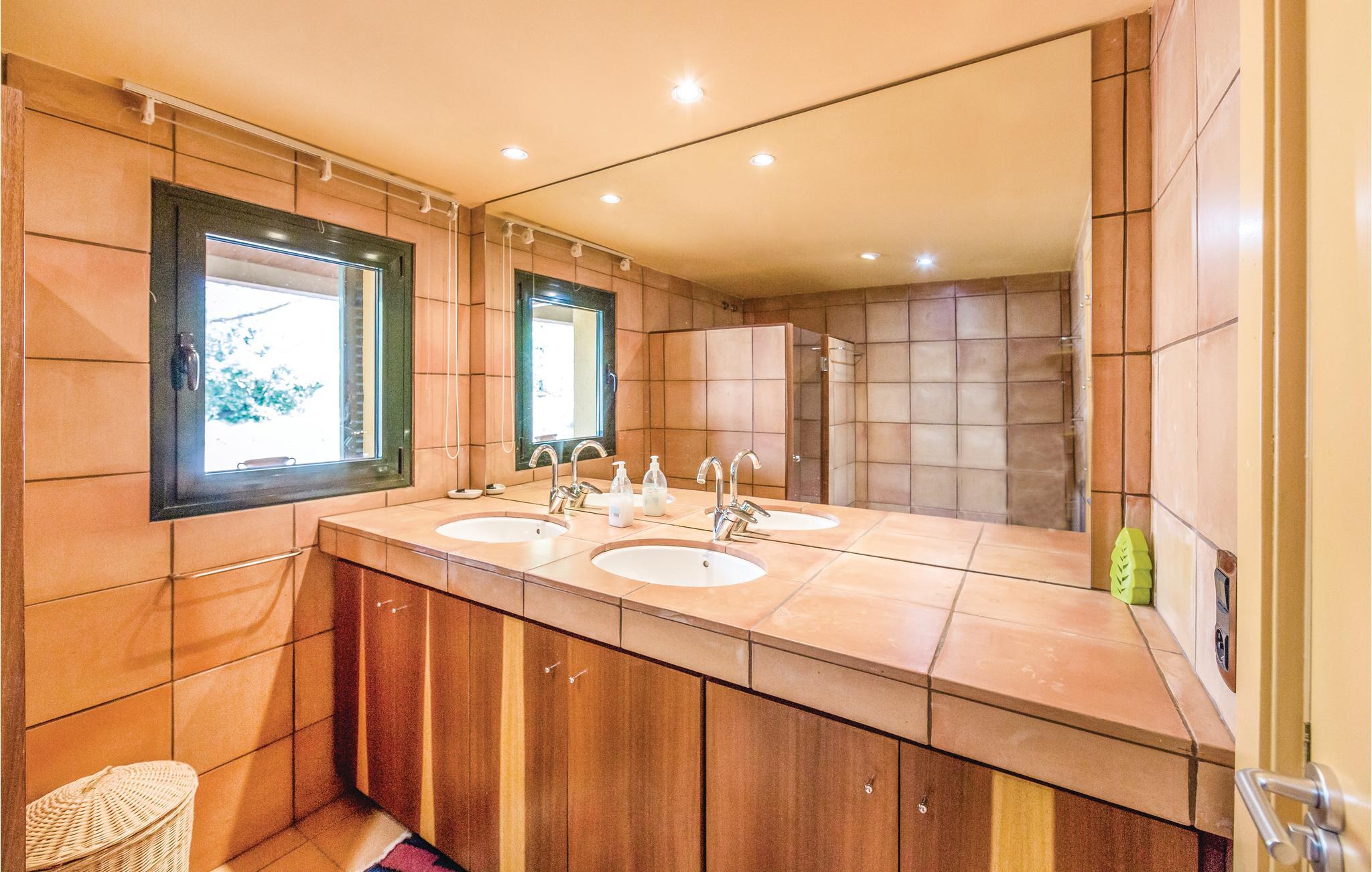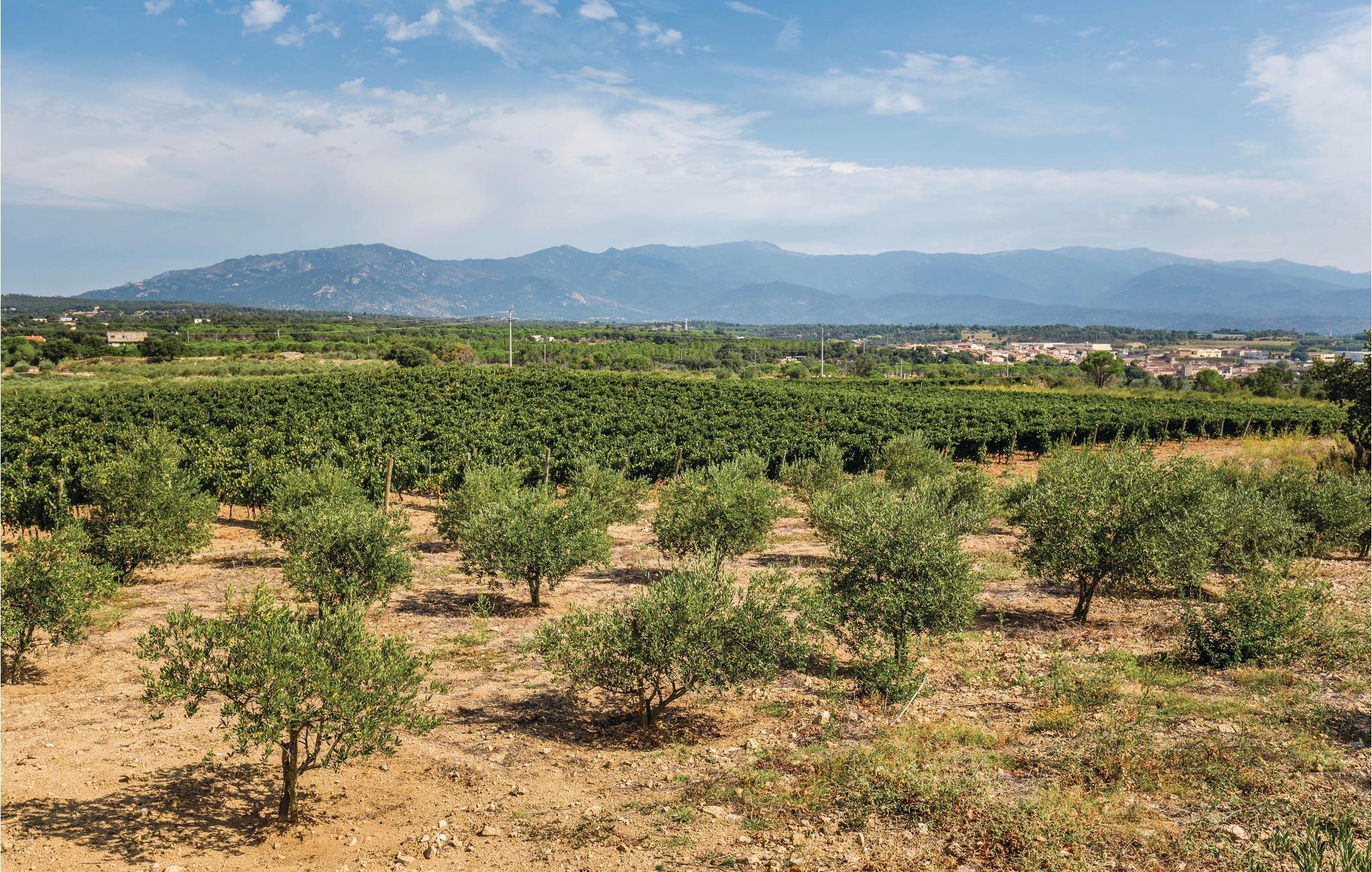 Dette skønne feriedomicil her helt ideelt, når I rejser sammen med alle vennerne eller den store familie og vil bo komfortabelt og med privatsfære. Her er 7 soveværelser, 5 badeværelser, 2 stuer og to fuldt udstyrede køkkener som giver rigeligt plads til op til 14 personer. Den ganske særlige arkitektur er en perfekt blanding af naturmaterialer som glas og træ. Indretningen og udsmykningen får jer til at føle jer godt tilpas og slappe af og gør ferien til en særlig oplevelse. I boligen er der v/k klimaanlæg og en kamin ved sofahjørnet, som gør boligen velegnet til ferie året rundt. På den overdækkede terrasse er der bekvemme møbler, en grillplads og et åbent område ved indgangen til børnenes leg. Fra grunden kan I nyde en betagende udsigt over bjergene. I bor midt på et landsted, omgivet af natur og vinbjerge. Den 72 m² store private pool er omgivet af græs og indbyder til afslapning under åben himmel. Her er der 7 behagelige solstole hvor I gøre jer det behageligt og få en flot sommerkulør. På grunden er der seks overdækkede parkeringspladser. Køb ind i butikker kun 1,5 km væk. Den gode beliggenhed gør det muligt både at udforske Spanien, men også både det sydøstlige Frankrig og Andorra. Kan ikke lejes af ungdomsgrupper.