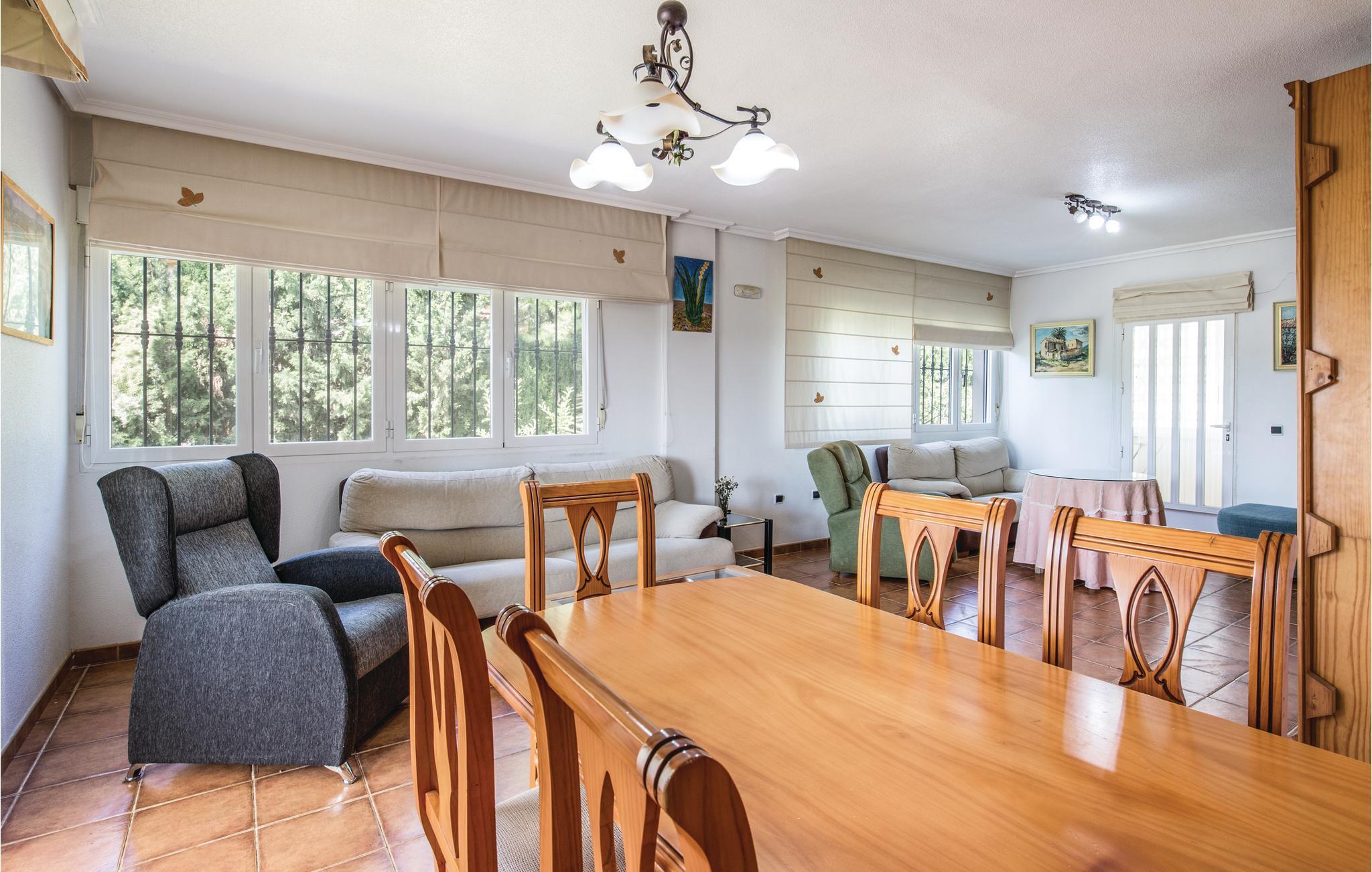 Pragtfuldt feriehus til 12 personer i Caravaca de la Cruz – der sammen med Rom, Jerusalem, Santiago de Compostela og Santo Toribio de Liébana er en af verdens fem hellige byer. Boligen ligger på en stor grund med pool, grill og havemøbler ideel til en afslappet ferie med familie og venner. Jeres private pool er dejligt ugenert til svømmeture lige når I har lyst - fx når månen og stjernerne står højt på himlen. Om vinteren er det dejligt at sidde i havestuen og nyde udsigten Den omliggende natur indbyder til vandreture, hvor I kan se dette områdes specielle flora og fauna, husk også at kigge mod himlen, hvor de store fugle sejler på vinden.