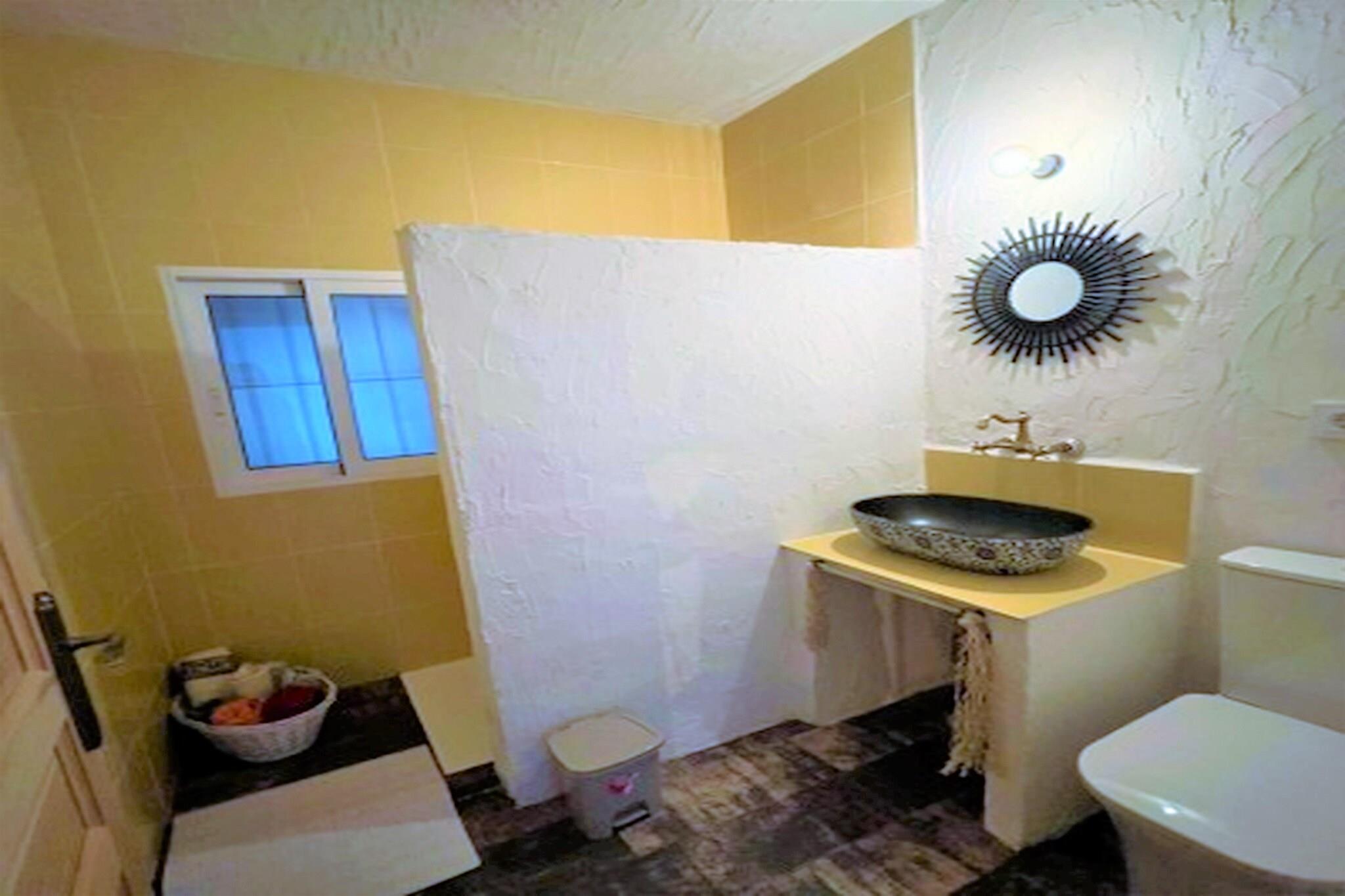 On the 1st floor: (Living room(double sofa bed, double sofa bed, TV, dining table, fireplace, seating area, air conditioning), Kitchen(cooker, coffee machine, oven, fridge-freezer, washbasin, Juicer), bedroom(double bed), bedroom(double bed), bedroom(single bed, single bed, bunk bed or 2 single beds), bathroom(shower, toilet, bidet, washing machine), bathroom(shower, washbasin, toilet, bidet)) bathroom(washbasin, toilet), washing room, garden(shared with other guests), garden furniture, BBQ, parking, swimming pool(shared with other guests), padel court, hammock