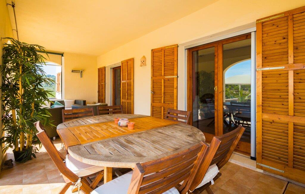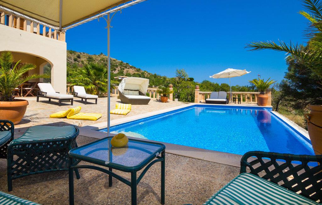 Leder I efter absolut fred og ro? Elsker I naturen og værdsætter orden og elegance? Så led ikke længere, den smukke villa "Cas Cans" på den østlige del af øen er jeres perfekte feriedestination. Det imponerende stenhus ligger på en kæmpe, dejlig rolig ejendom for enden af en blind vej, som er omkranset af en typisk mallorcansk naturstensmur. Den kærligt designede have byder på velholdte græsplæner, som børnene kan lege i, samt en magisk kombination af rustikke gamle træer, vidunderligt duftende rosmarin- og lavendelbuske og høje palmer. Lige ved siden af villaen finder I en utrolig stor infinity-pool, hvor I kan køle af på varme dage – mens I nyder den fantastiske udsigt over naturen. Efter svømning er der ikke noget bedre end at gøre sig godt tilpas på den rummelige terrasse med naturstensfliser og fordybe sig i en god bog. I er forkælet med valg mellem de mange steder at sidde og solbade. Disse omfatter en overdækket daybed, forskellige liggestole og solmåtter, et chill-out område under en pavillon og en overdækket terrasse lige ved siden af huset. Der kan I læne jer tilbage på de komfortable, udsmykkede rattanmøbler og nyde en forfriskende drink eller en lille snack. Det indre af villaen er også ideel til at afholde uforglemmelige ferietimer. Hjertet i "Can Cans" er et stort opholdsområde med integreret spisestue og det tilstødende, moderne køkken. Disse værelser med moderne møbler og en typisk mallorcansk stemning, domineret af lyse sand- og jordfarver samt tagbjælker af træ, er det perfekte sted at lave mad, spise og snakke sammen - måske ledsaget af knitren fra pejsen, mens alle føler madlavning på de komfortable sofaer som derhjemme. Så snart I mærker en behagelig følelse af træthed, kan I blot trække jer tilbage til et af de fem soveværelser, som alle er lyse og er kærligt designet ned til mindste detalje. De har enten enkelt- eller dobbeltsenge og direkte adgang til terrasseområderne eller balkonen ovenover. Dette inkluderer endnu et komfortabelt sofasæt og et vidunderligt udsigtspunkt, hvorfra man kan nyde udsigten. Det fornemme design på de fire badeværelser tog naturligvis også højde for stilen - de smukke fliser i hvert badeværelse er et særligt blikfang. jeres villa ligger i bakkerne nord for kunstnerbyen Artà og byder på en vidunderlig udsigt over bjergkæden i denne kystregion. Selve Artà ligger kun 2,3 km væk og kan derfor hurtigt nås. De virkelig magiske gamle gader og talrige gallerier er perfekte til at slentre. Med jeres lejebil kan I også hurtigt nå de nærliggende strande; Cala Torta, for eksempel, ligger bag et par bakker, som I kan se fra "Cas Cans", og er kun 13,5 km væk. Derudover er der fire golfbaner i umiddelbar nærhed af villaen, mindre end 10 minutter i bil, herunder Capdepera Golf og Pula Golf. Som gæst i den eksklusive villa "Cas Cans" kan I nyde det gode liv i det mallorcanske landskab. Den imponerende ejendom med en fantastisk infinity-pool er beliggende i naturbeskyttede grønne bakker og byder på en utrolig udsigt over de omkringliggende bjerge og Middelhavet udenfor. På få minutter kan I nå den populære kunstnerby Artà og dens smukke gågade med barer, kvalitetsrestauranter og supermarkeder til daglige indkøb.
