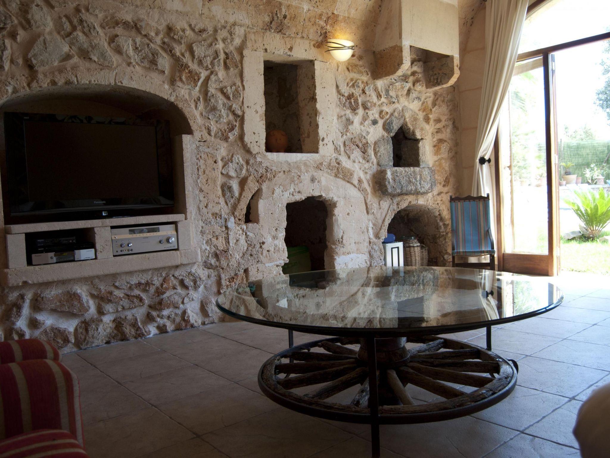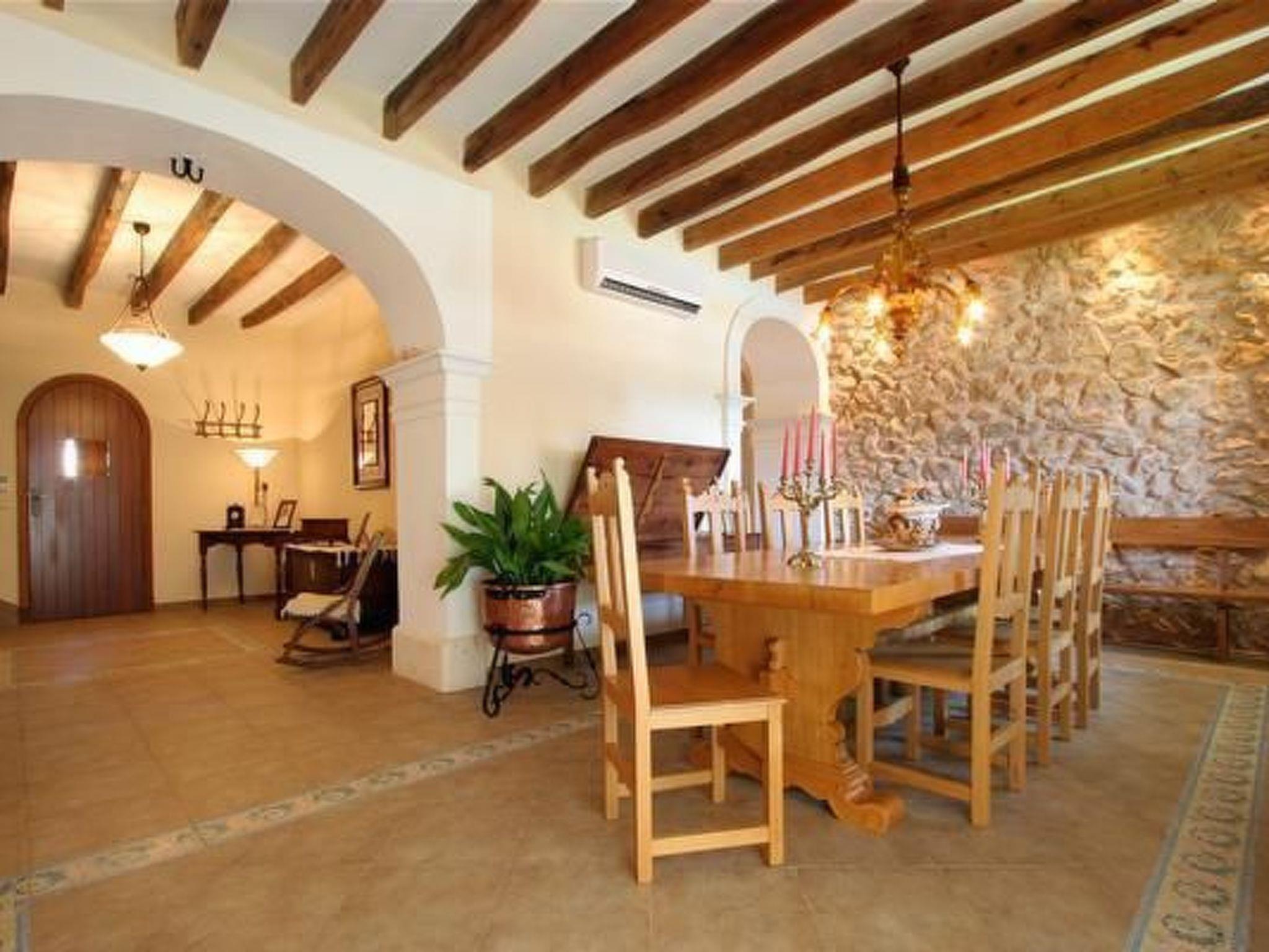 The exterior of the finca Porrassar has a large garden with lawn, private swimming pool with a size of 5,50 mx 11 m, terraces, sun loungers and parasols. Next to the pool is combined with a spacious covered terrace with an outdoor kitchen with barbecue and all other amenities such as fridge / freezer, dishwasher, electric oven, with a work area, satellite TV, DVD and stereo. Finca Es Porrassar is located near Cas Concos, a quiet village in the southwest of Mallorca, with 450 inhabitants, where it managed to keep its typical Majorcan atmosphere, but at the same time, offer a modern service, with its famous restaurants and shops. The most beautiful beaches of the south of the island such as Si Trenc, Ses Covetes or S'Amarador Mondragó are only 7 km away. For golf lovers there are golf clubs such as Vall d'Or or Son Antem only 15 minutes away by car. The capital Palma de Mallorca and the airport are situated at a distance of about 50 km.